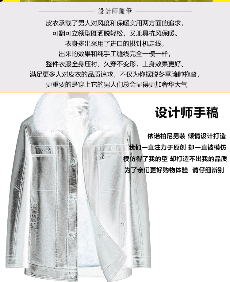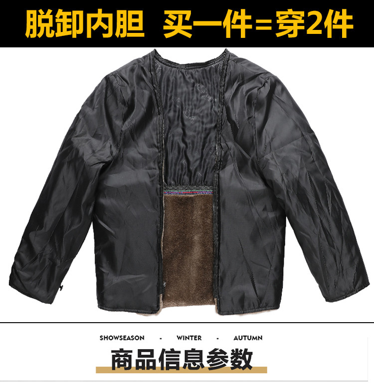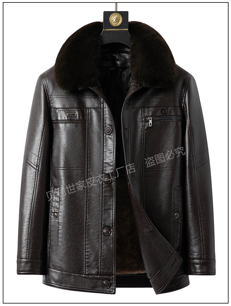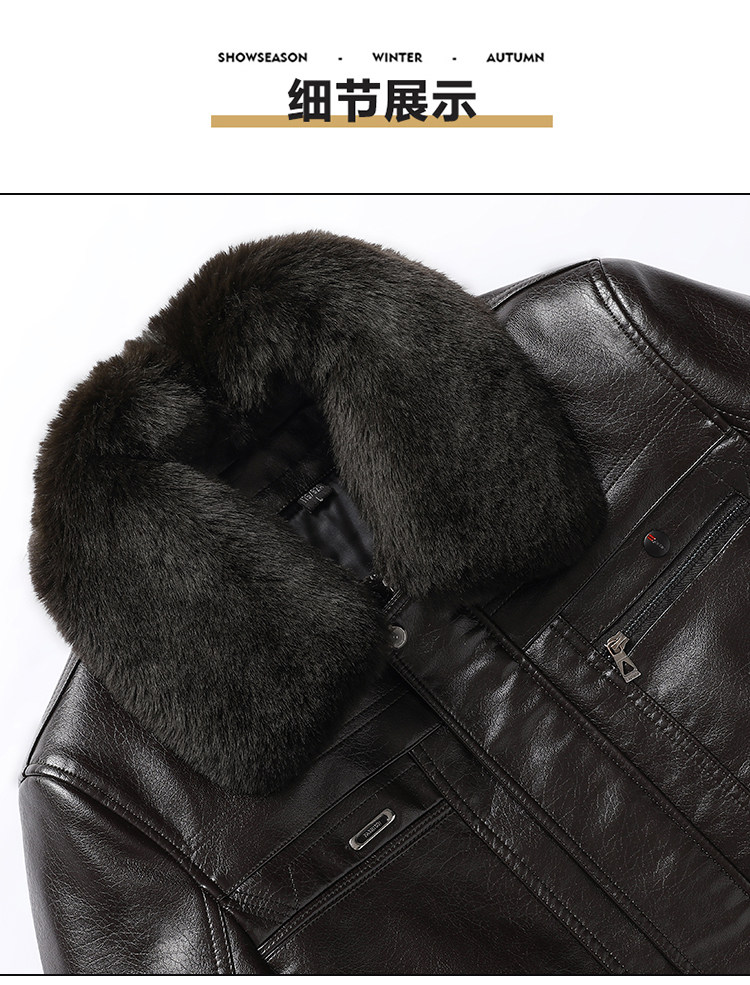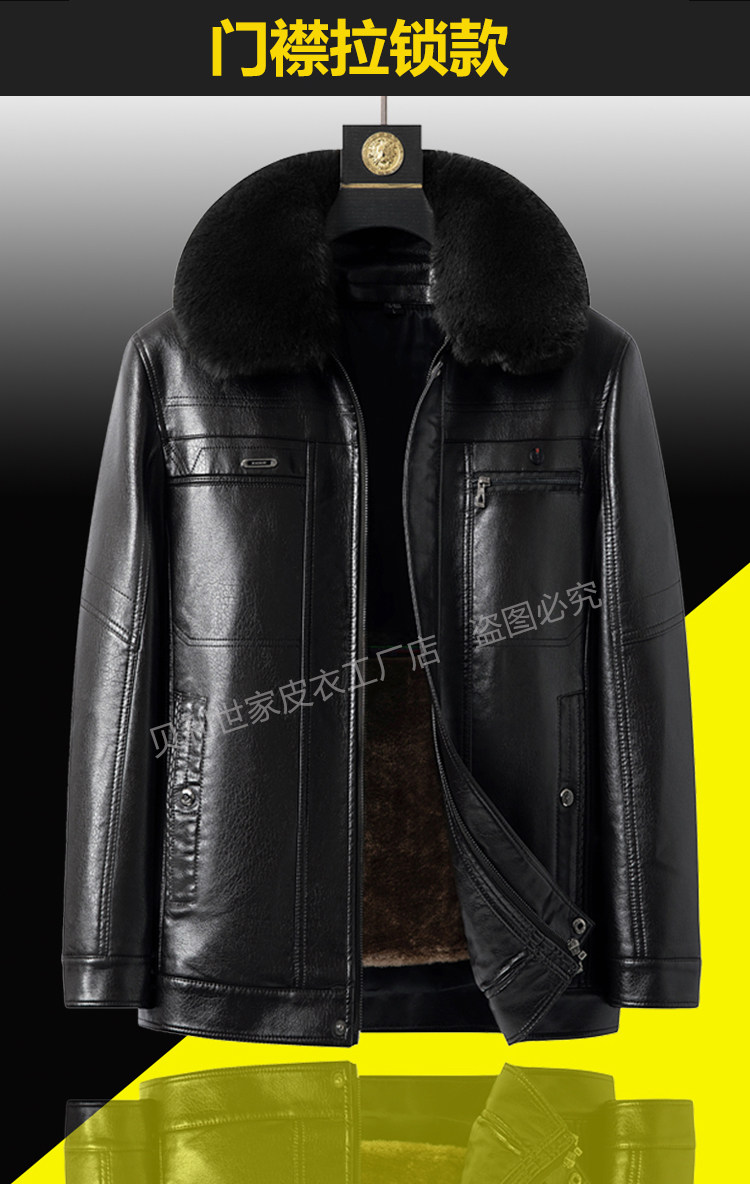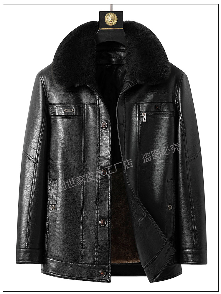 Woodpecker Leather Jacket for Men, Middle-Aged and Elderly, Genuine Sheep Leather Jacket, Autumn and Winter Fleece-Lined and Thickened, Fur Integrated Leather Jacket