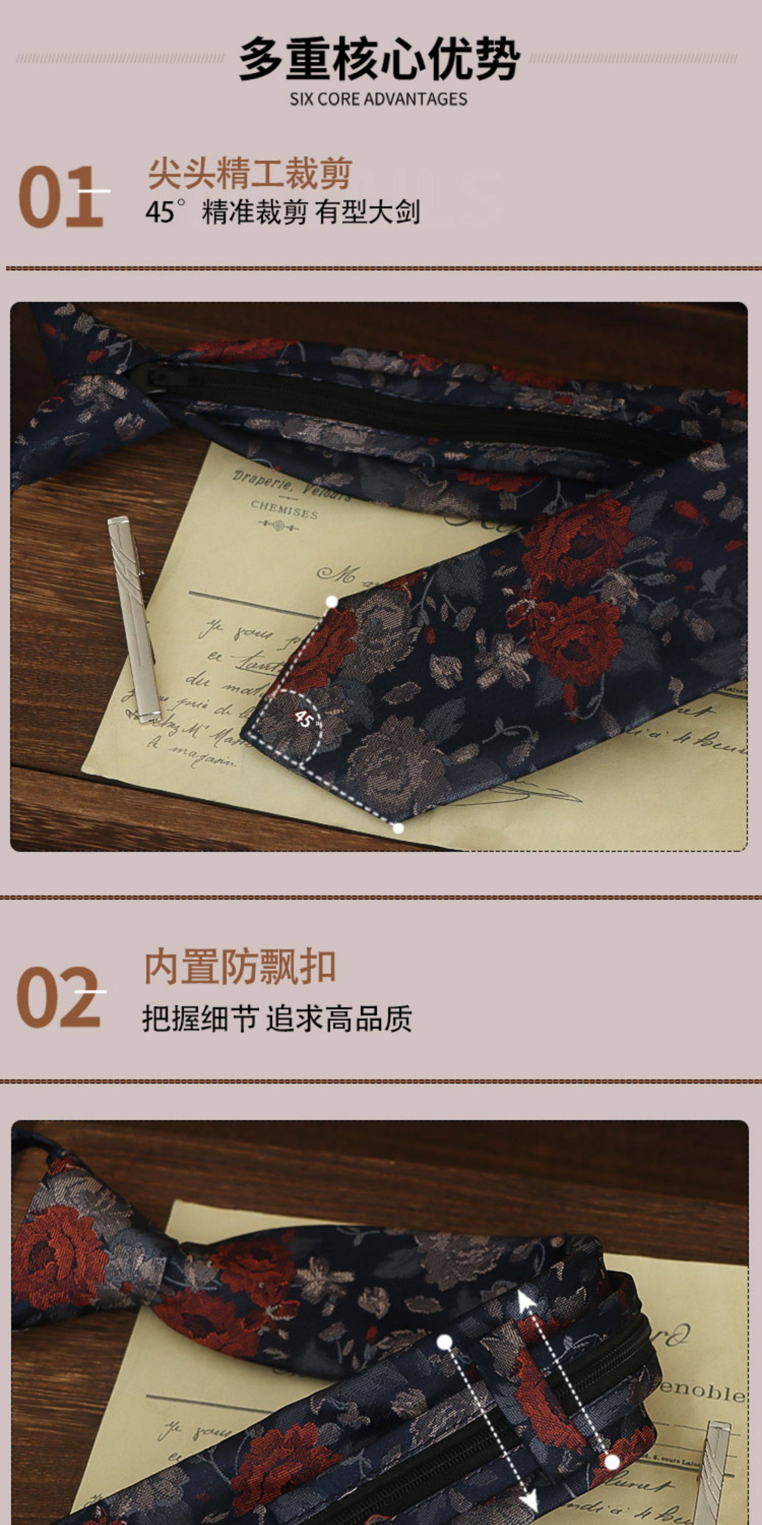Light Luxury High-End Zipper Tie for Men, Knot-Free Business 8cm Retro Ink Painting Groom Wedding Gift Box