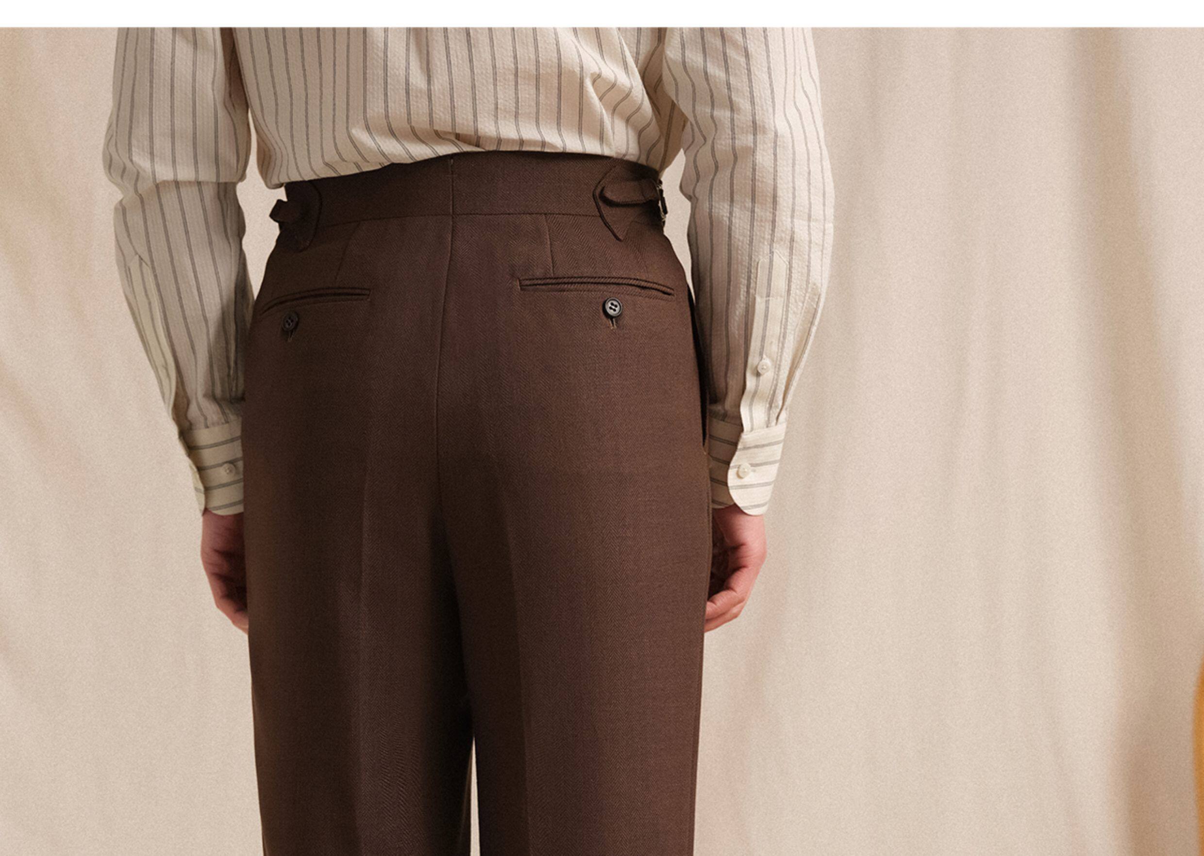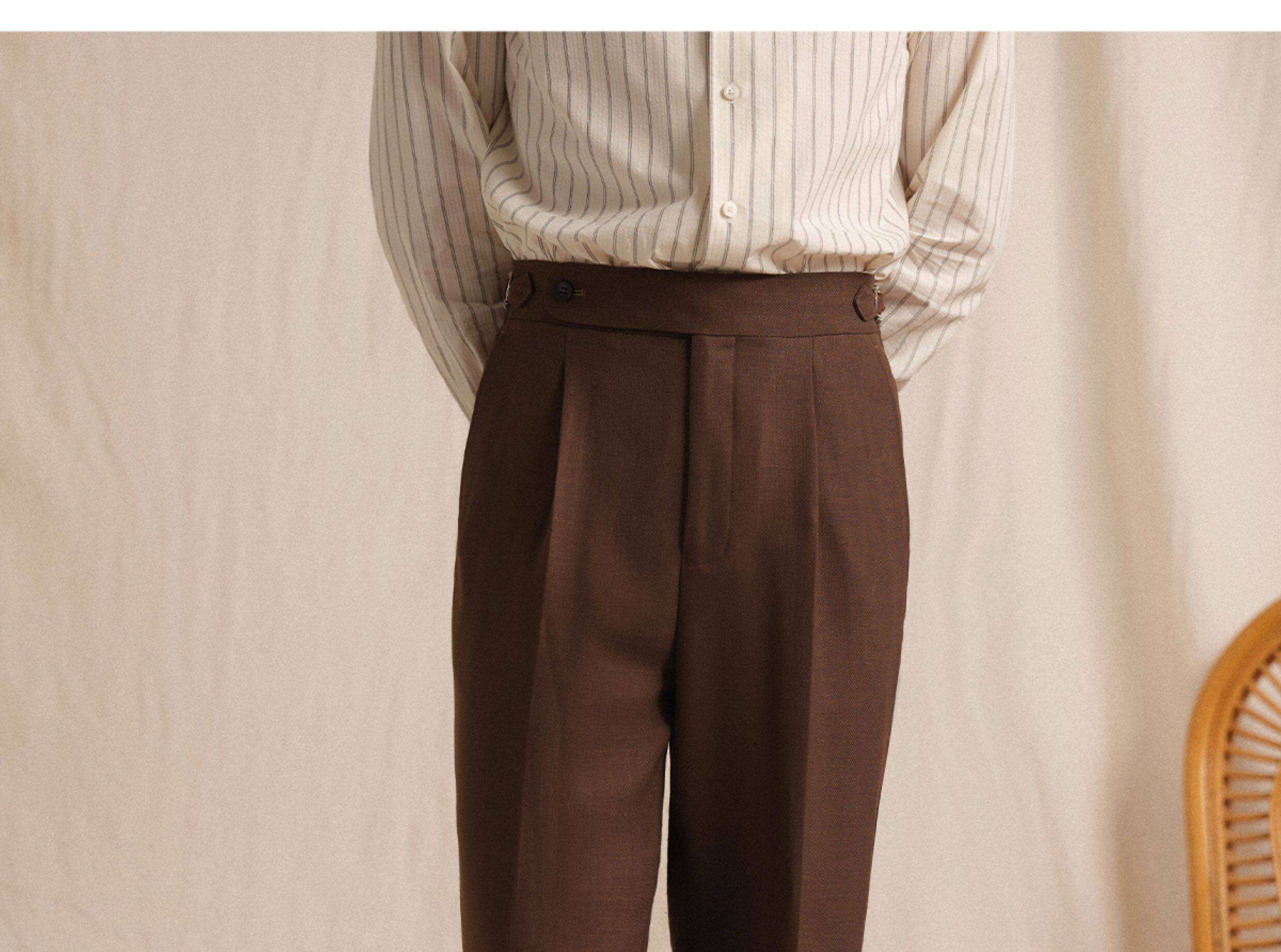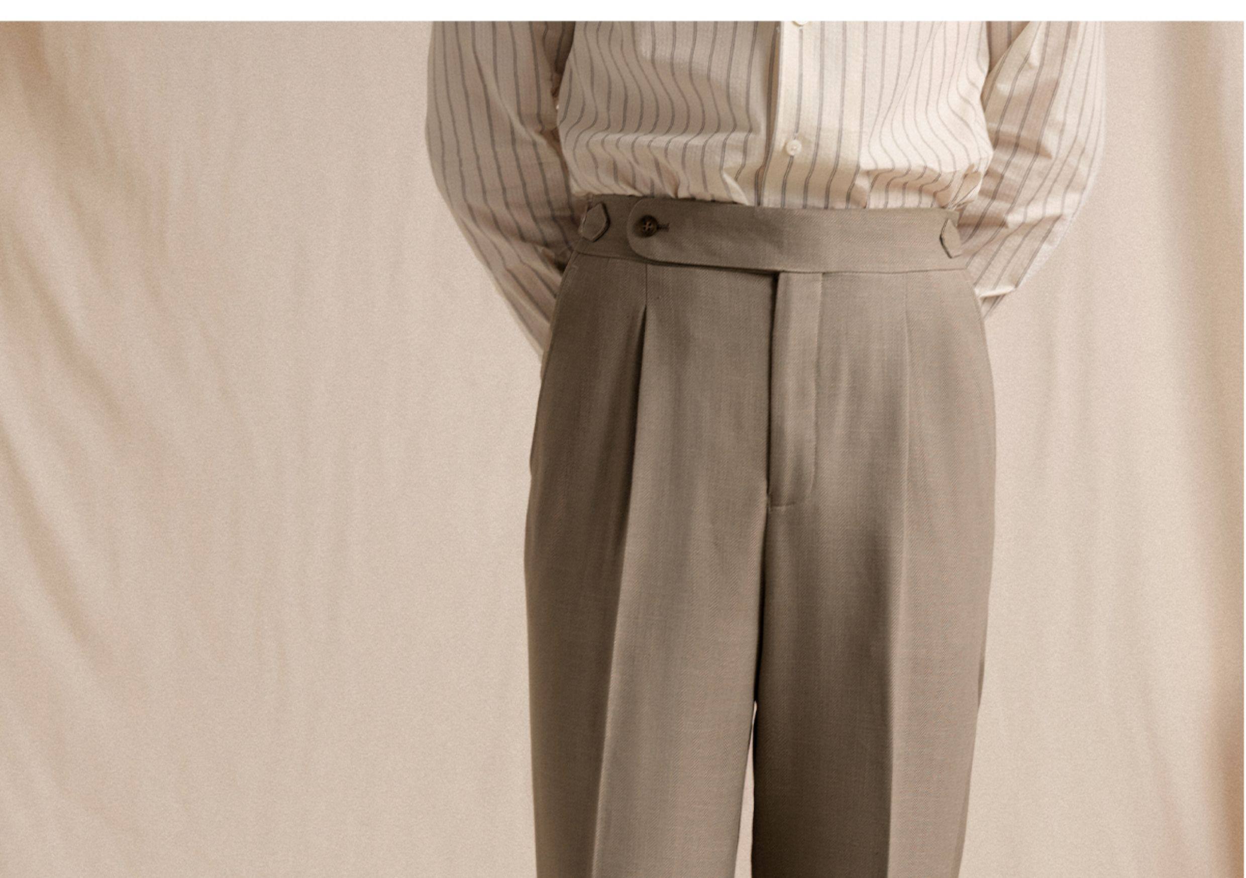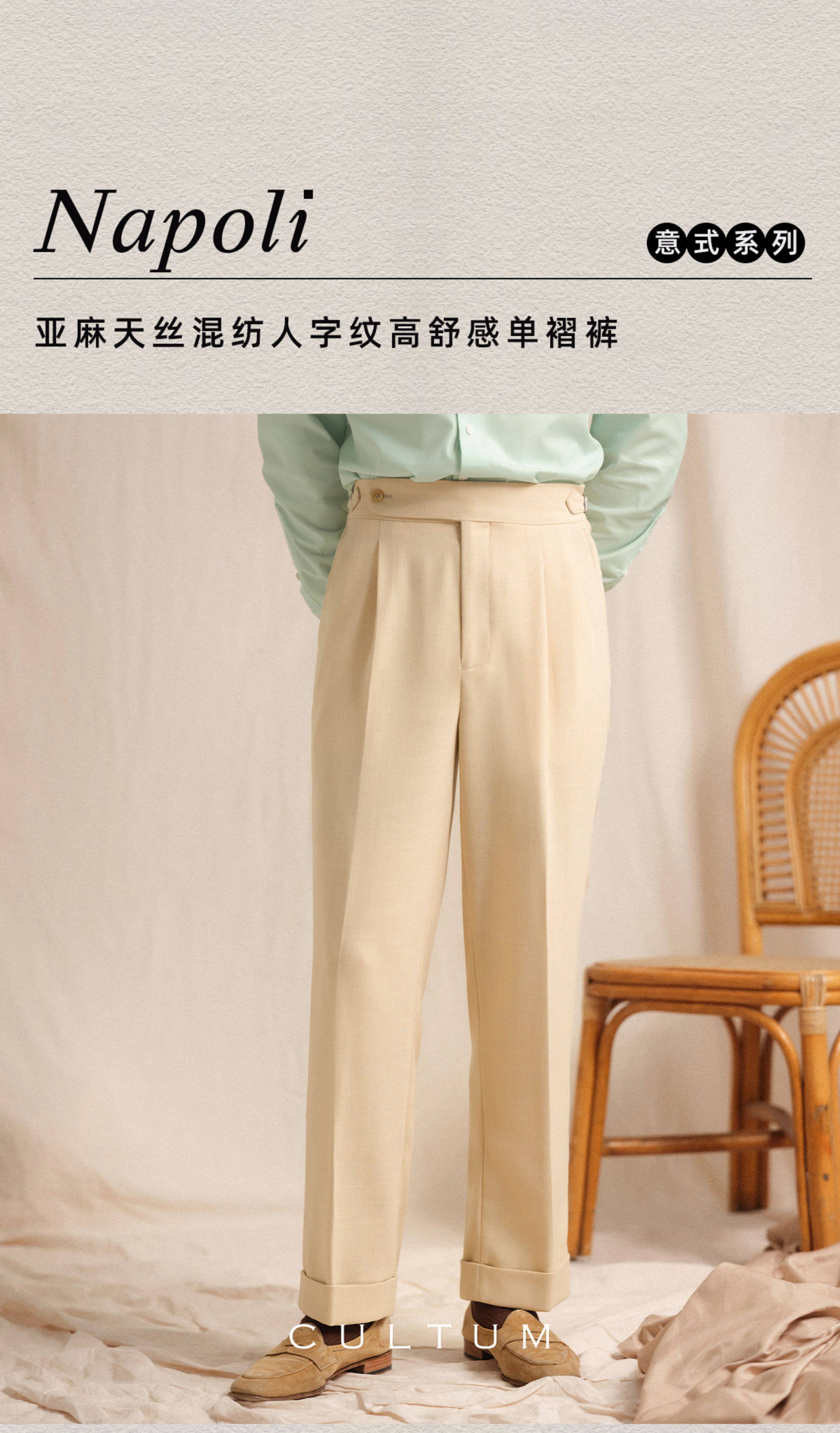 【Linen Wrinkle-Free Breathable Fabric】Cultum Italian Naples Single-Pleat Men's Dress Pants with Drapey Herringbone Pattern