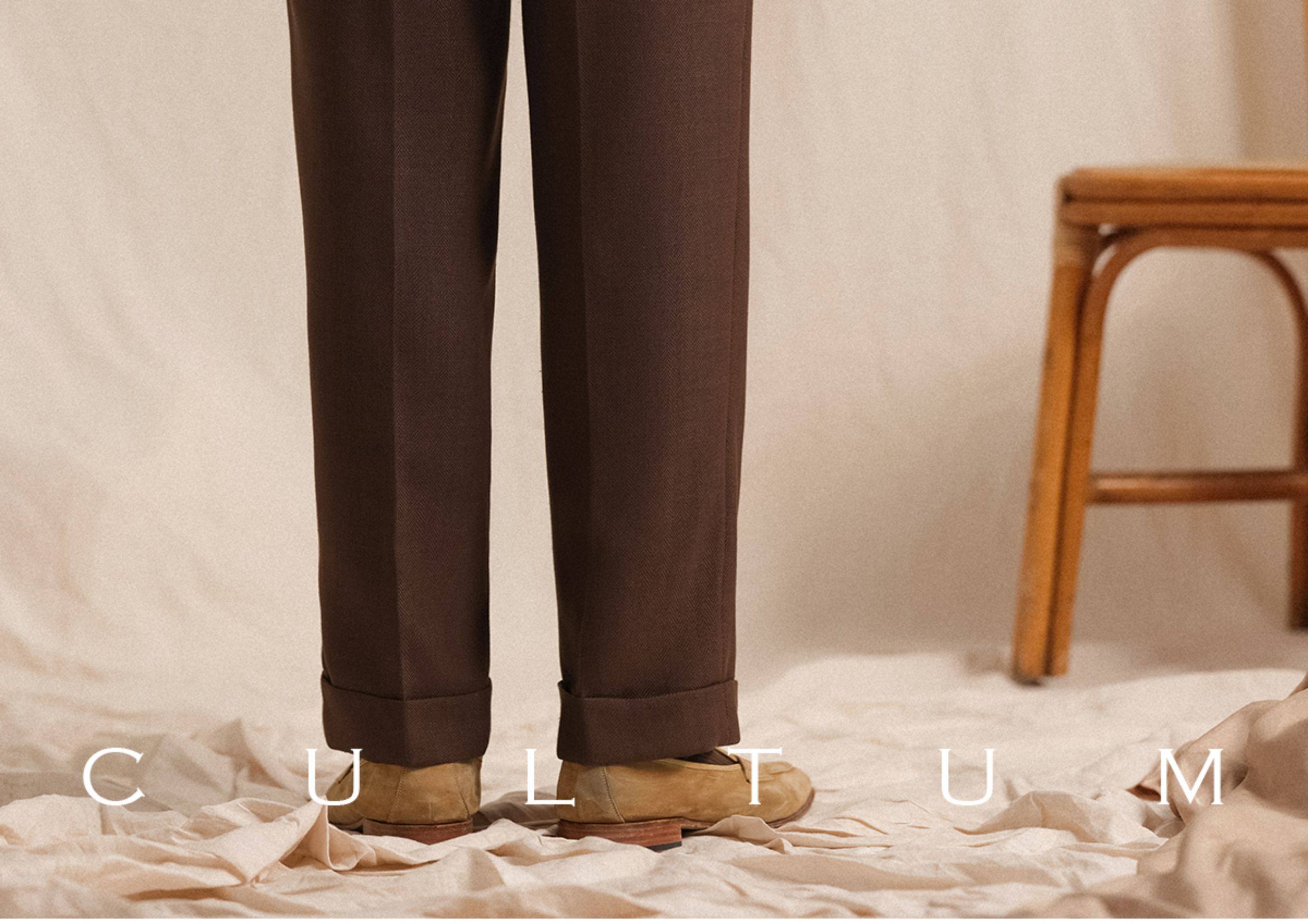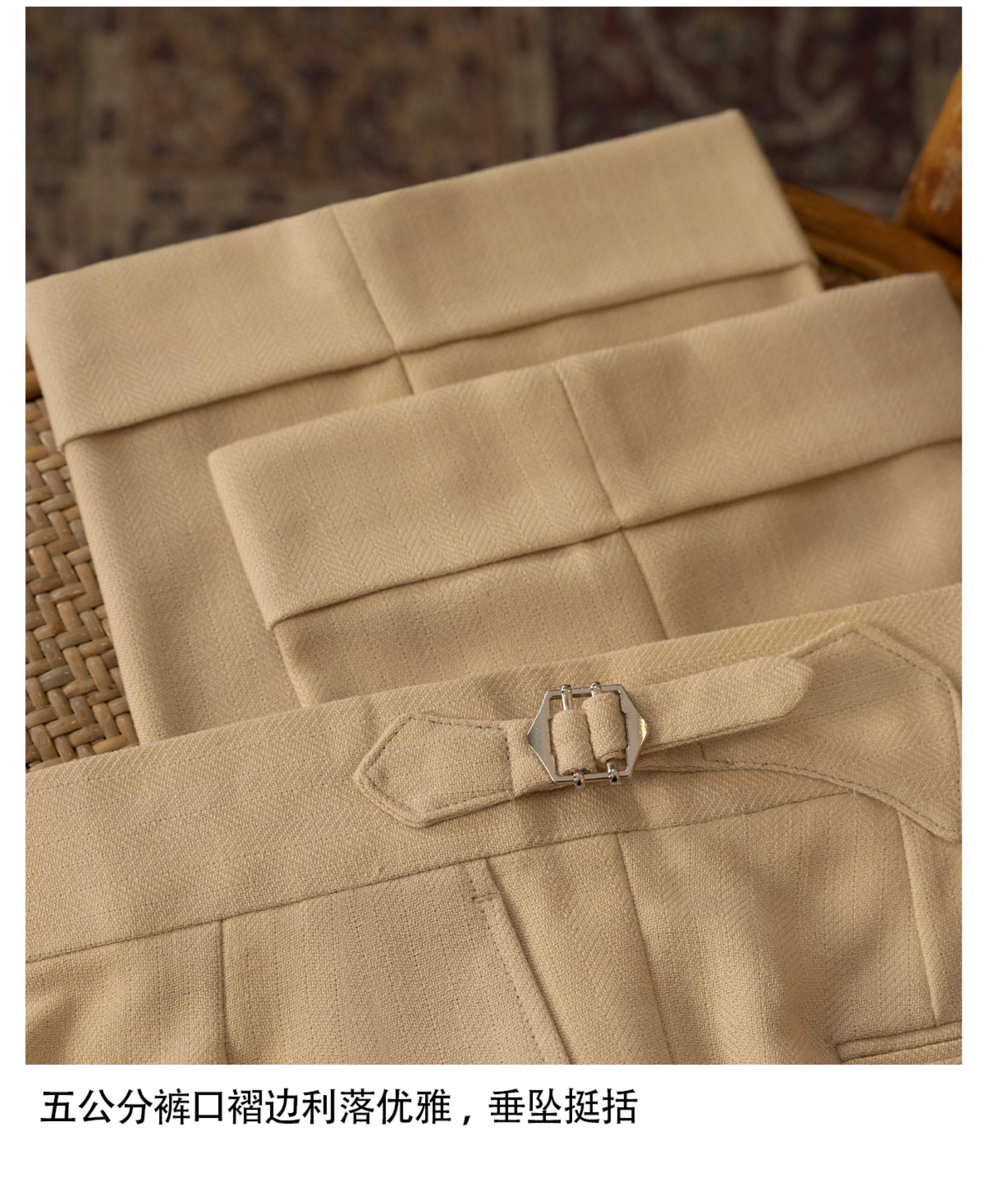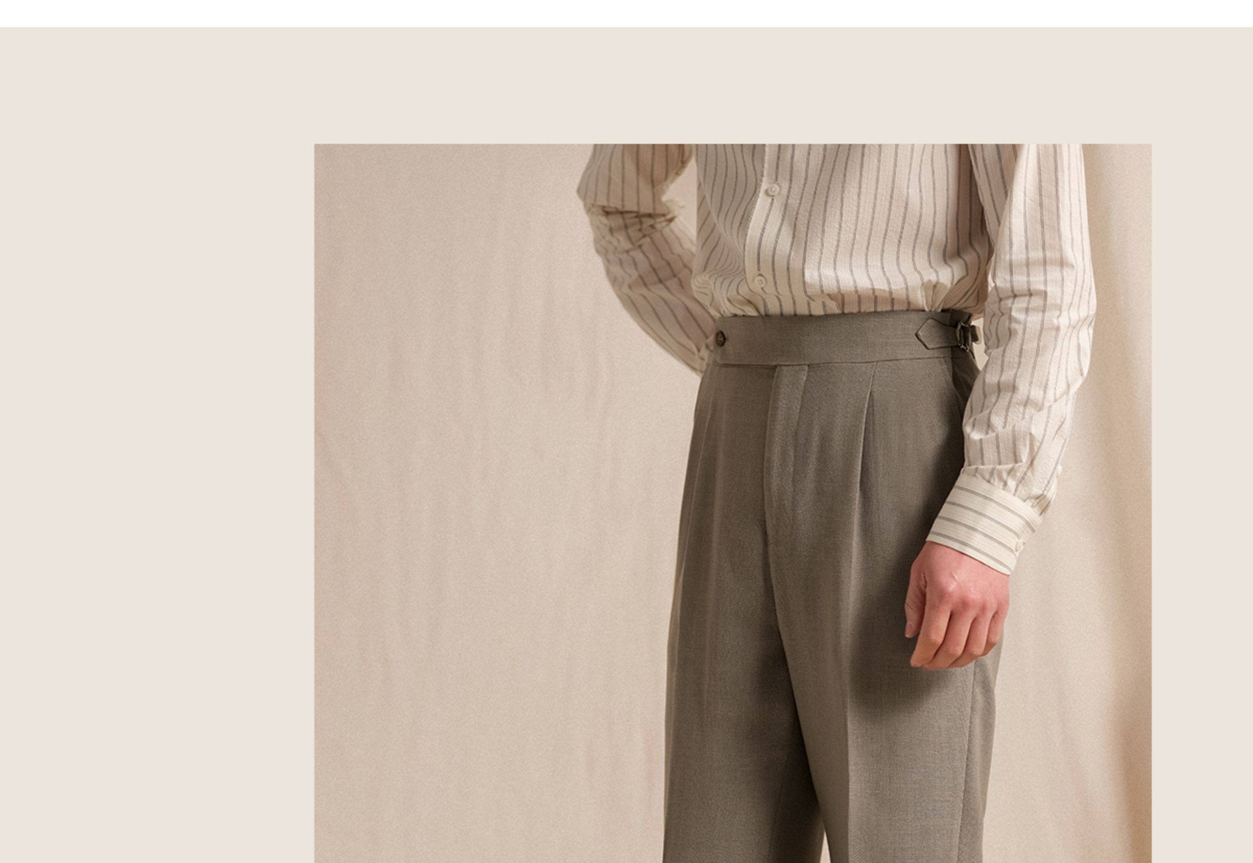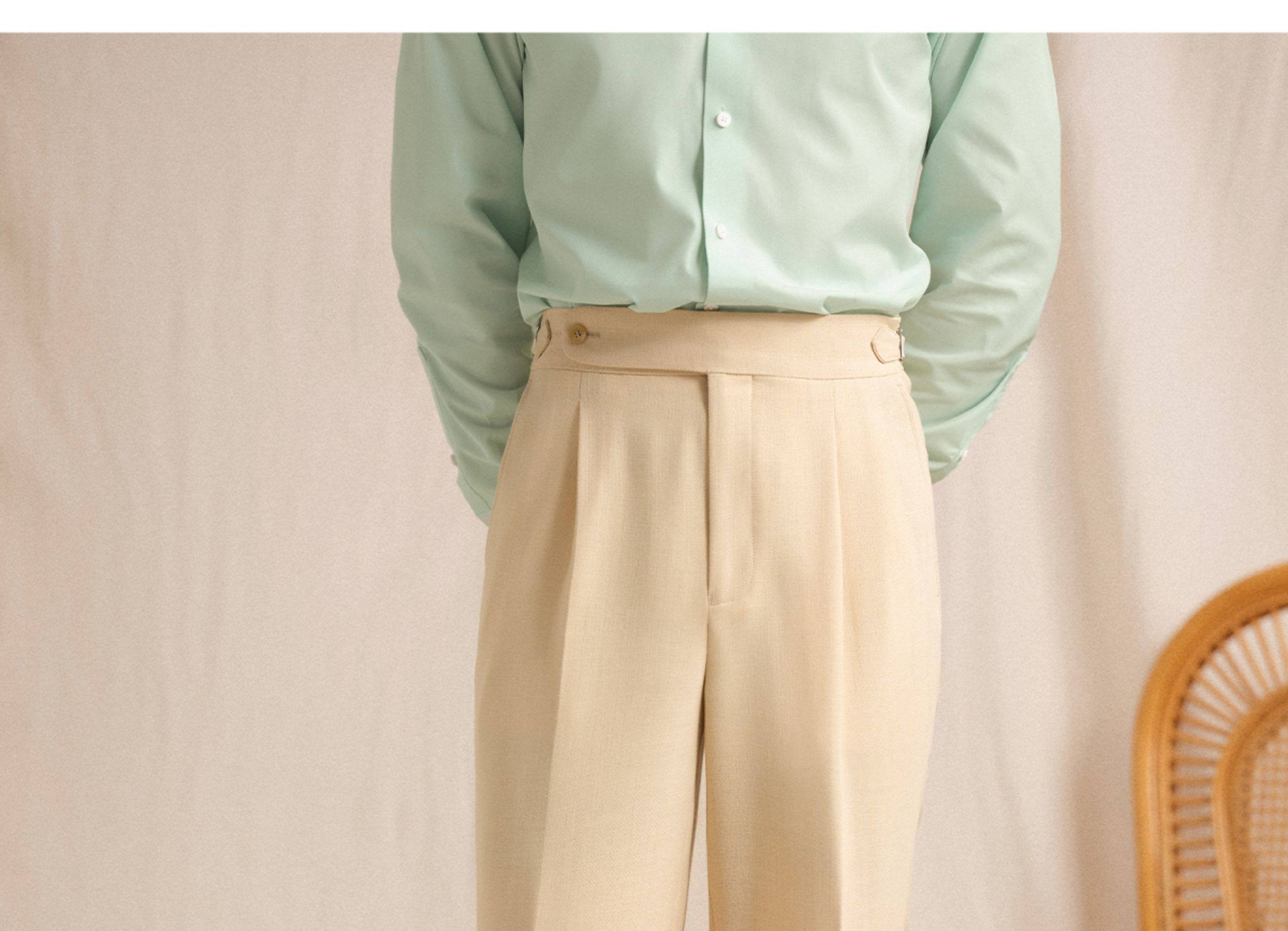 【Linen Wrinkle-Free Breathable Fabric】Cultum Italian Naples Single-Pleat Men's Dress Pants with Drapey Herringbone Pattern
