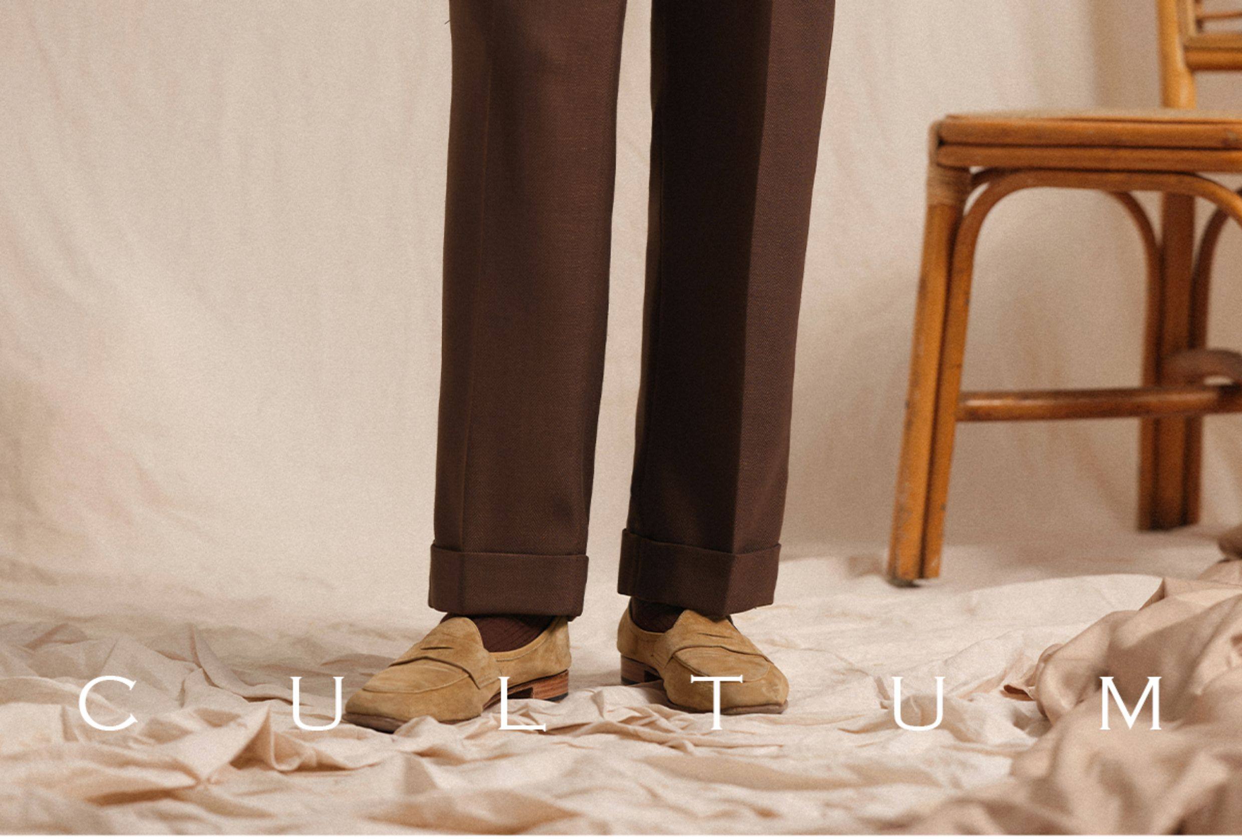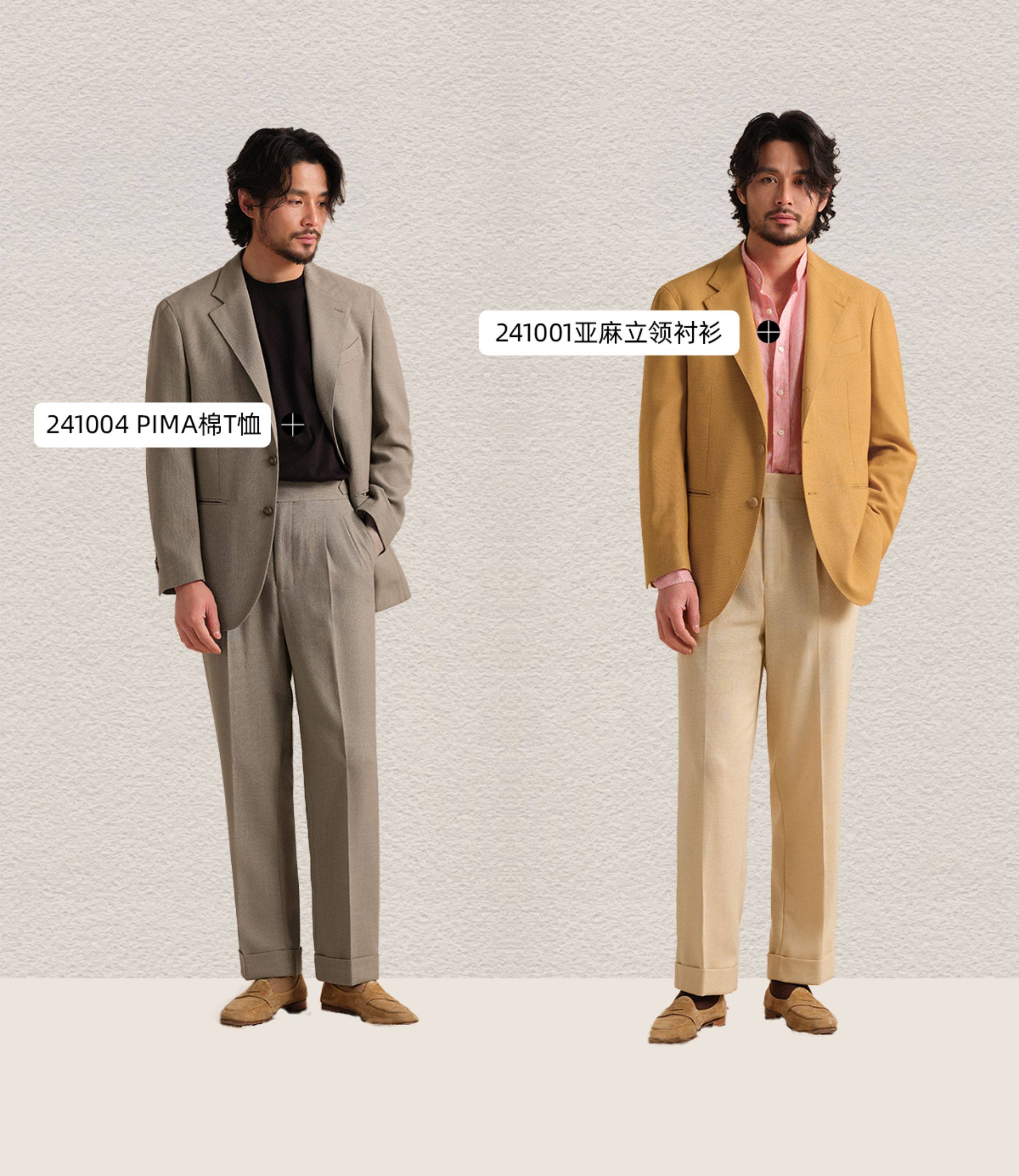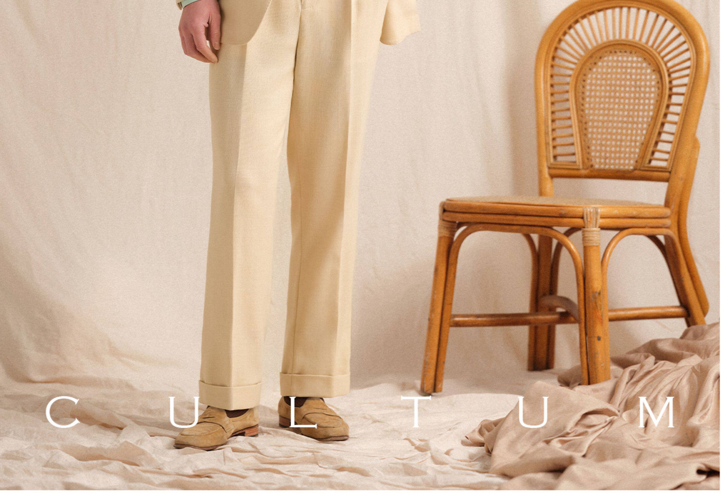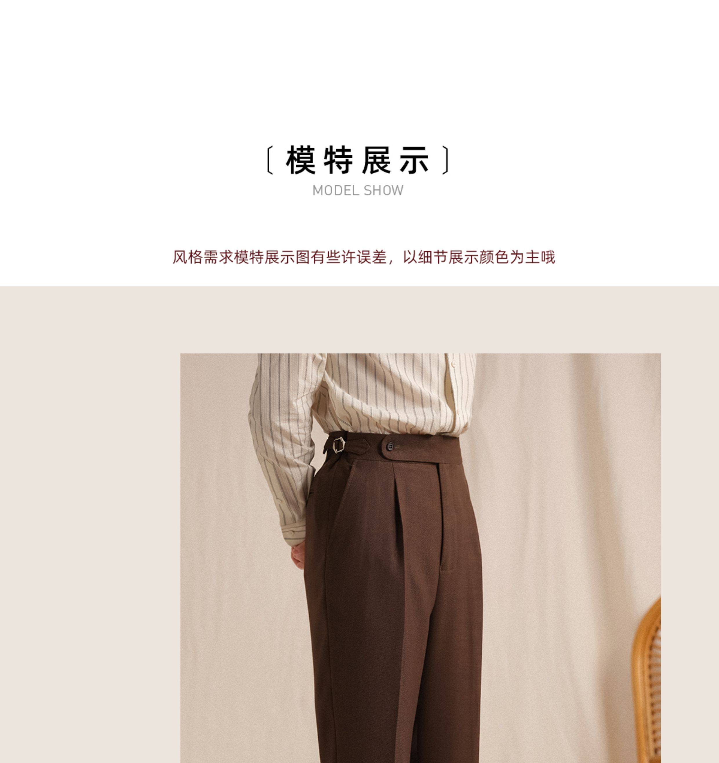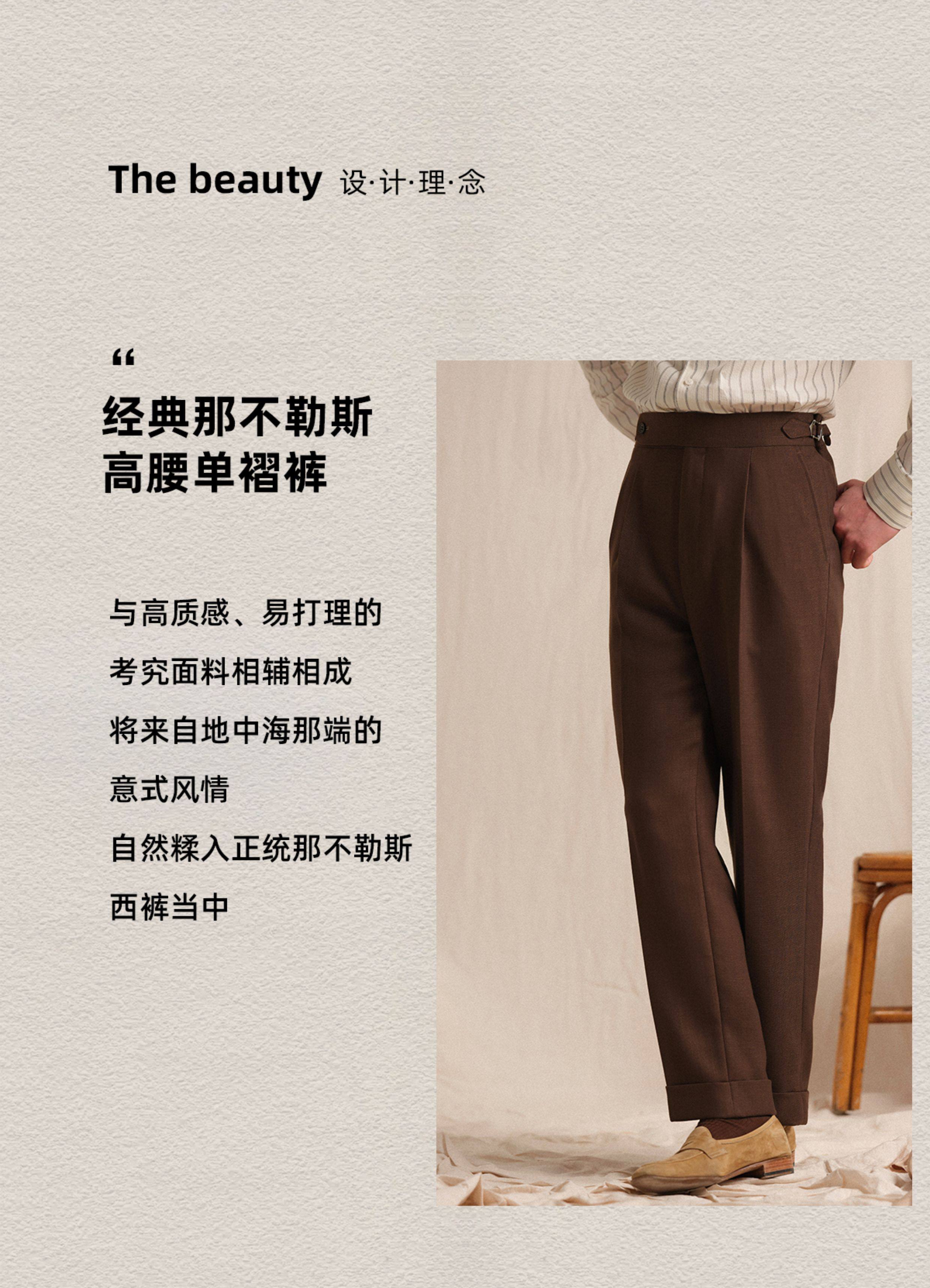 【Linen Wrinkle-Free Breathable Fabric】Cultum Italian Naples Single-Pleat Men's Dress Pants with Drapey Herringbone Pattern