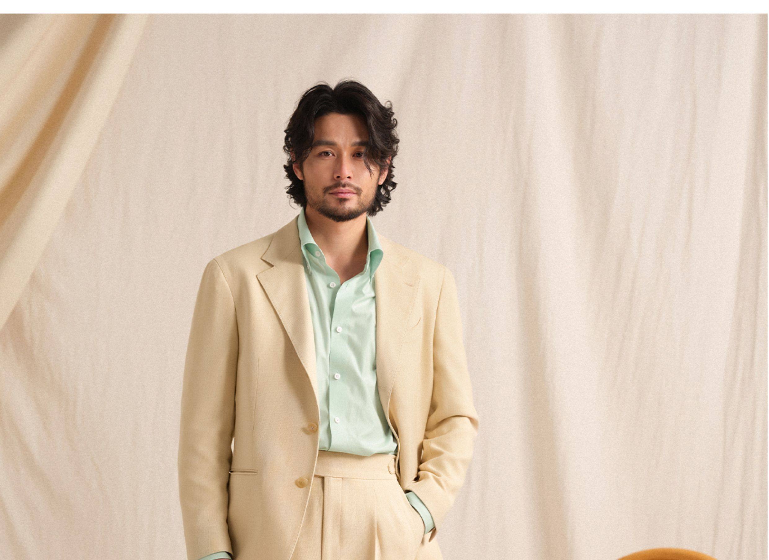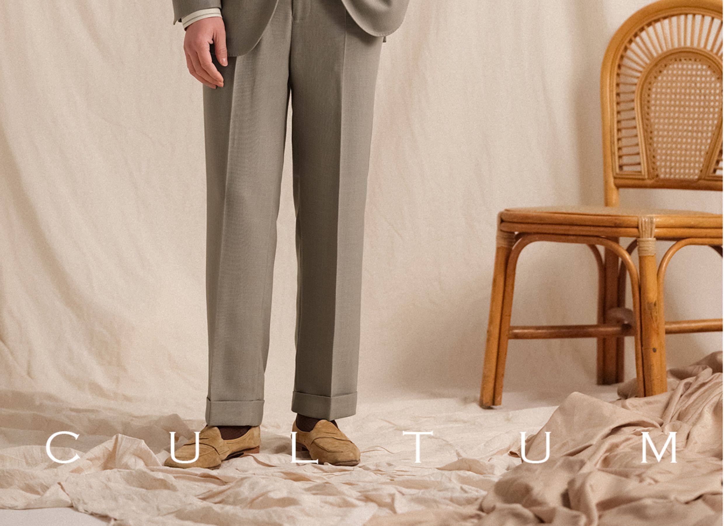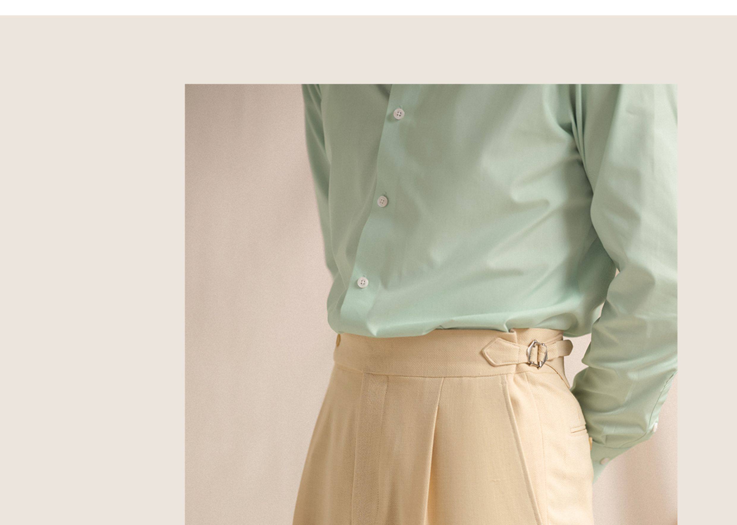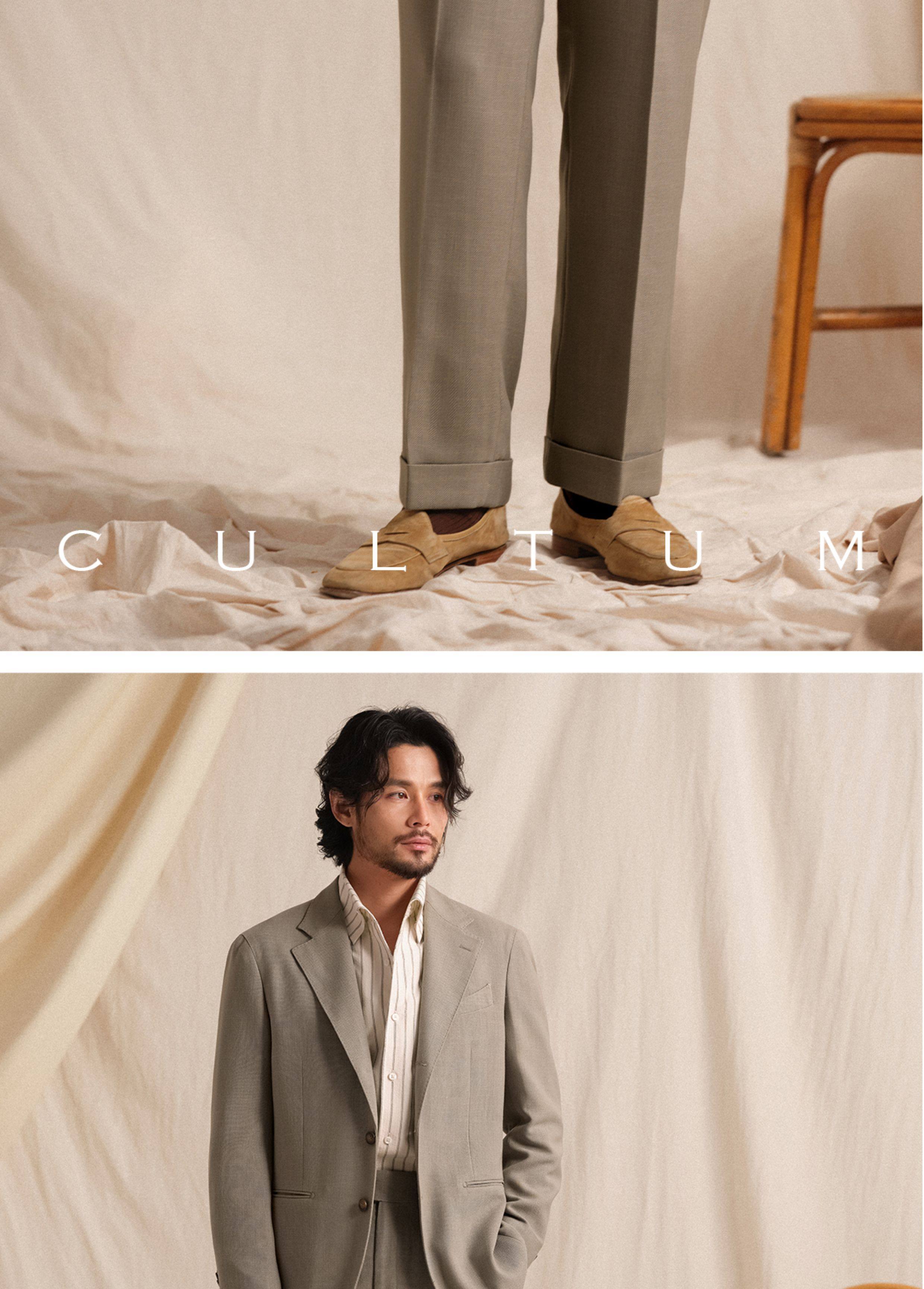 【Linen Wrinkle-Free Breathable Fabric】Cultum Italian Naples Single-Pleat Men's Dress Pants with Drapey Herringbone Pattern