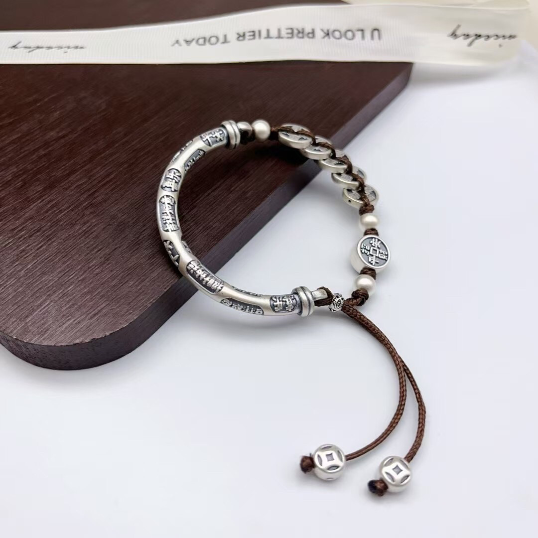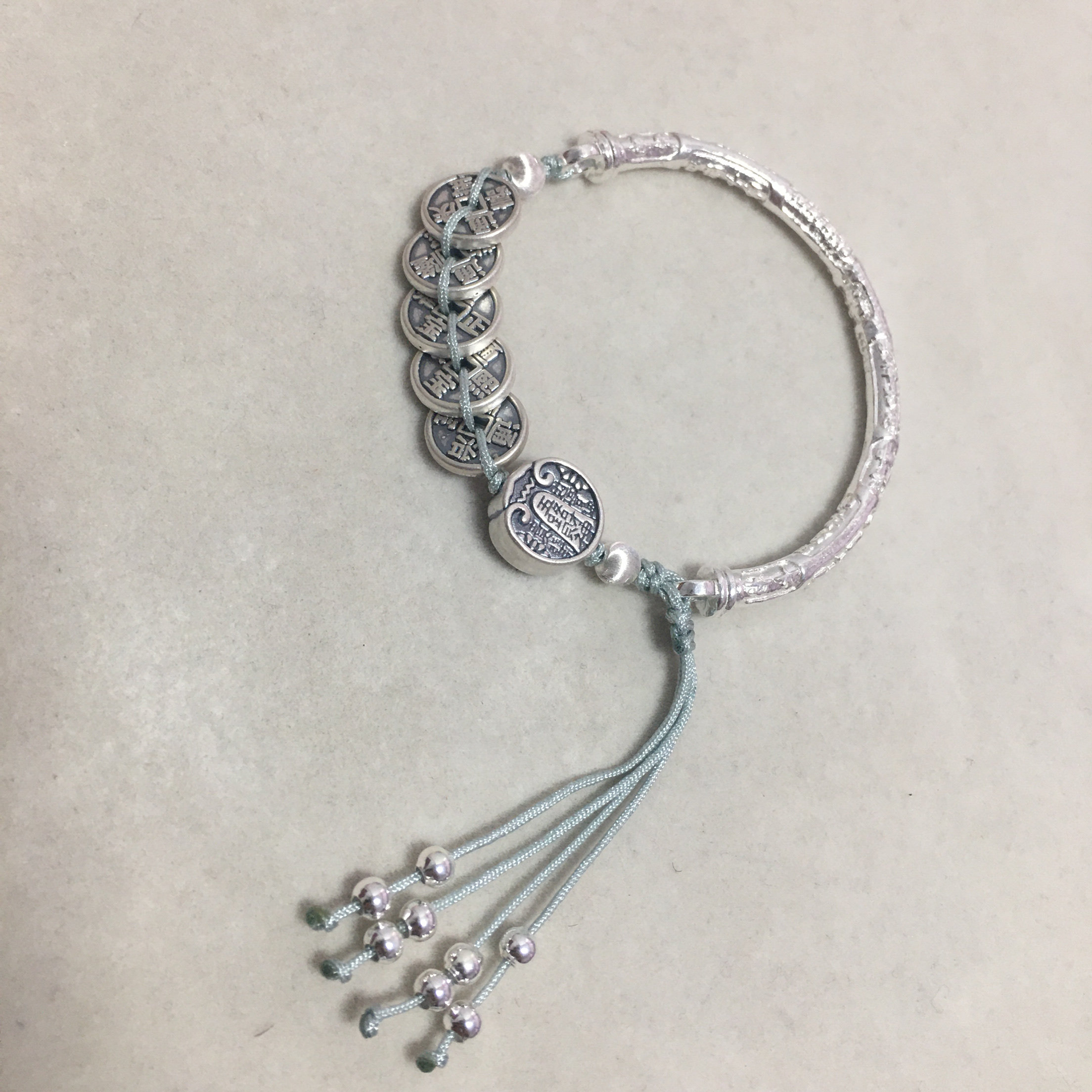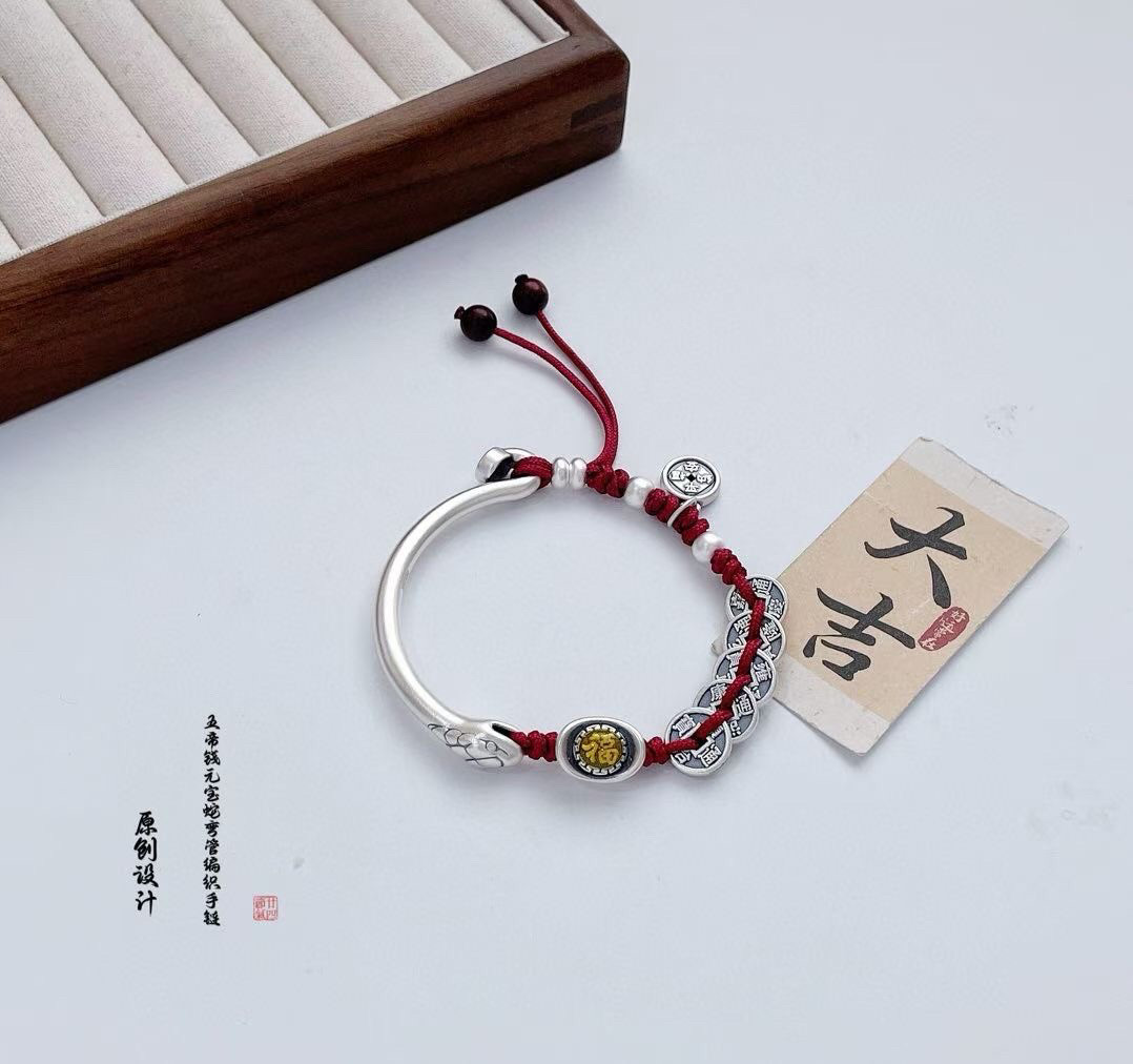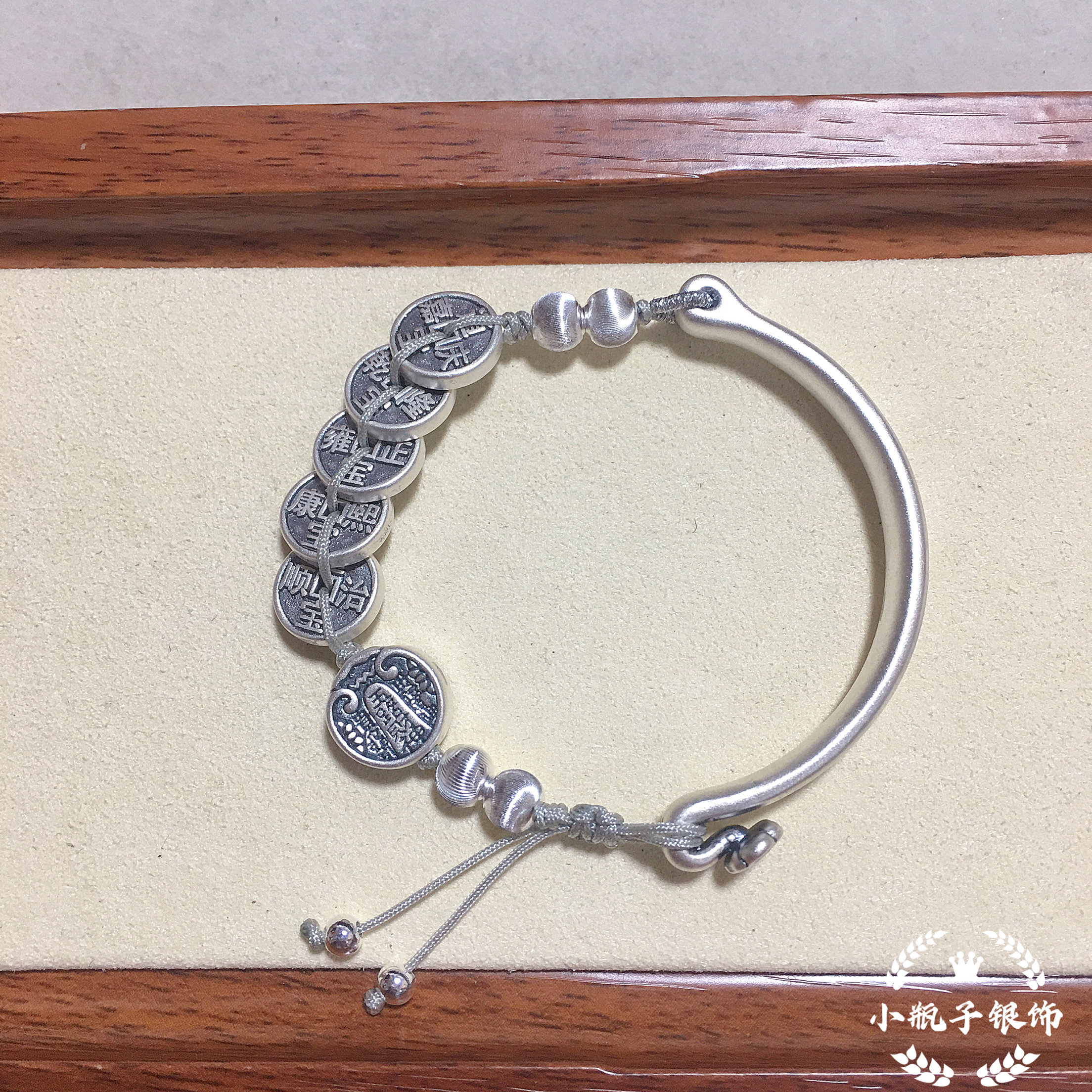 999 Pure Silver Half Bracelet with Five Emperors' Coins and Five Gods of Wealth, Handmade DIY Woven Women's Bracelet, National Trend, Ethnic Style, Fashionable and Unique