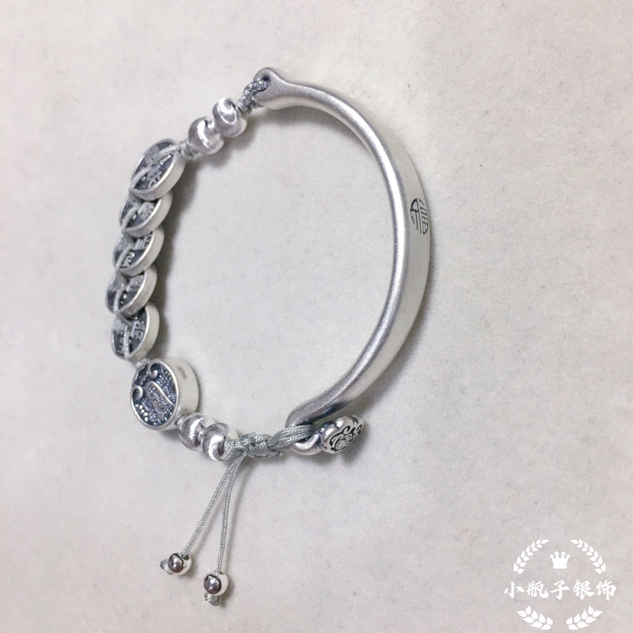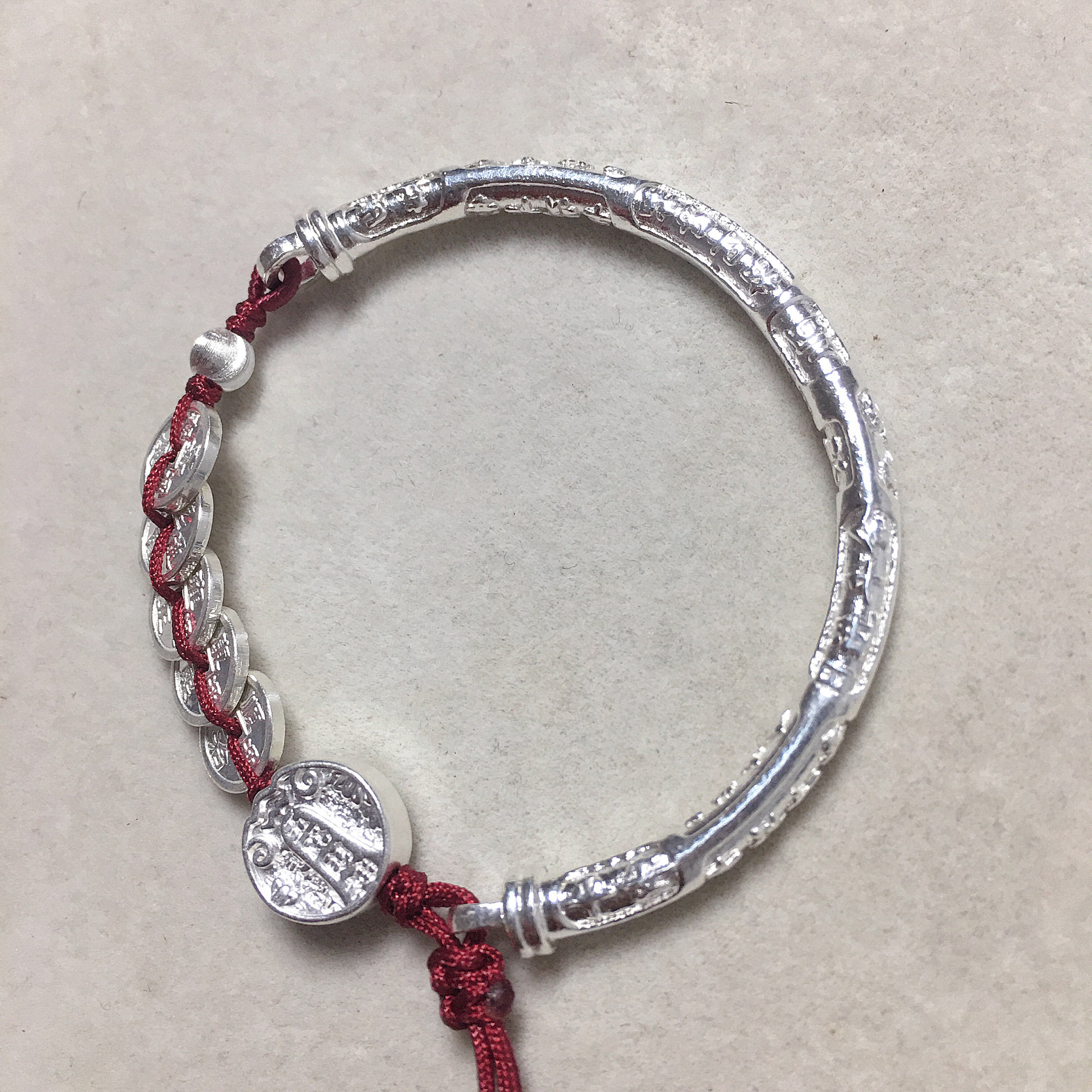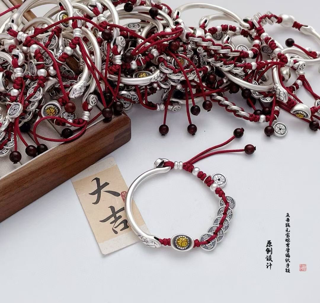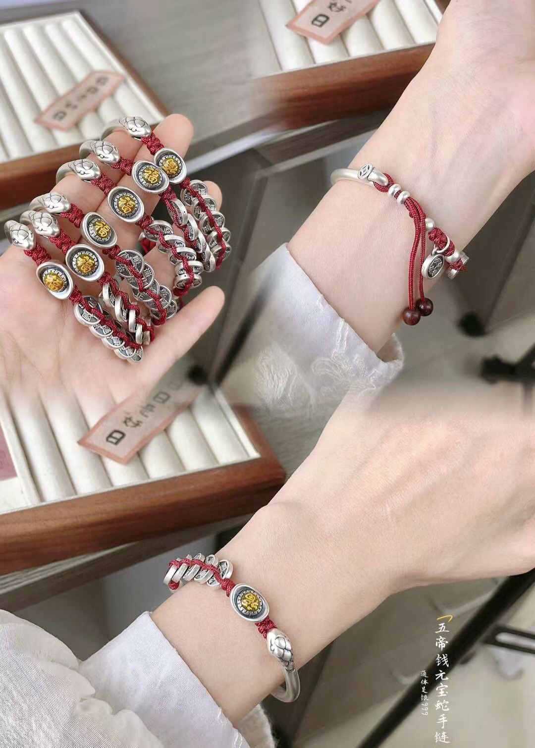 999 Pure Silver Half Bracelet with Five Emperors' Coins and Five Gods of Wealth, Handmade DIY Woven Women's Bracelet, National Trend, Ethnic Style, Fashionable and Unique
