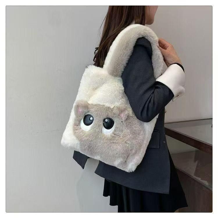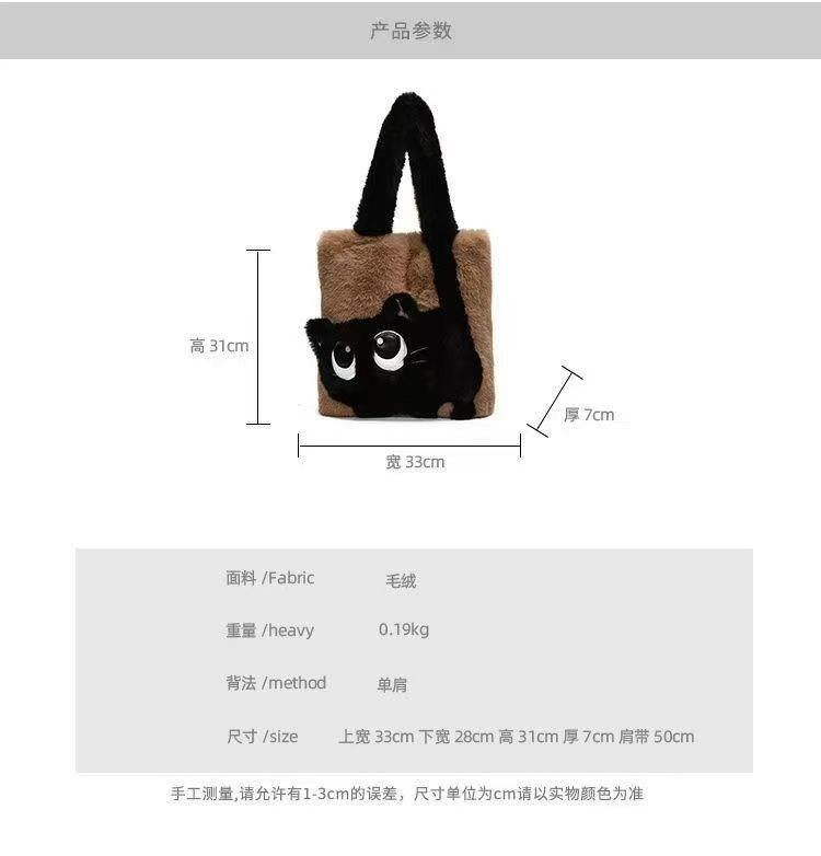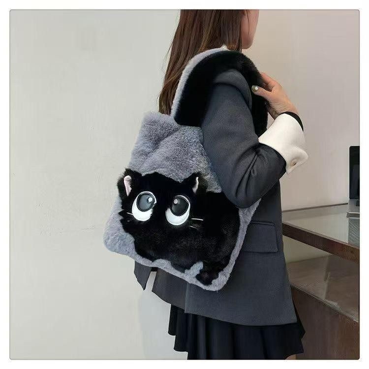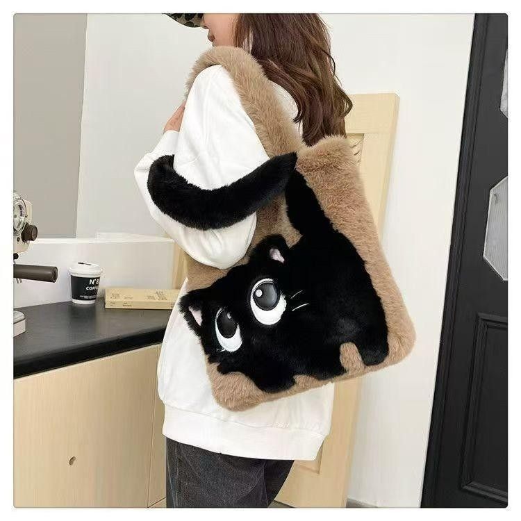 Plush Kitten Bag Handbag Autumn and Winter Furry Bag 2025 New Korean Style Versatile Student Shoulder Tote Bag Tj