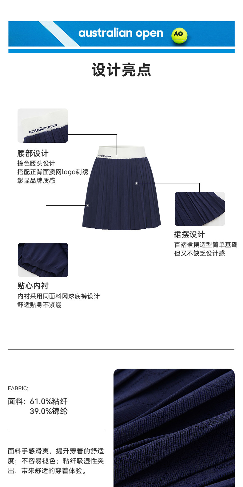 Ao Australian Open Sports Skirt, Color-Blocked Knit Skirt, Tennis Skirt, New Autumn 25 Collection, with Leggings to Prevent Exposure
