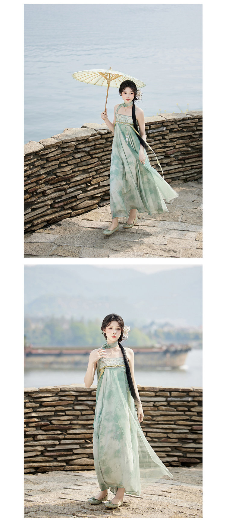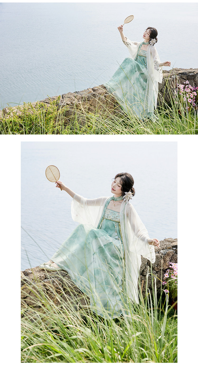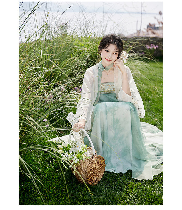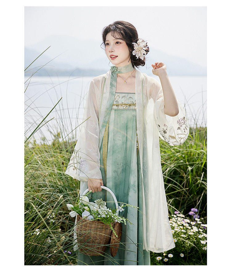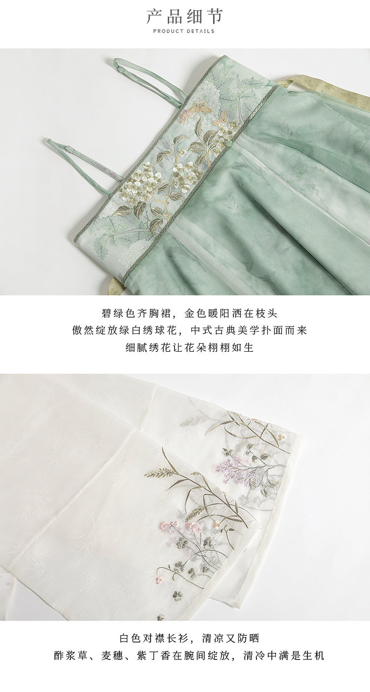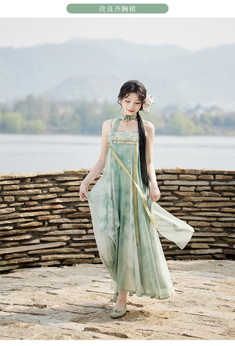 July Evening Original Hanfu Gold-Embellished Improved Mid-Length Suspender Dress White Long Robe National Style Set Spring New Arrival