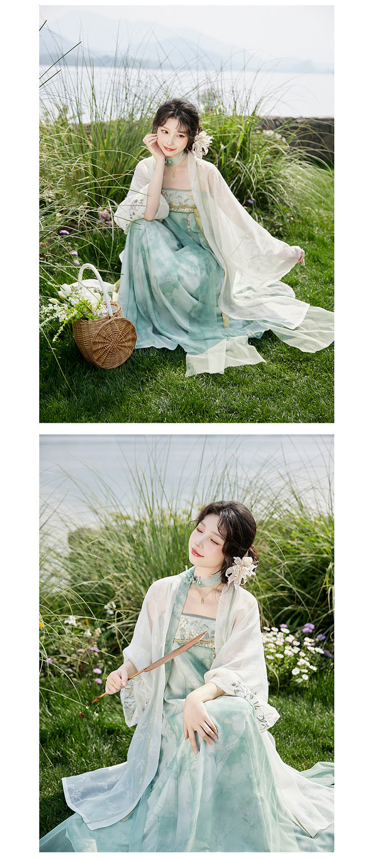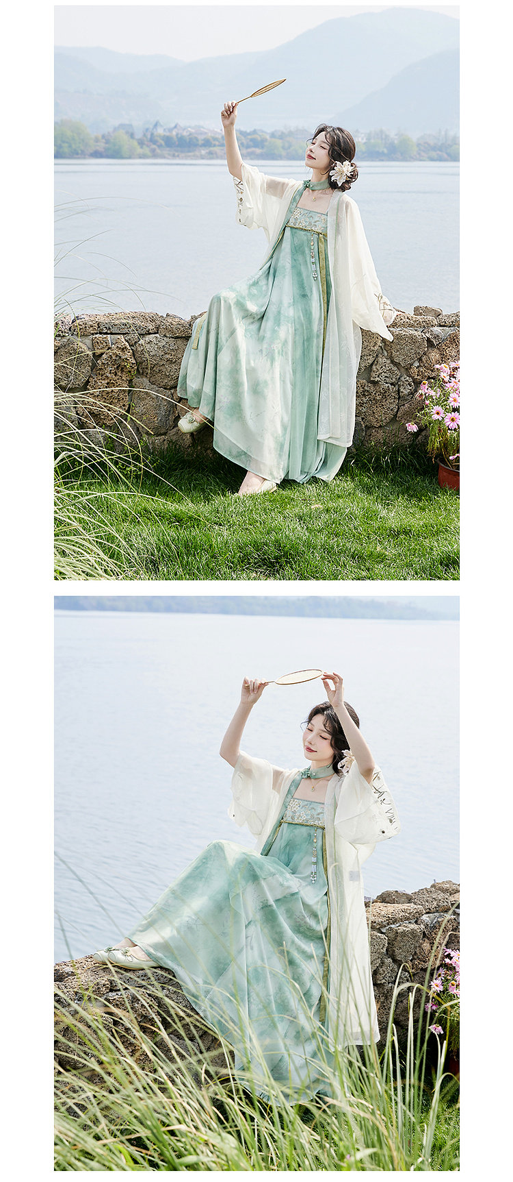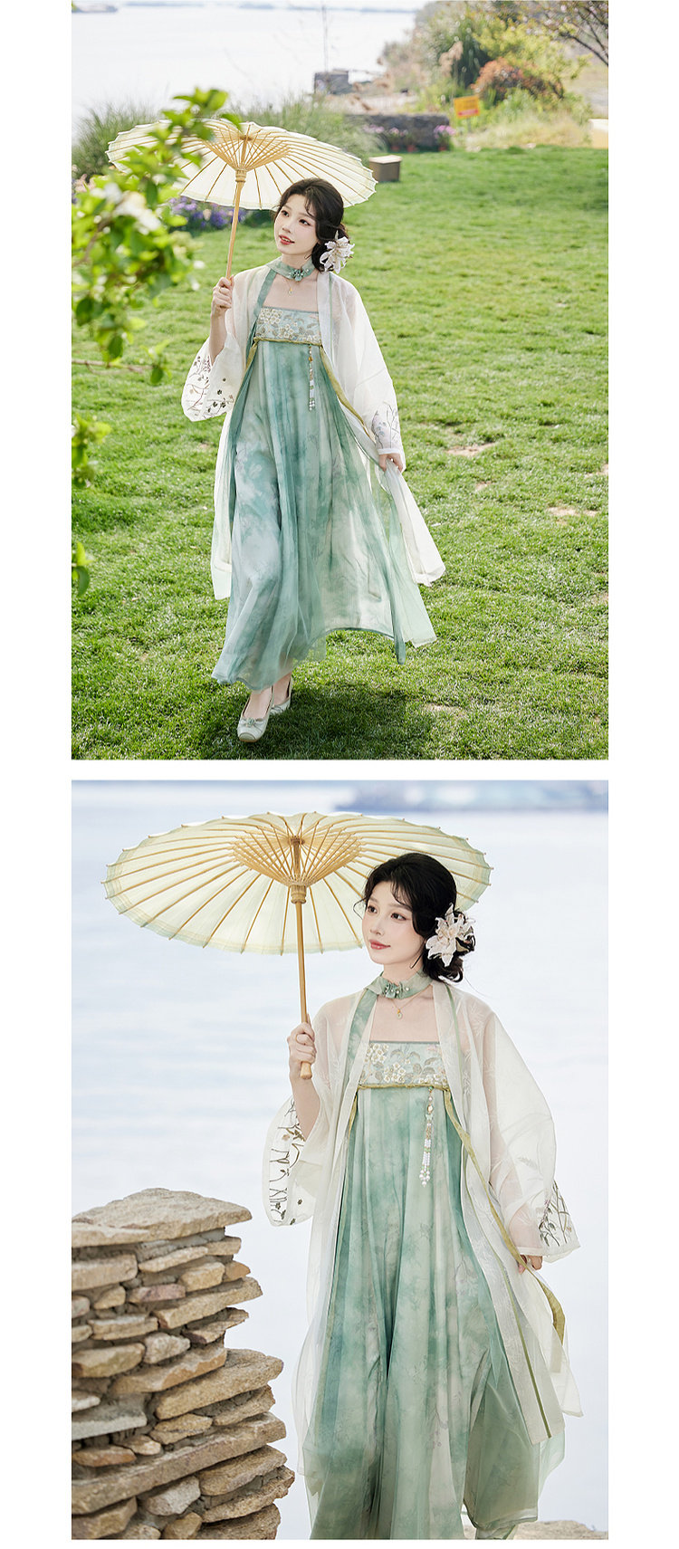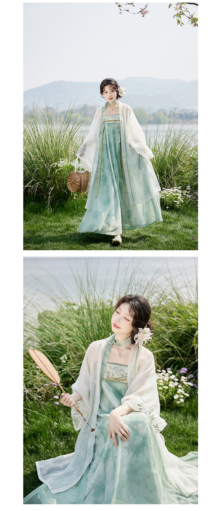 July Evening Original Hanfu Gold-Embellished Improved Mid-Length Suspender Dress White Long Robe National Style Set Spring New Arrival