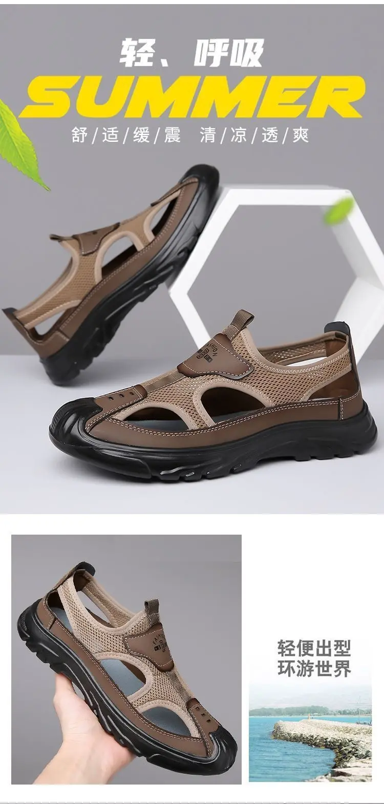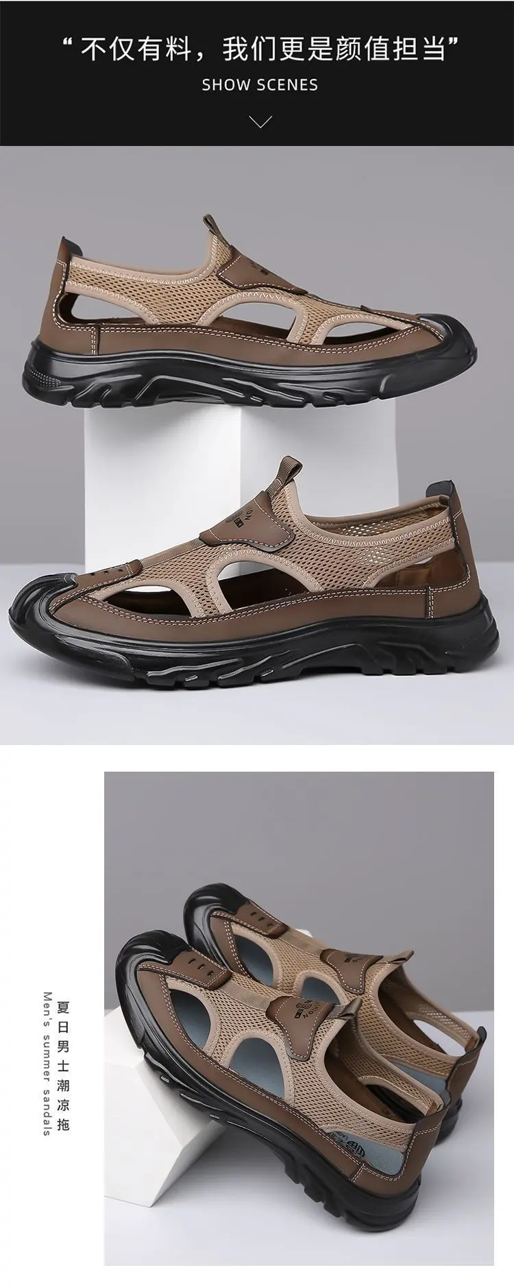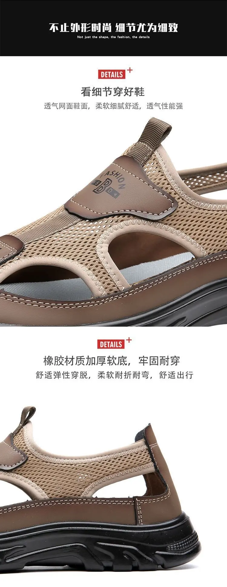 Baotou Sandals for Men, New Summer Style, Mesh Hollow Soft-Soled Dad Shoes, Breathable Outdoor Casual Shoes