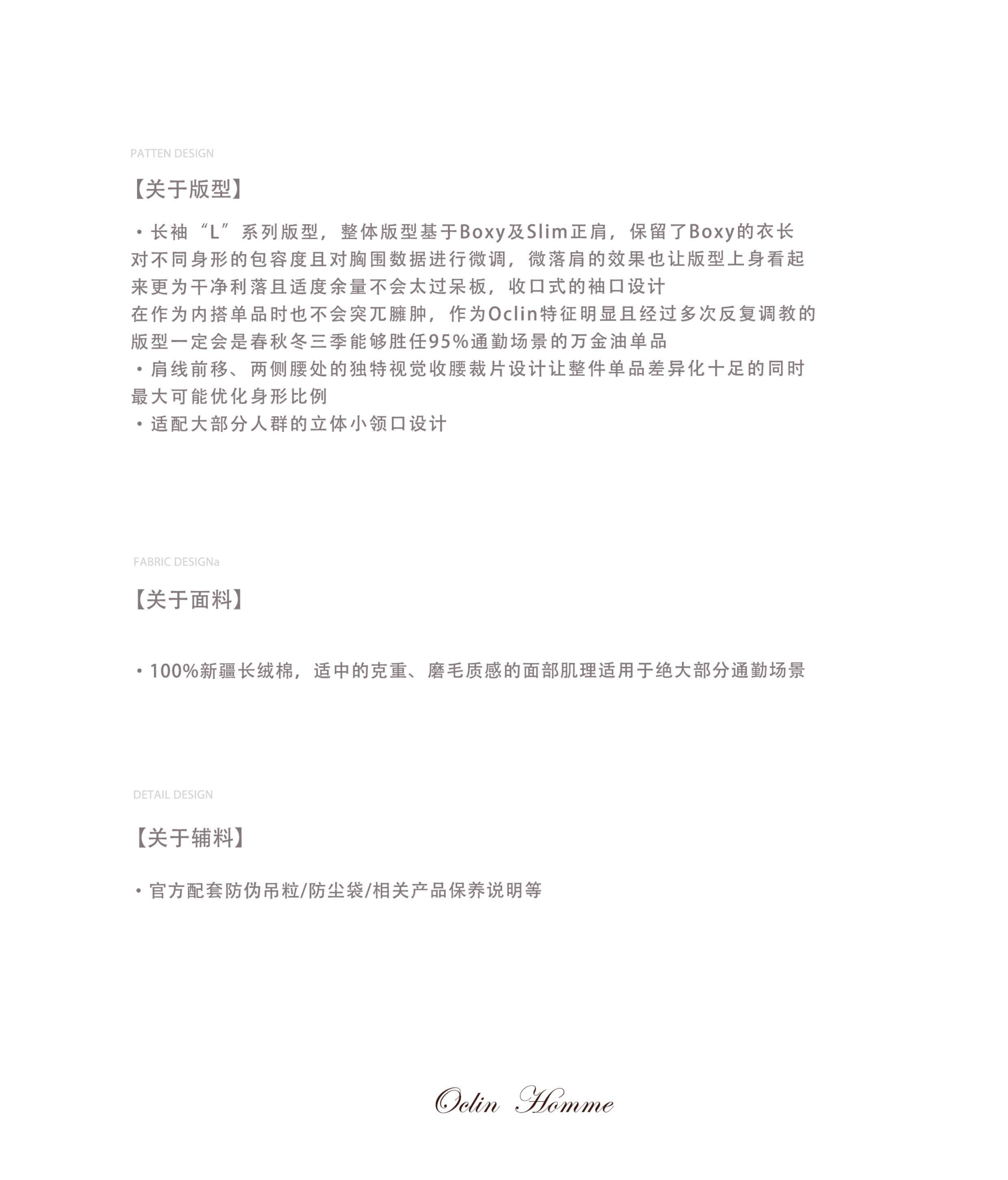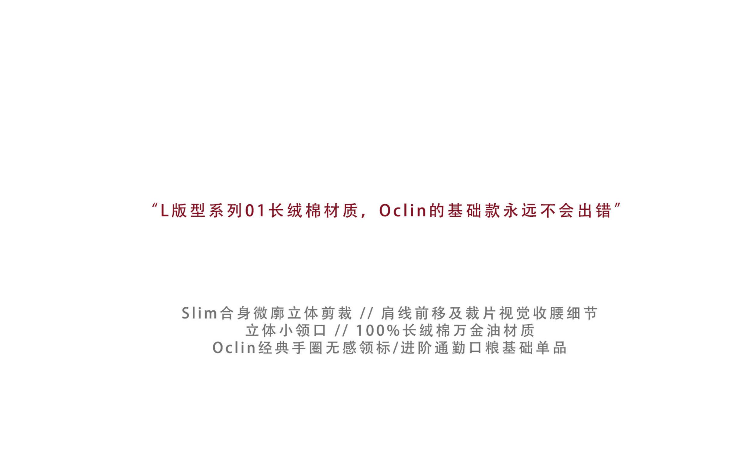 Oclin "L01" Regular Shoulder Slim Fit Small Neckline Shoulder Line Forward Shift Waist Cut Long-Staple Cotton Commuter Essential