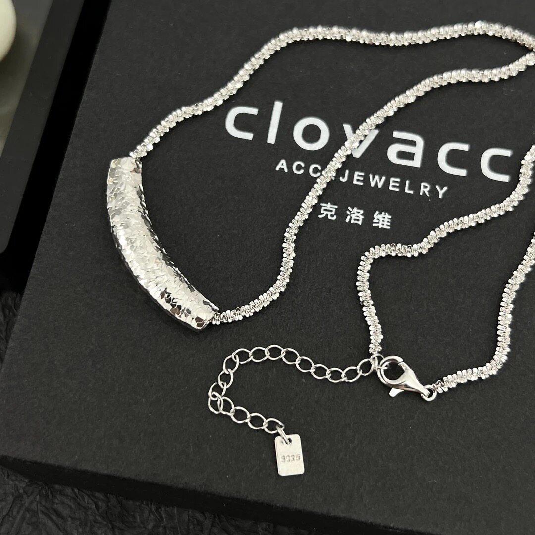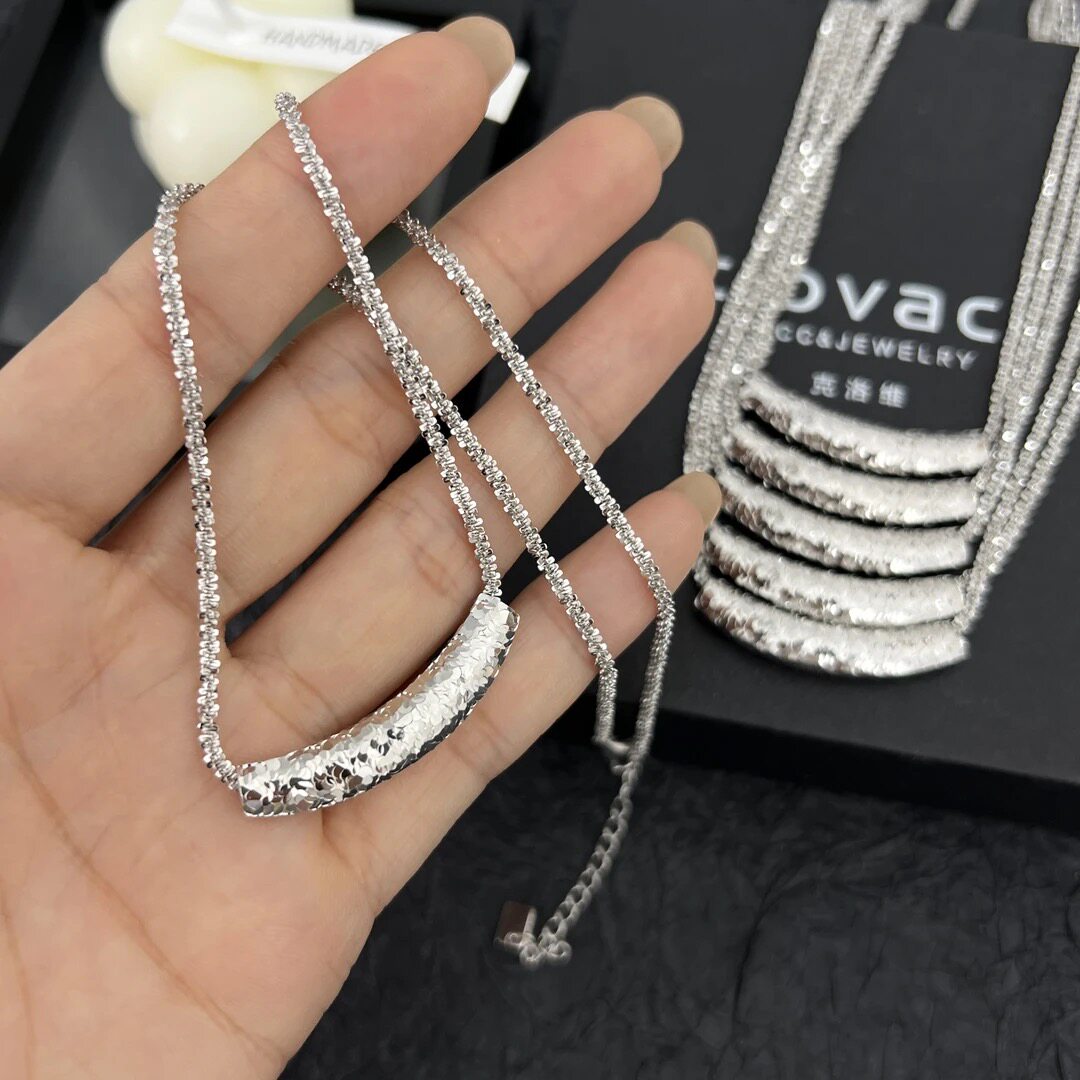 925 Sterling Silver Necklace,'Hawaiian Sunset', Light Luxury, Simple, Carved Ice Crystal Sterling Silver Pendant, Silver Necklace