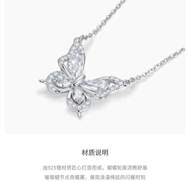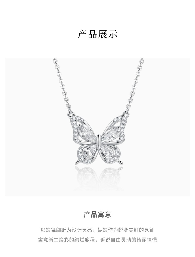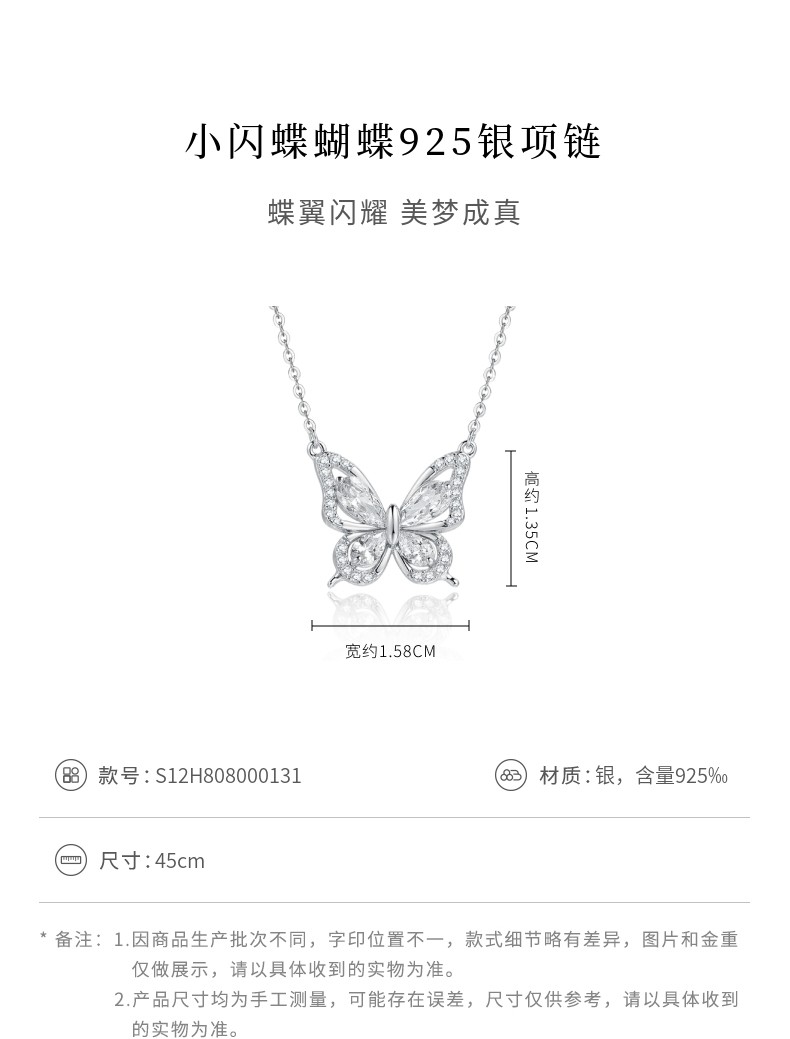 Lao Fengxiang Butterfly Dance Starburst Small Flash Butterfly Starry Sky 925 Silver Necklace Women's Gift