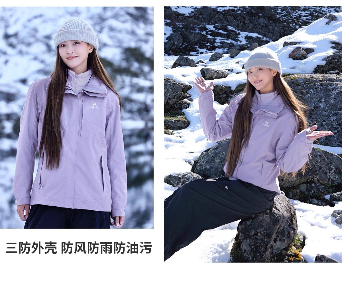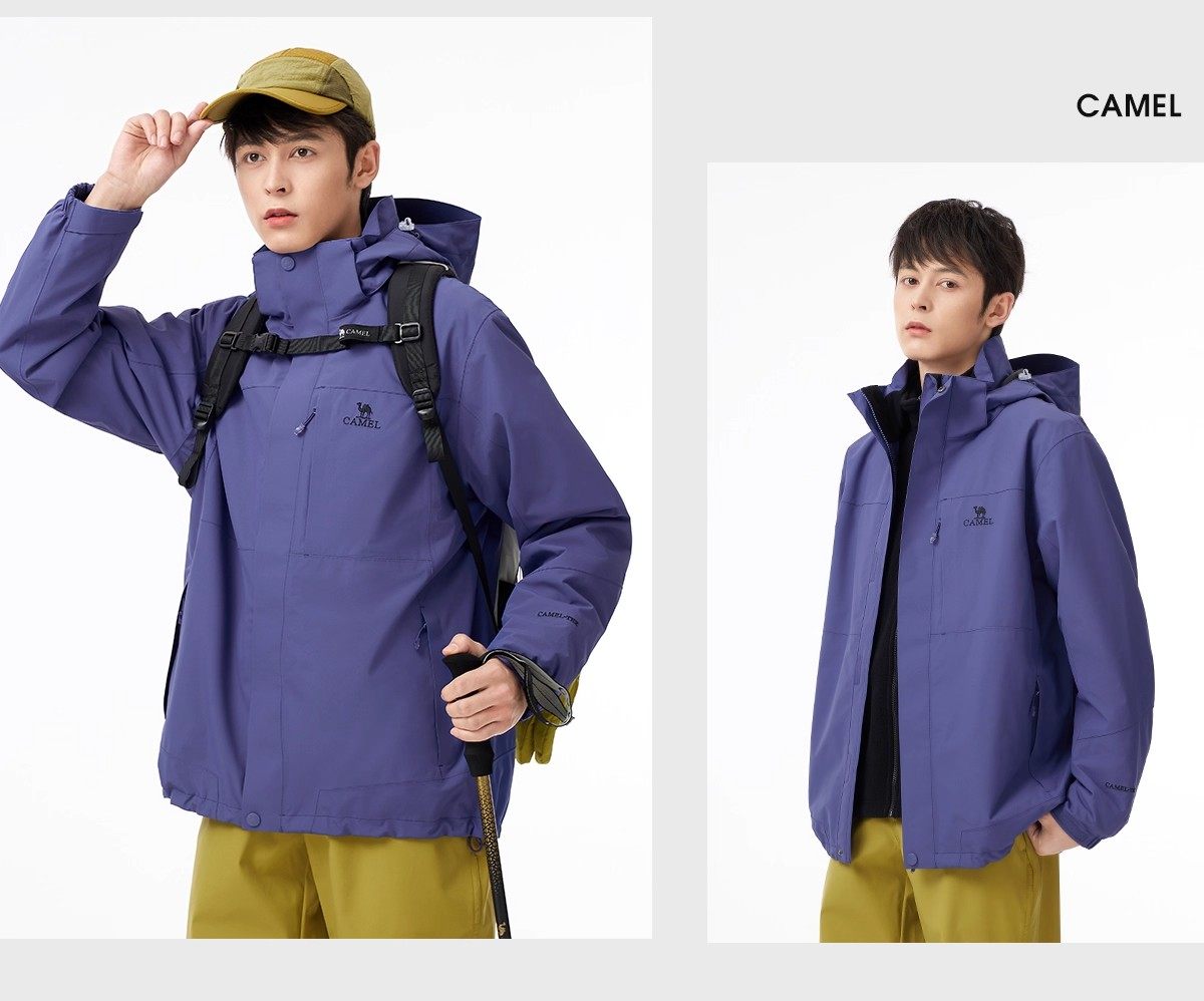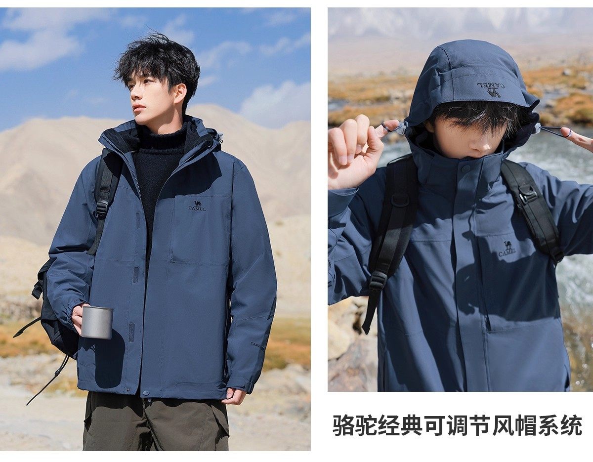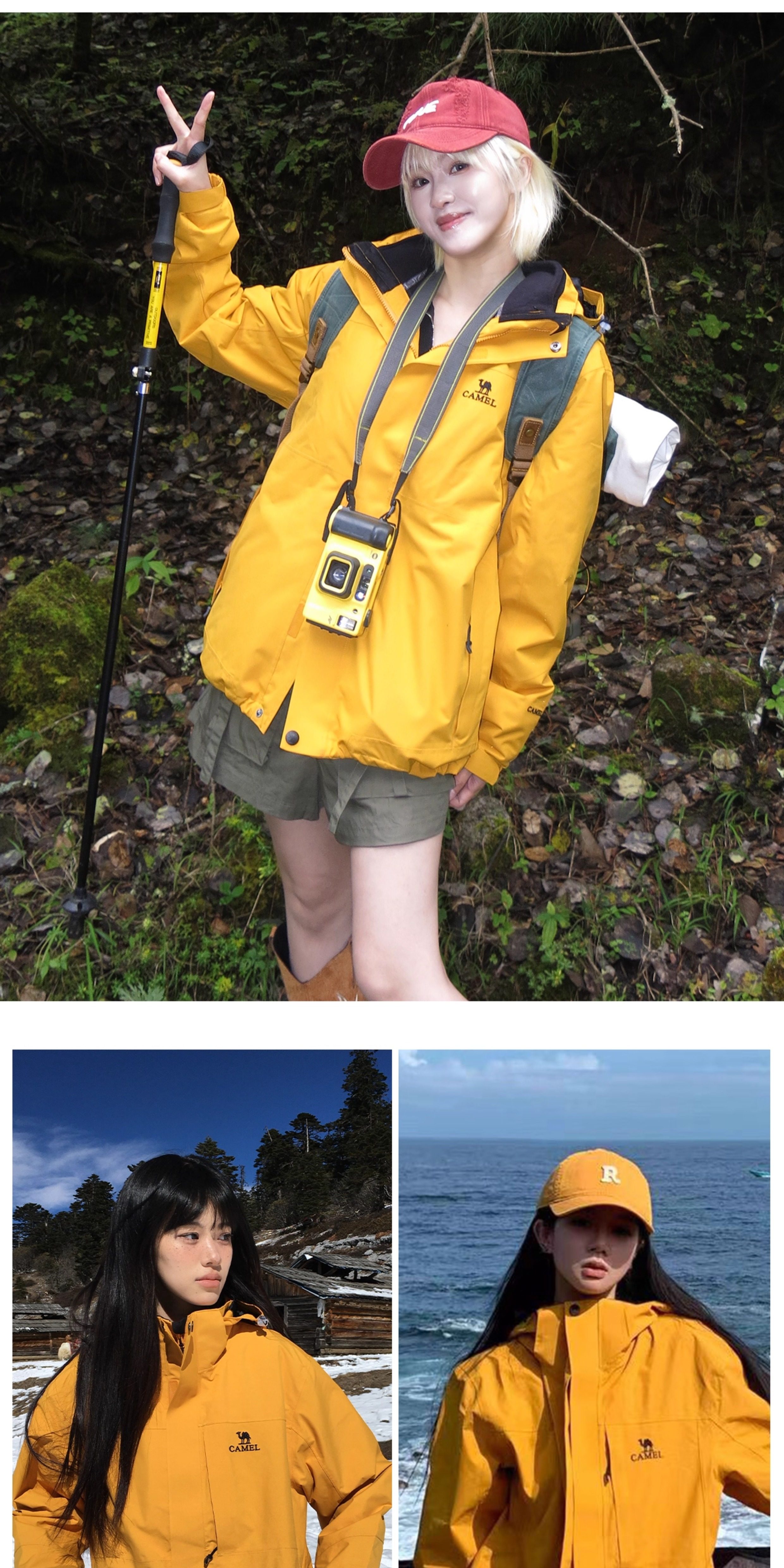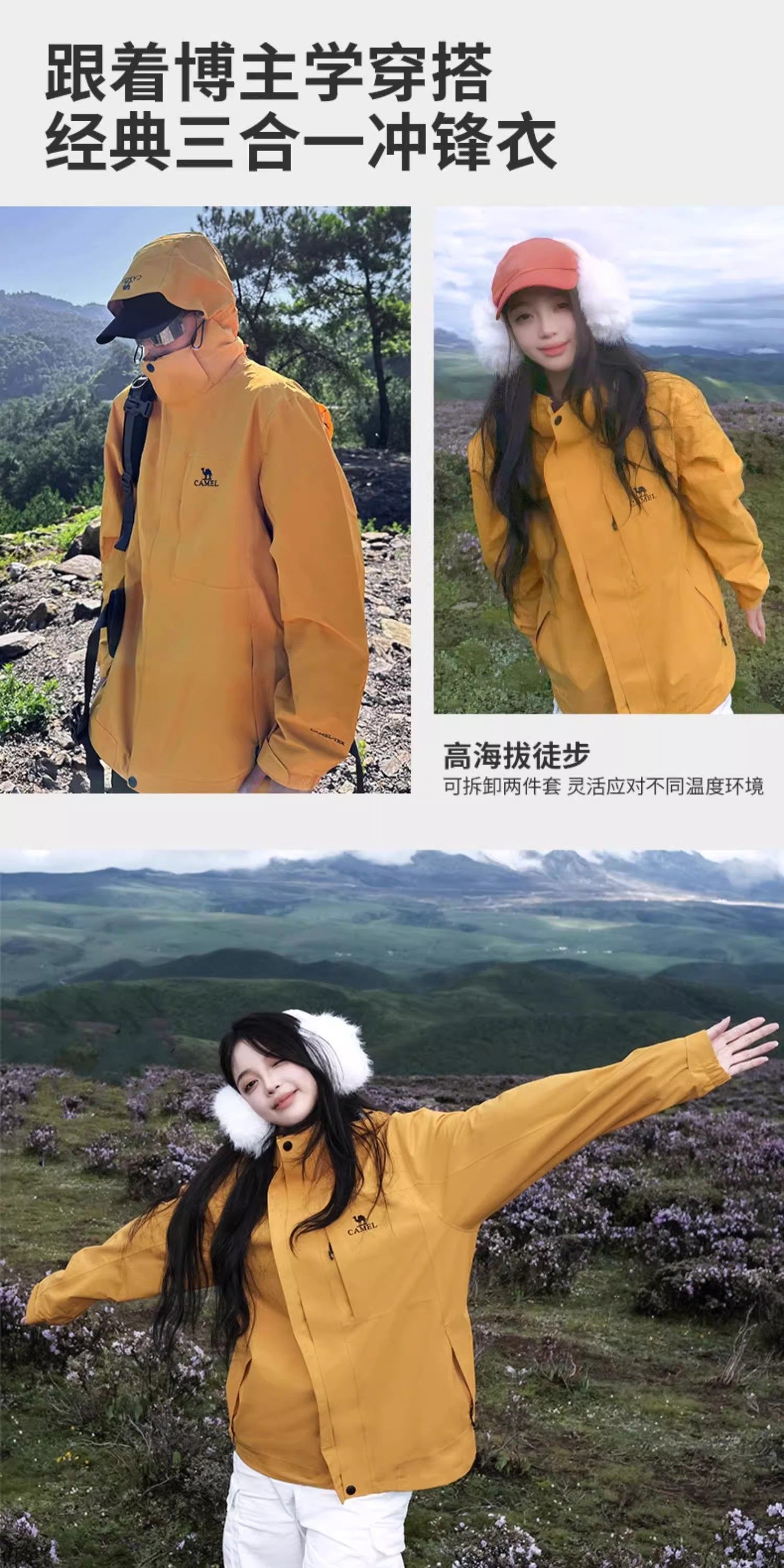 Camel Outdoor Yellow Jacket Women's 3-in-1 Waterproof Windproof Mountaineering Jacket Three-Proof Jacket Men's