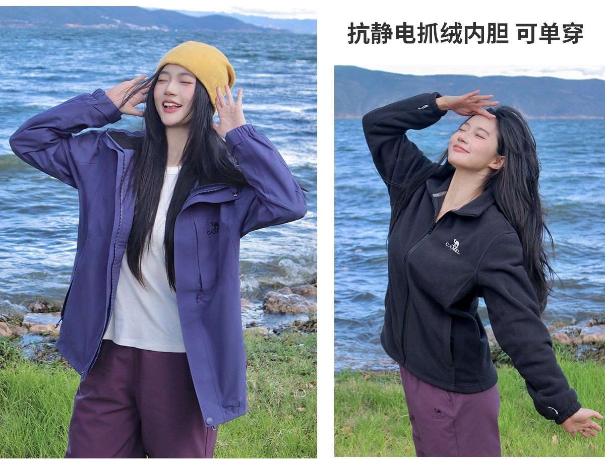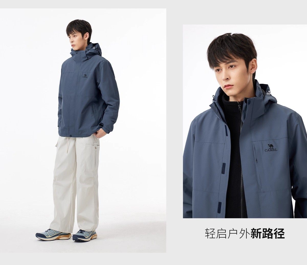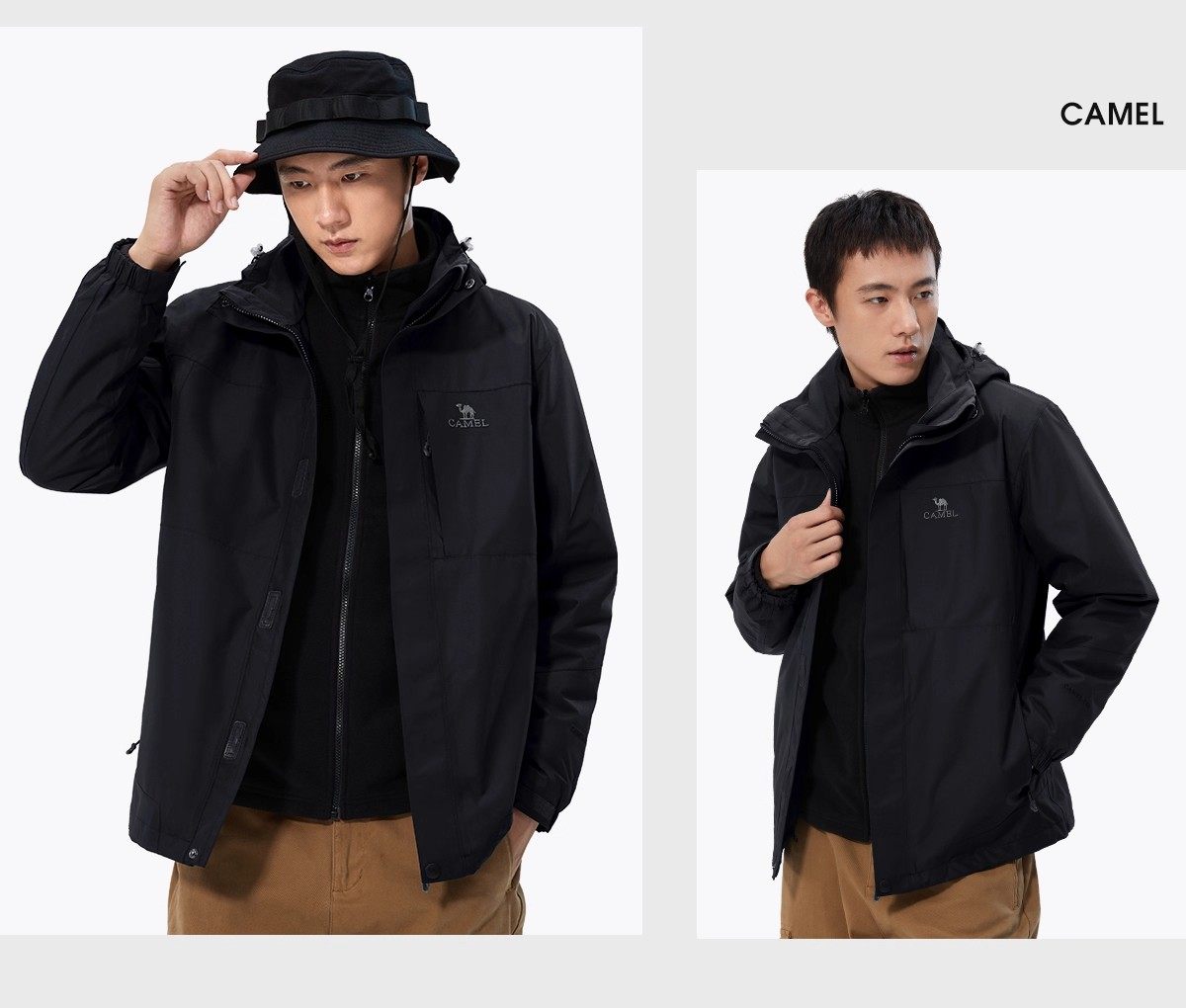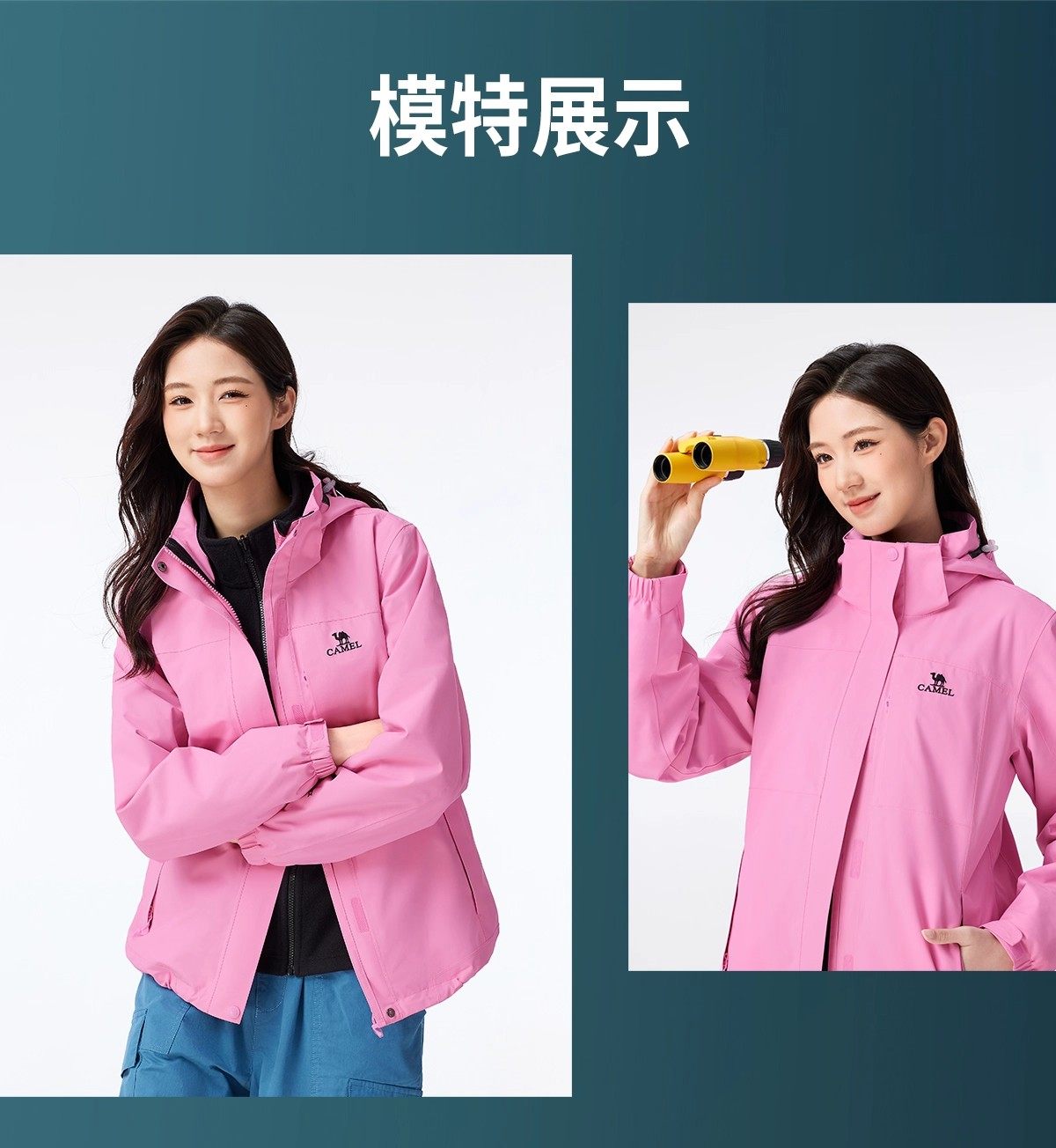 Camel Outdoor Yellow Jacket Women's 3-in-1 Waterproof Windproof Mountaineering Jacket Three-Proof Jacket Men's