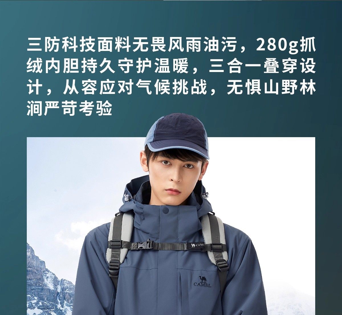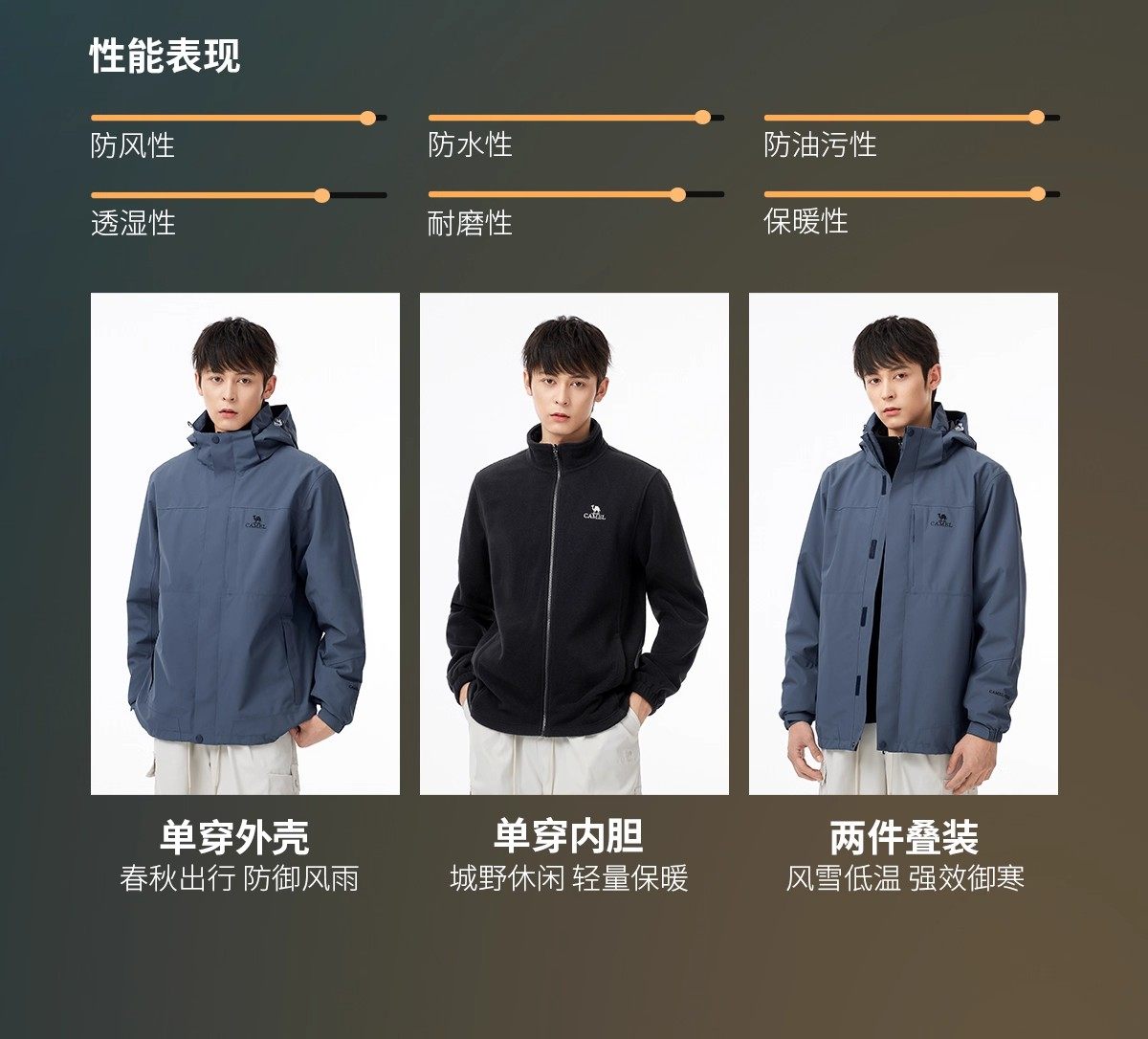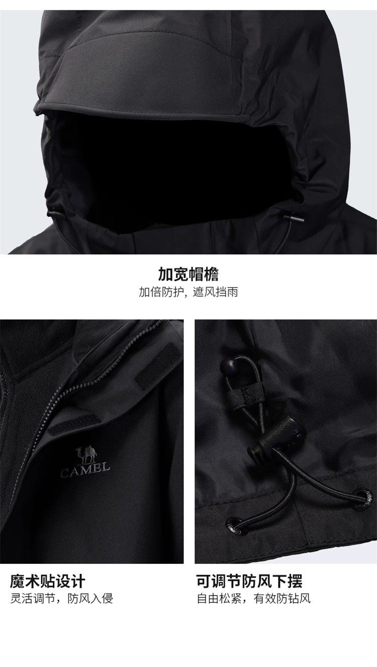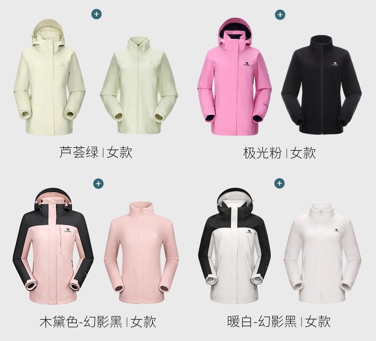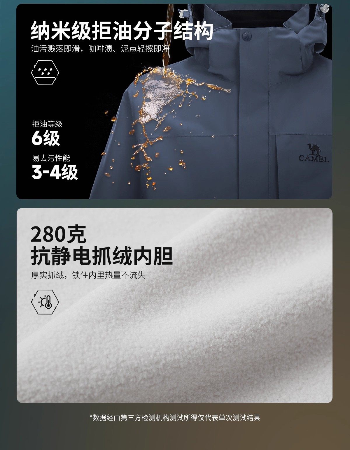 Camel Outdoor Yellow Jacket Women's 3-in-1 Waterproof Windproof Mountaineering Jacket Three-Proof Jacket Men's