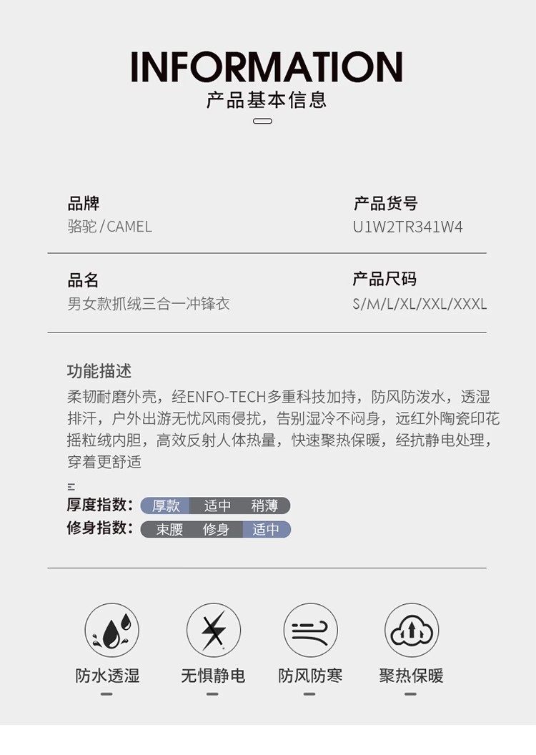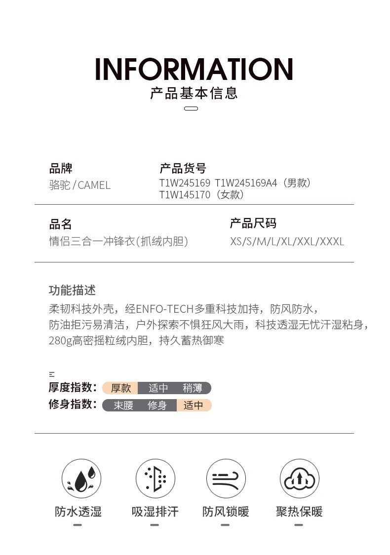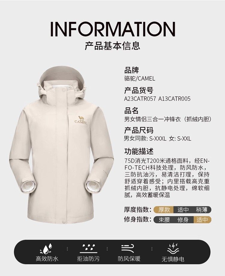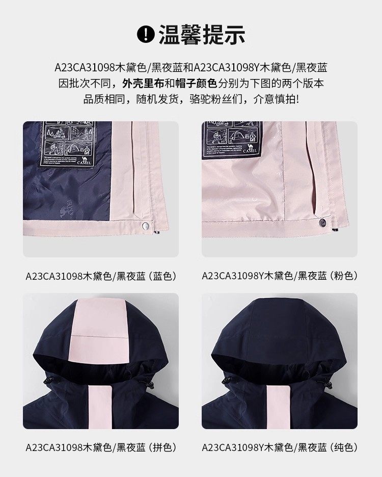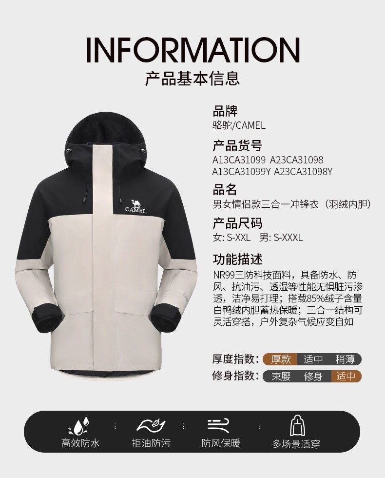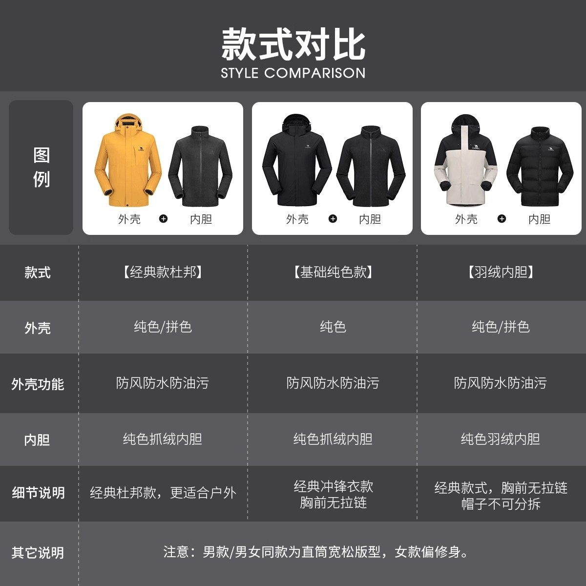 Camel Outdoor Yellow Jacket Women's 3-in-1 Waterproof Windproof Mountaineering Jacket Three-Proof Jacket Men's