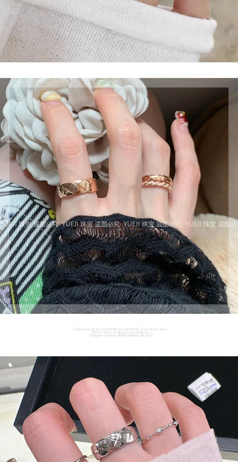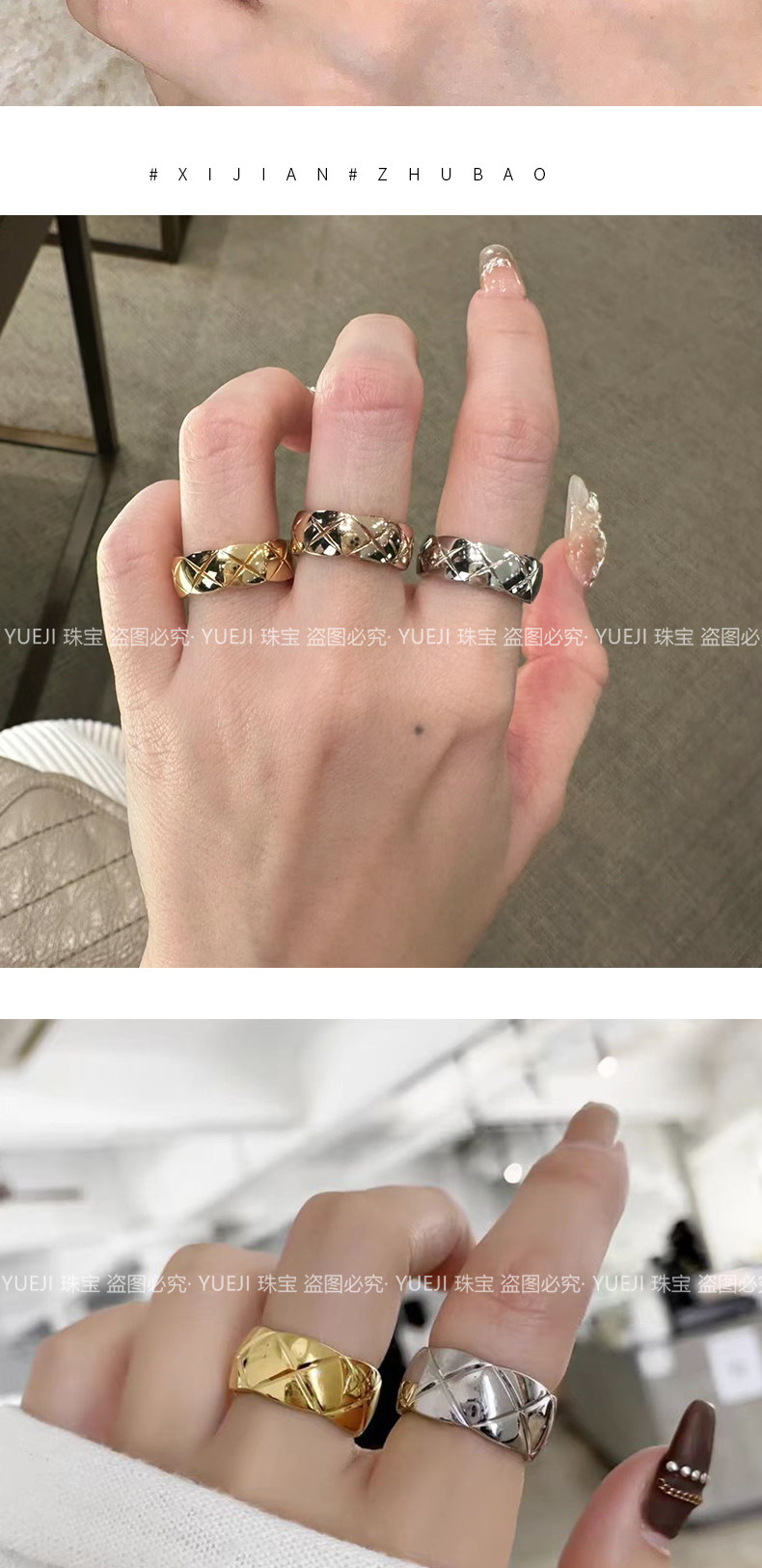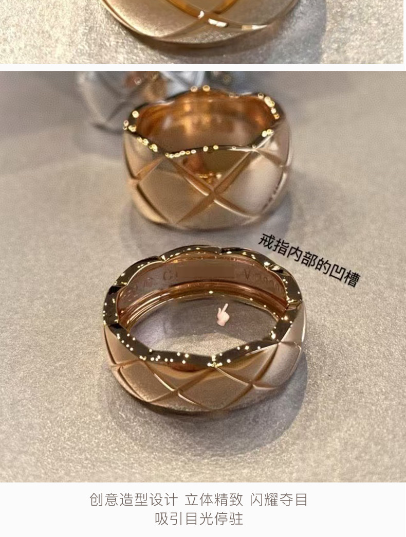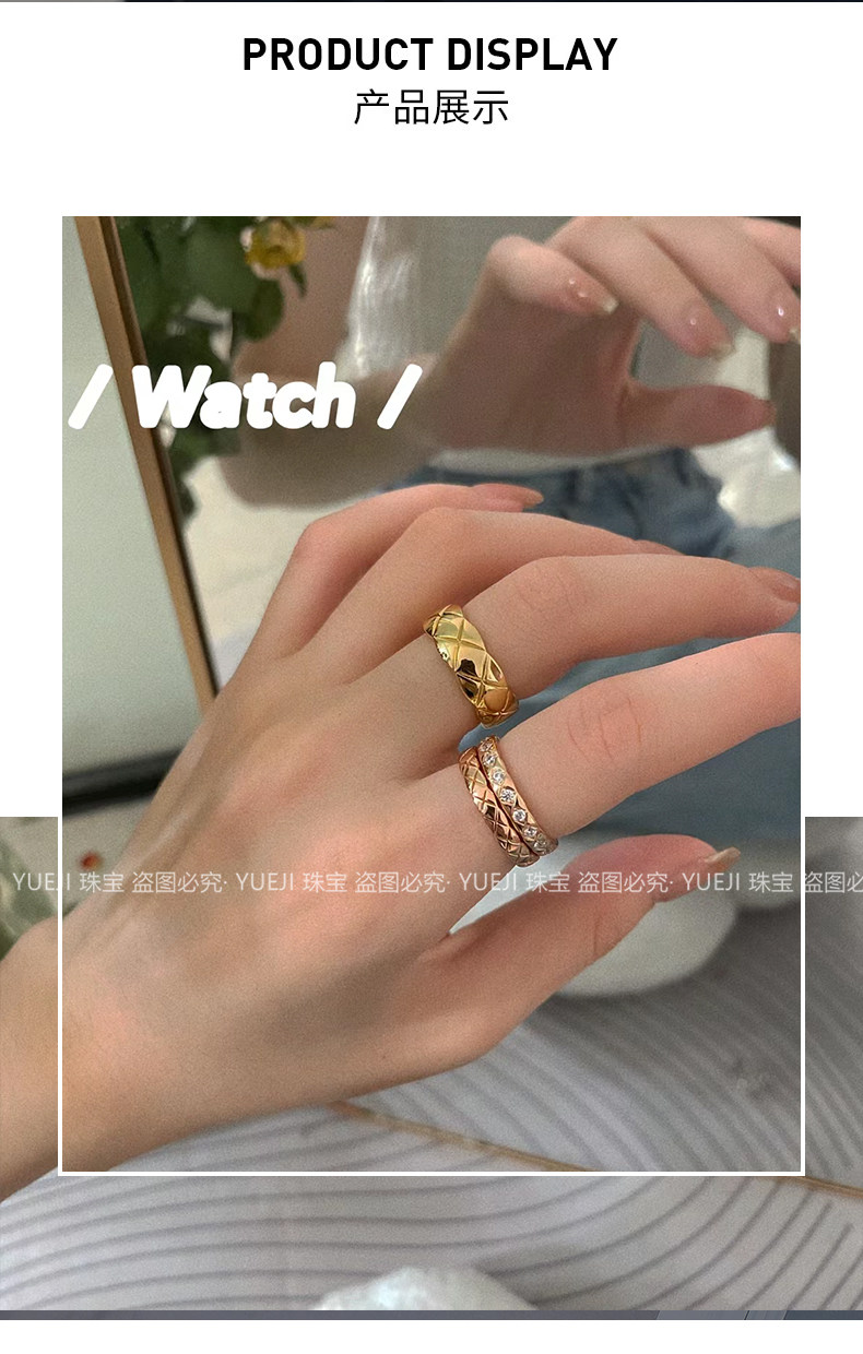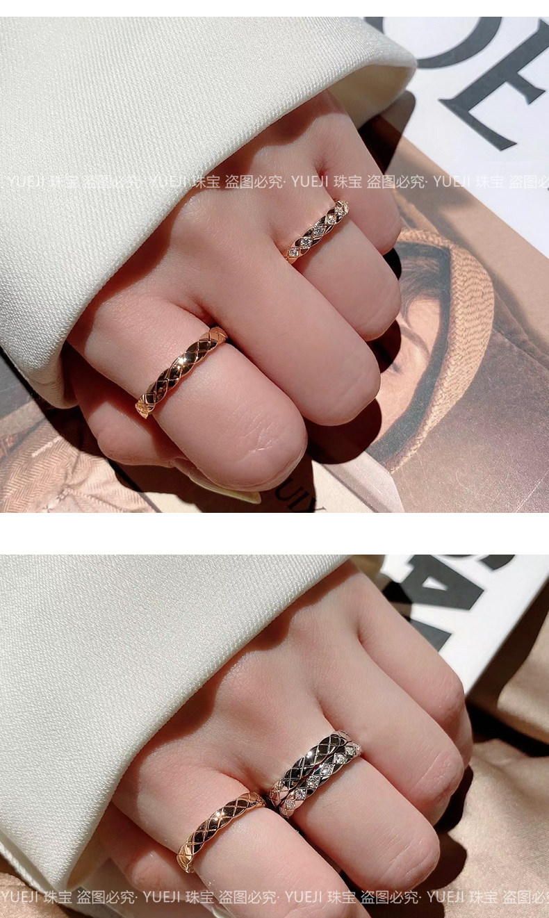 Coco Diamond Pattern Ring Classic Sterling Silver Gold-Plated Diamond-Studded Stackable Wide and Narrow Versions Chanel-Inspired Niche Couple Rings