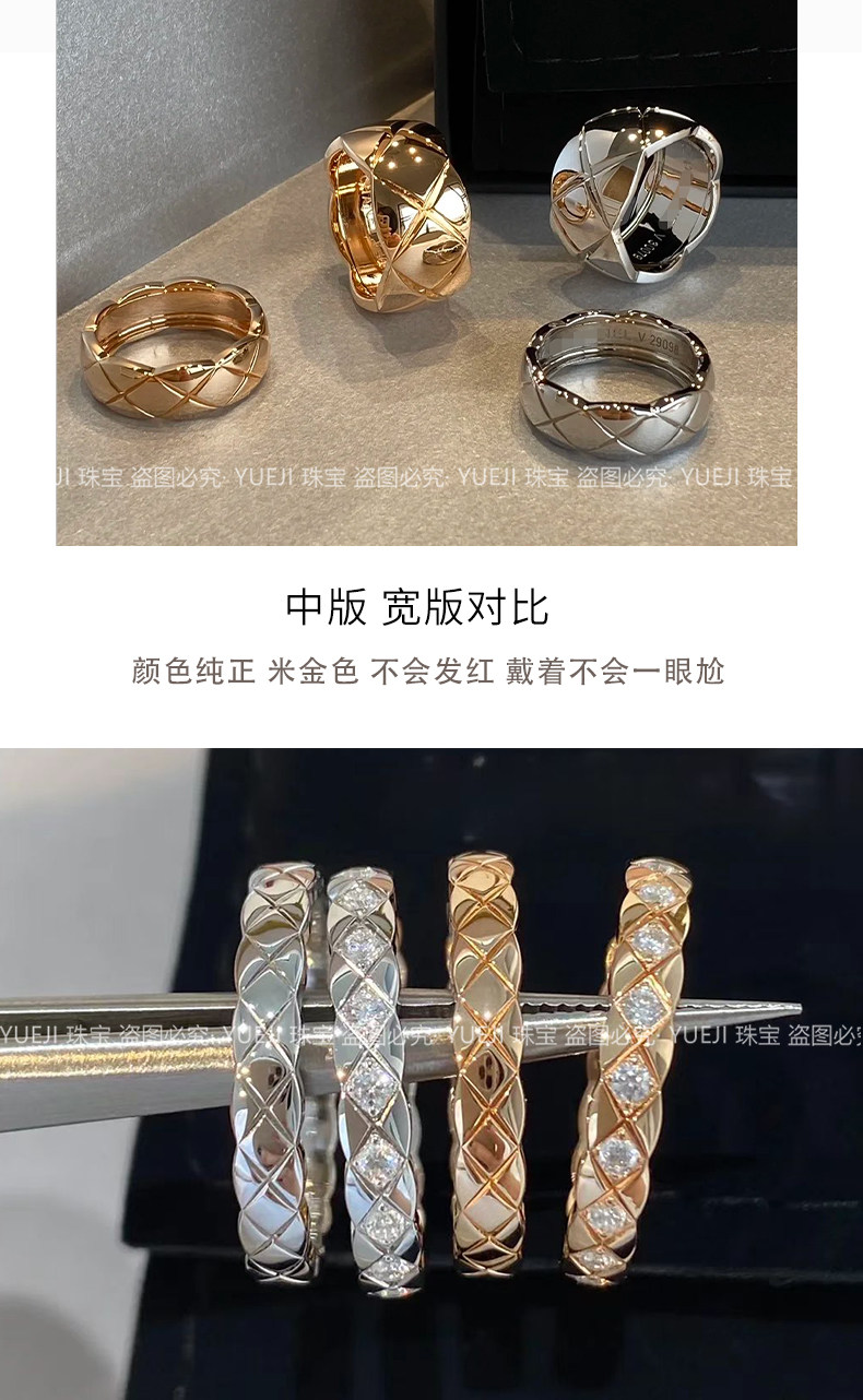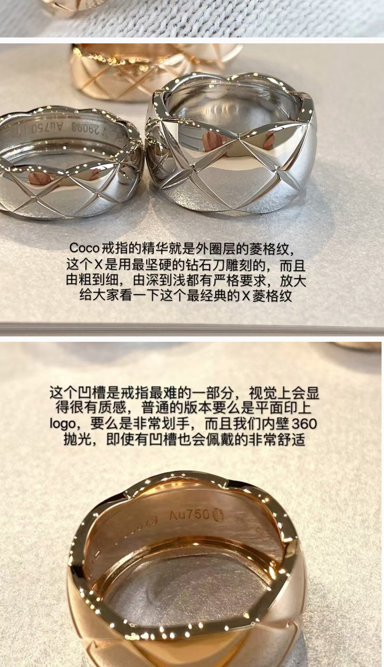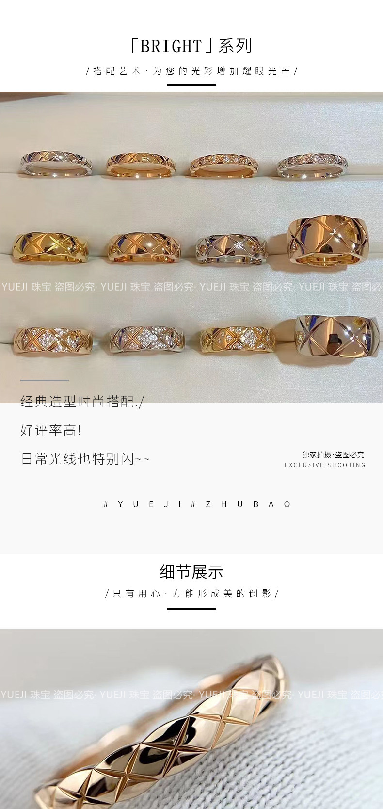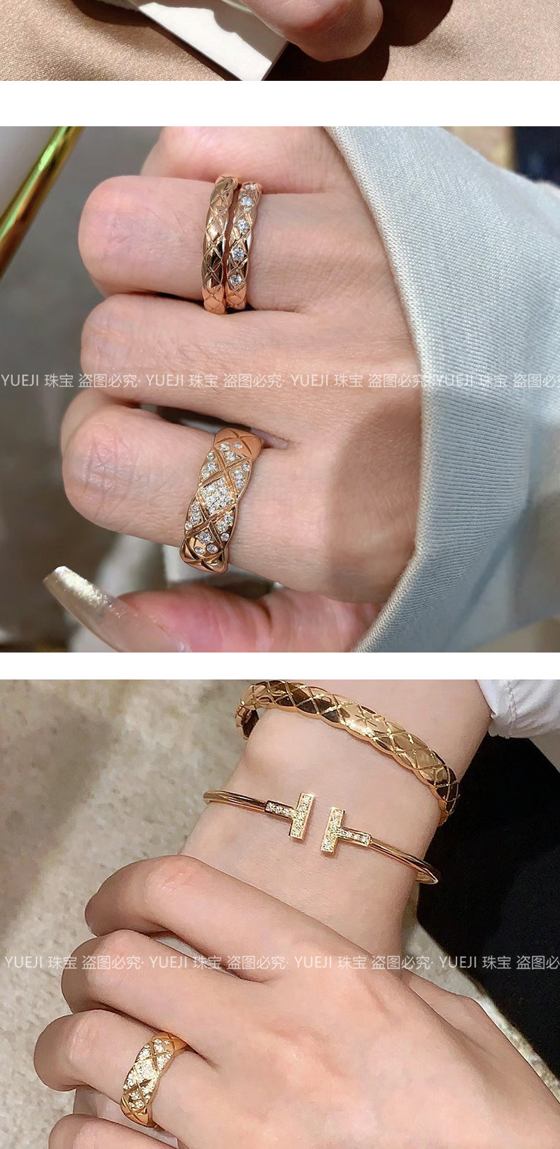 Coco Diamond Pattern Ring Classic Sterling Silver Gold-Plated Diamond-Studded Stackable Wide and Narrow Versions Chanel-Inspired Niche Couple Rings