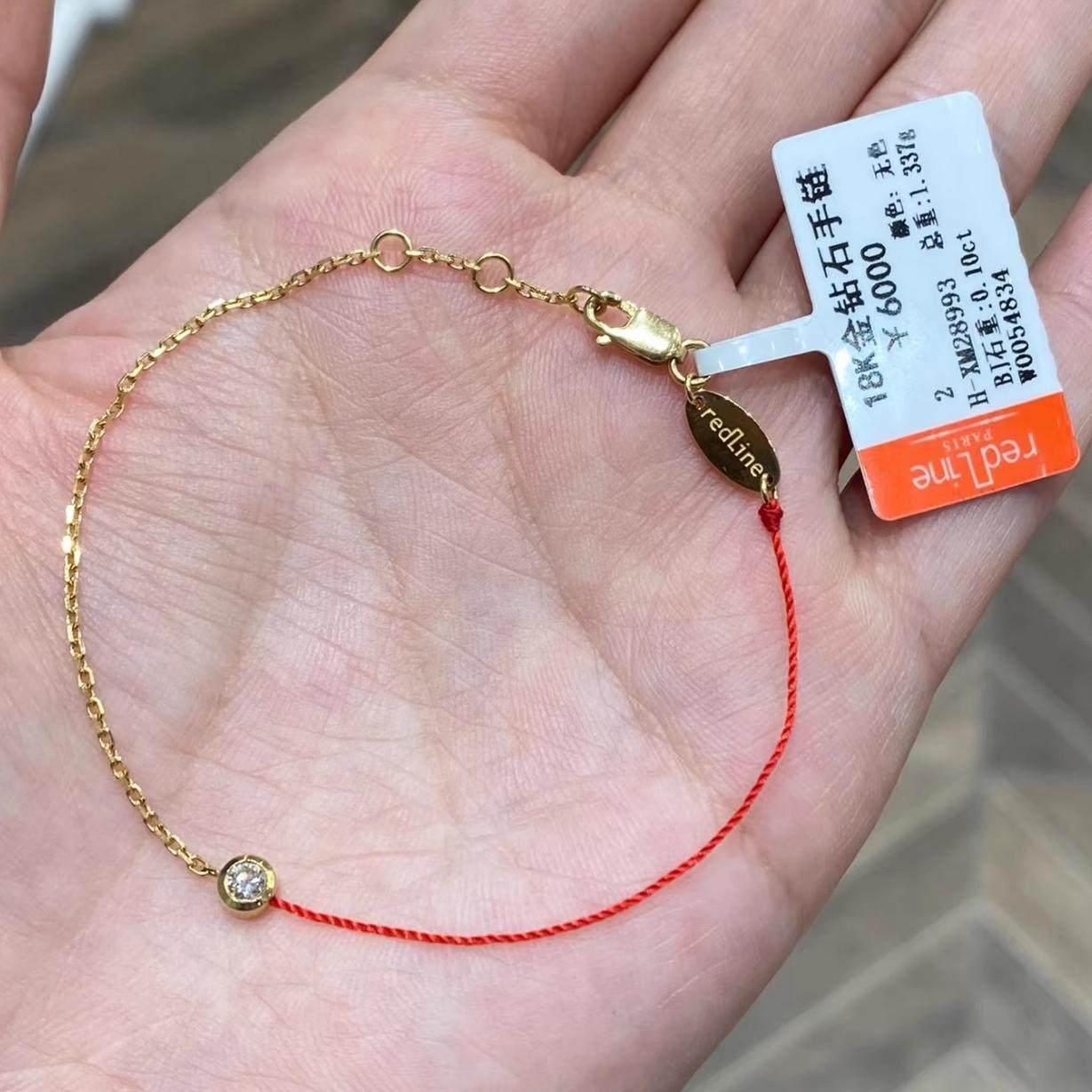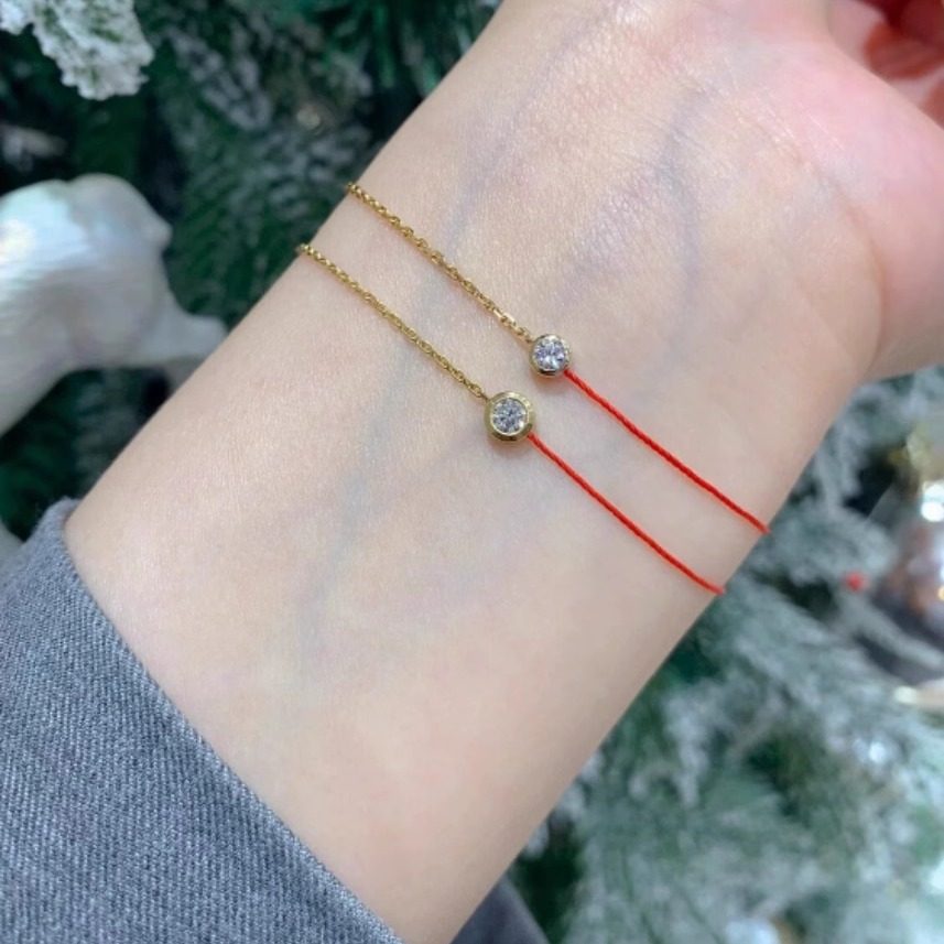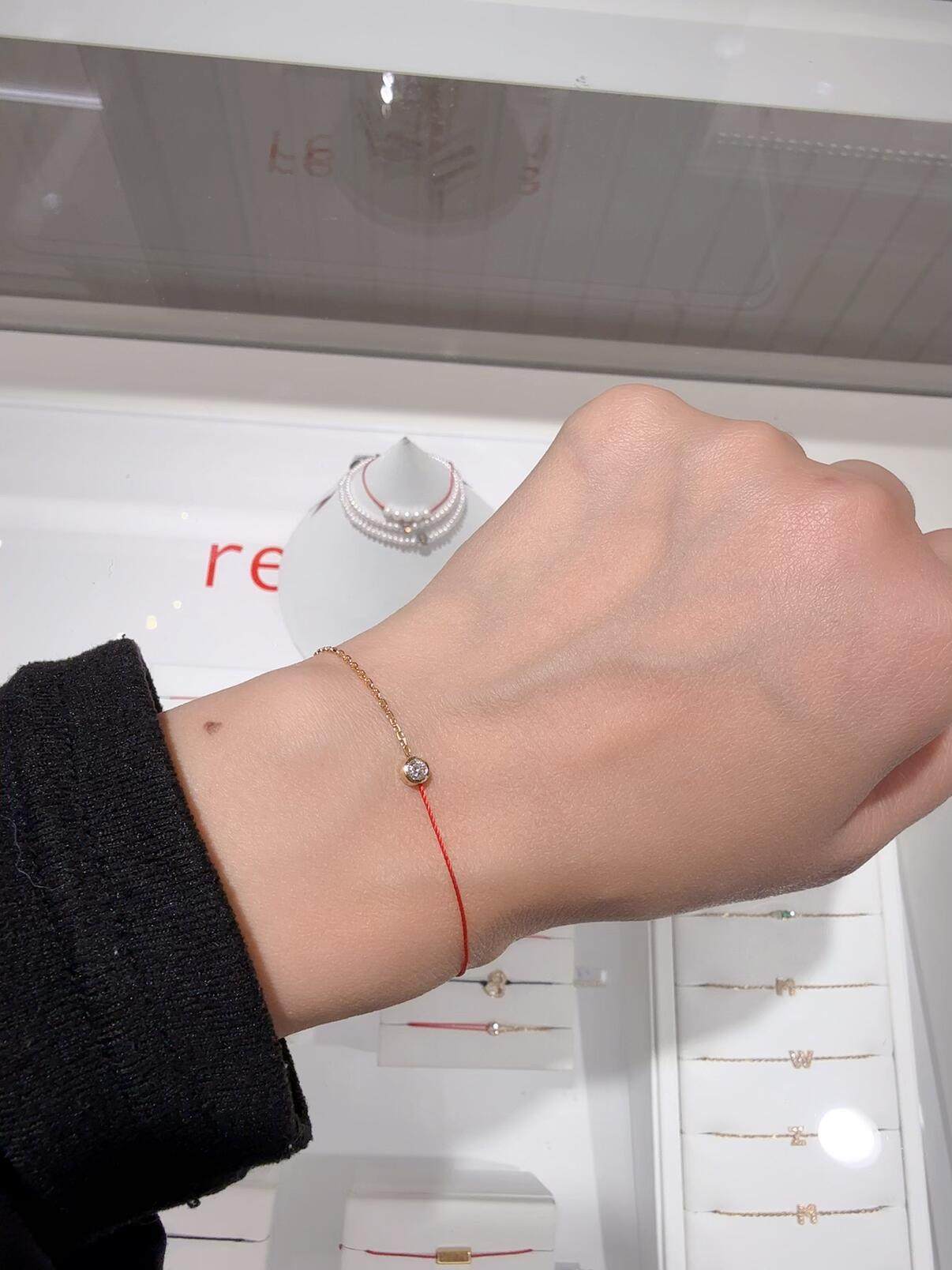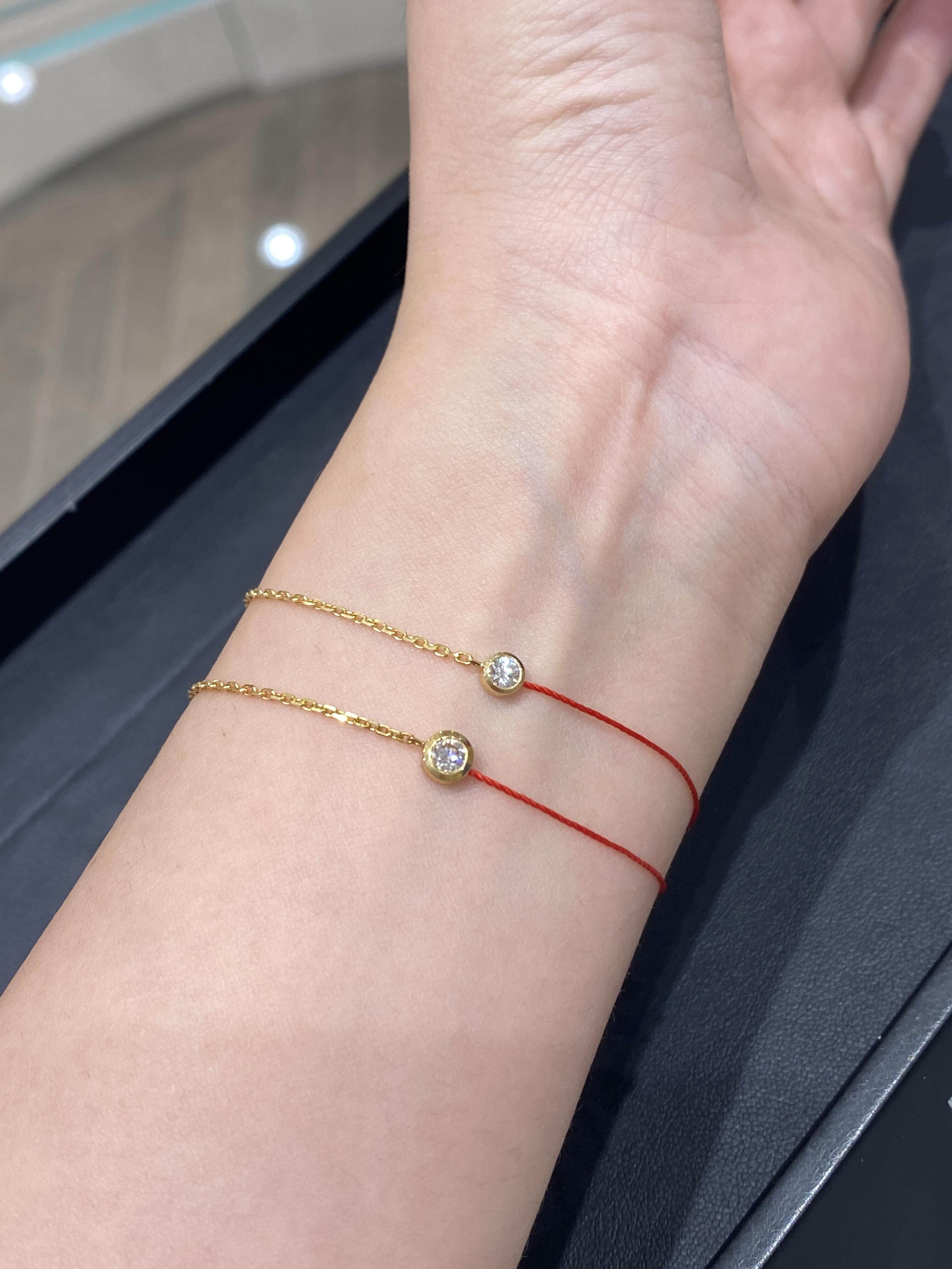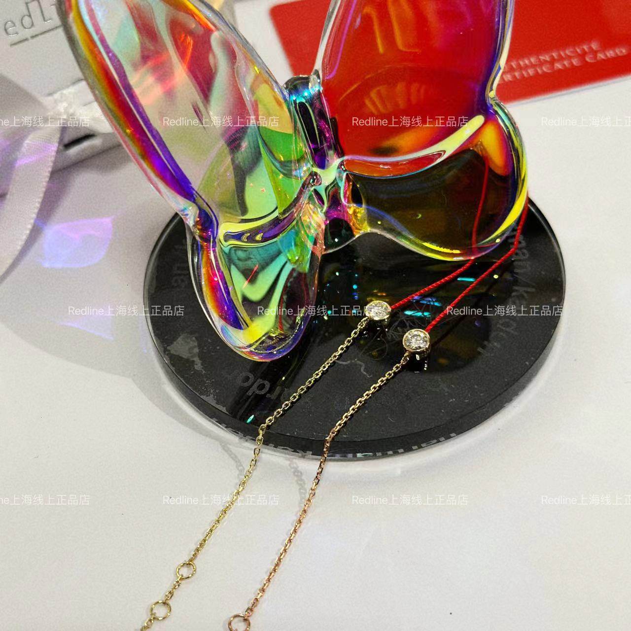 French Brand Redline Small Red Rope Pure Round Diamond 18K Gold Bracelet 10 Points 20 Points Diamond Birth Year Bracelet