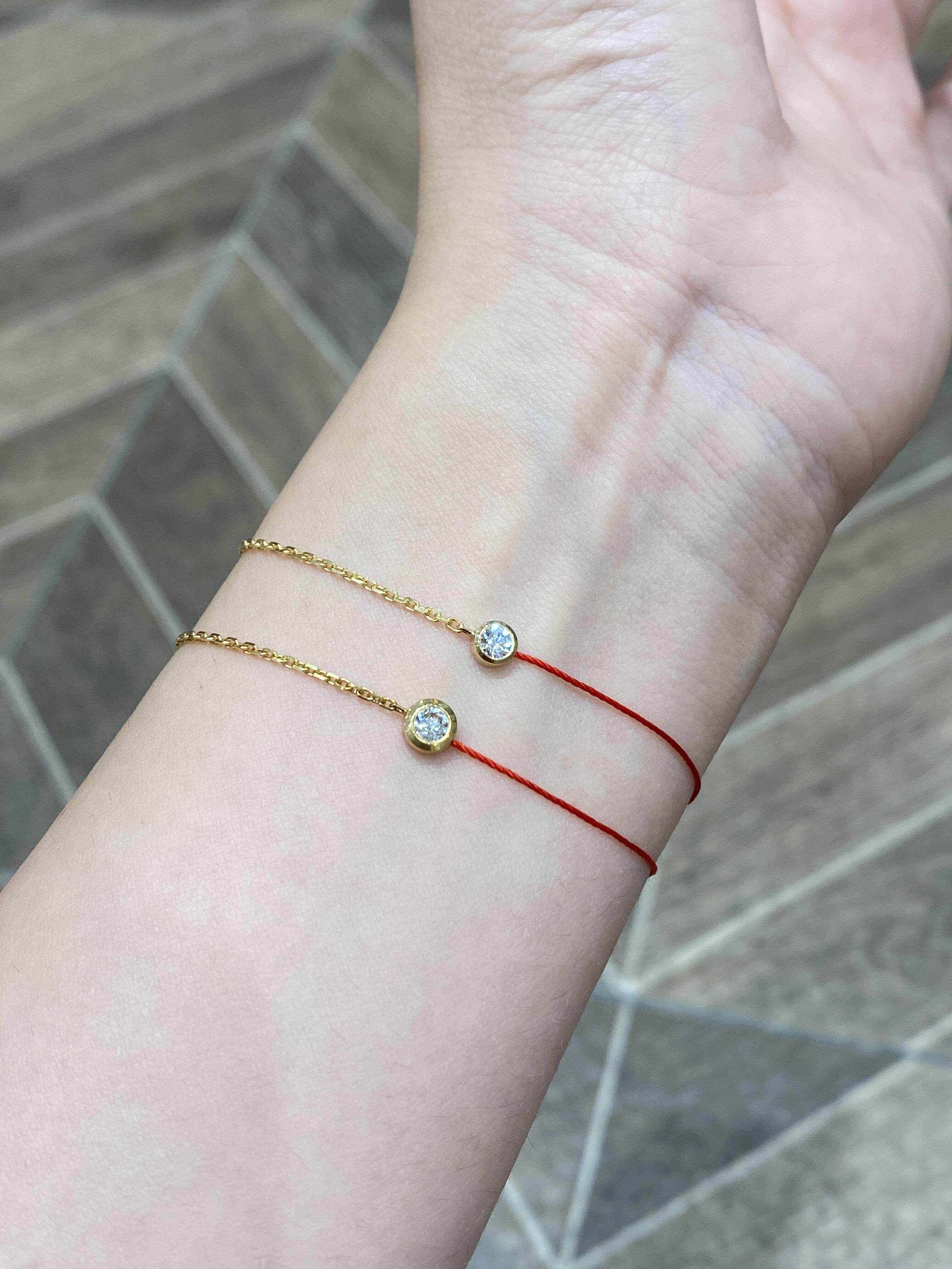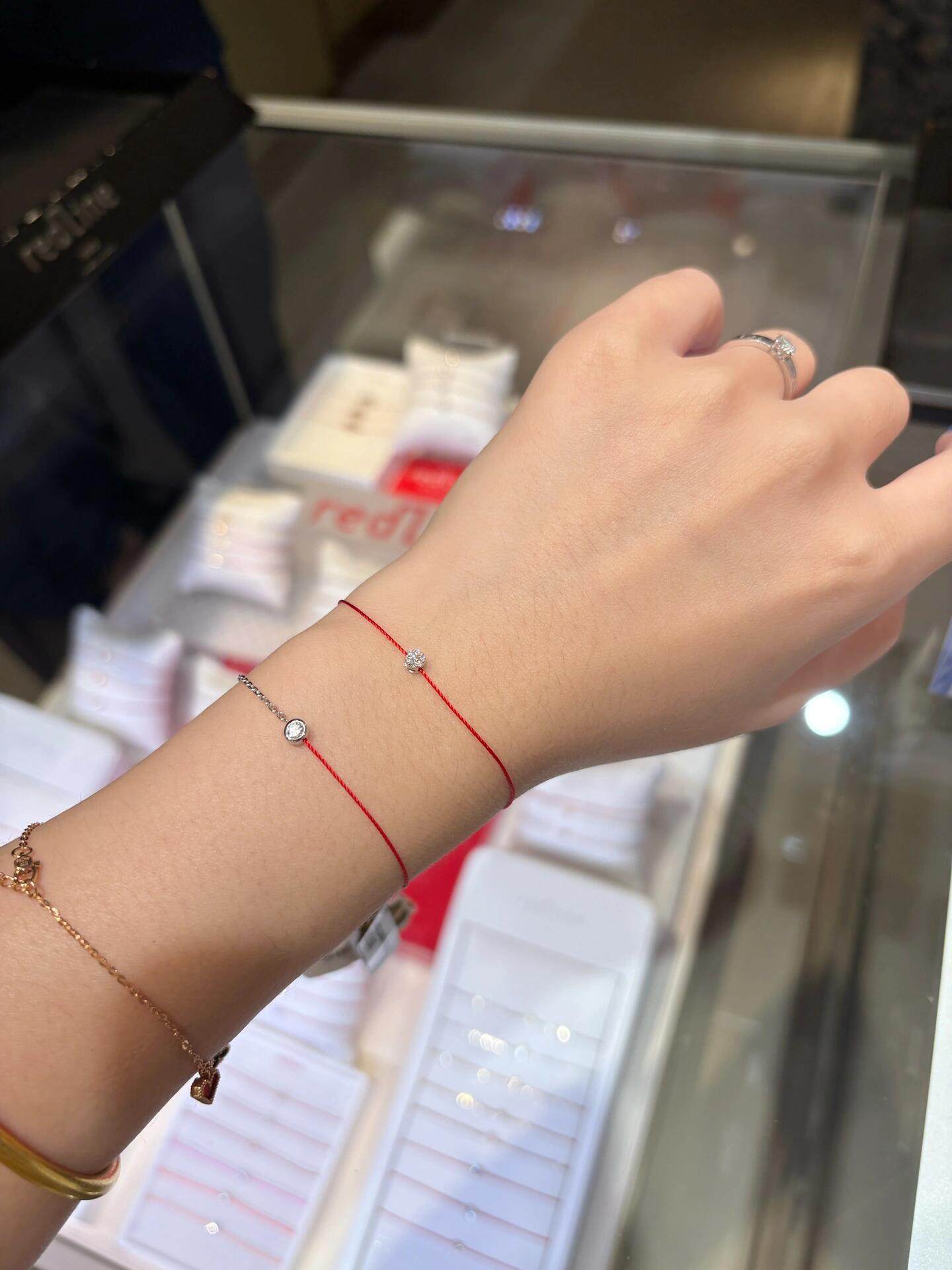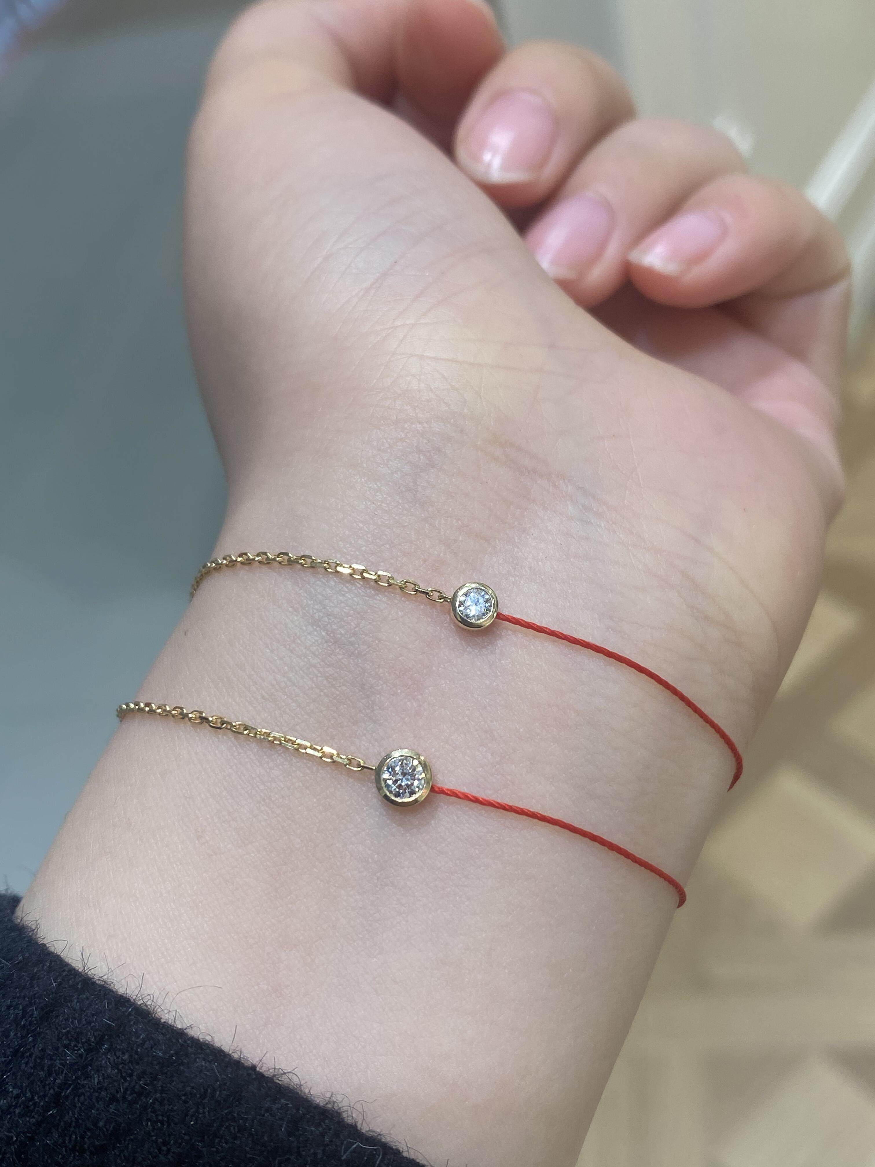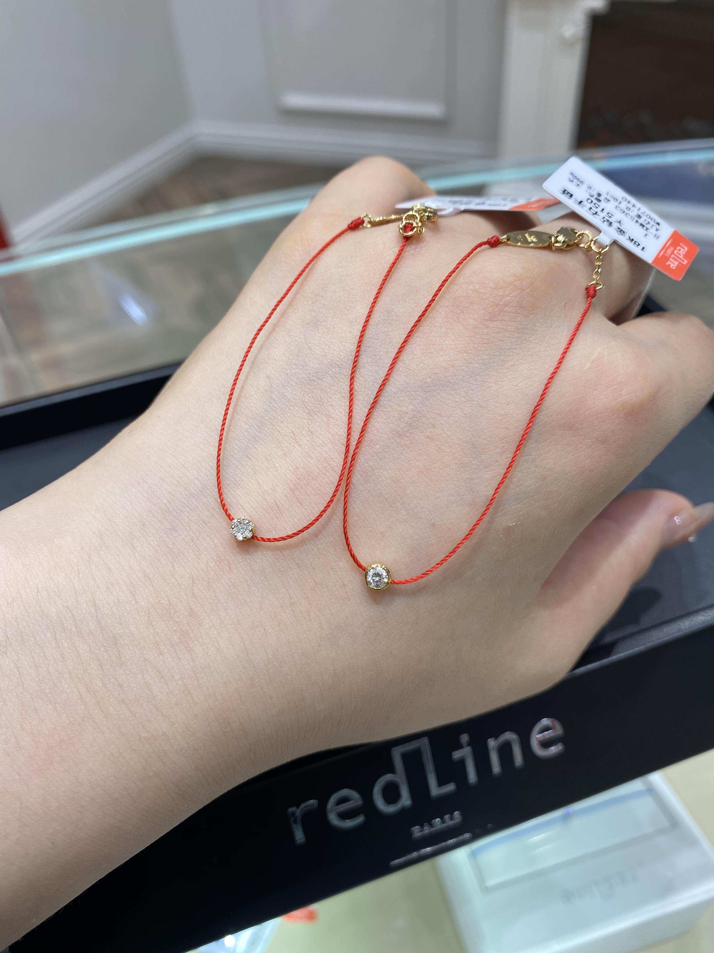 French Brand Redline Small Red Rope Pure Round Diamond 18K Gold Bracelet 10 Points 20 Points Diamond Birth Year Bracelet