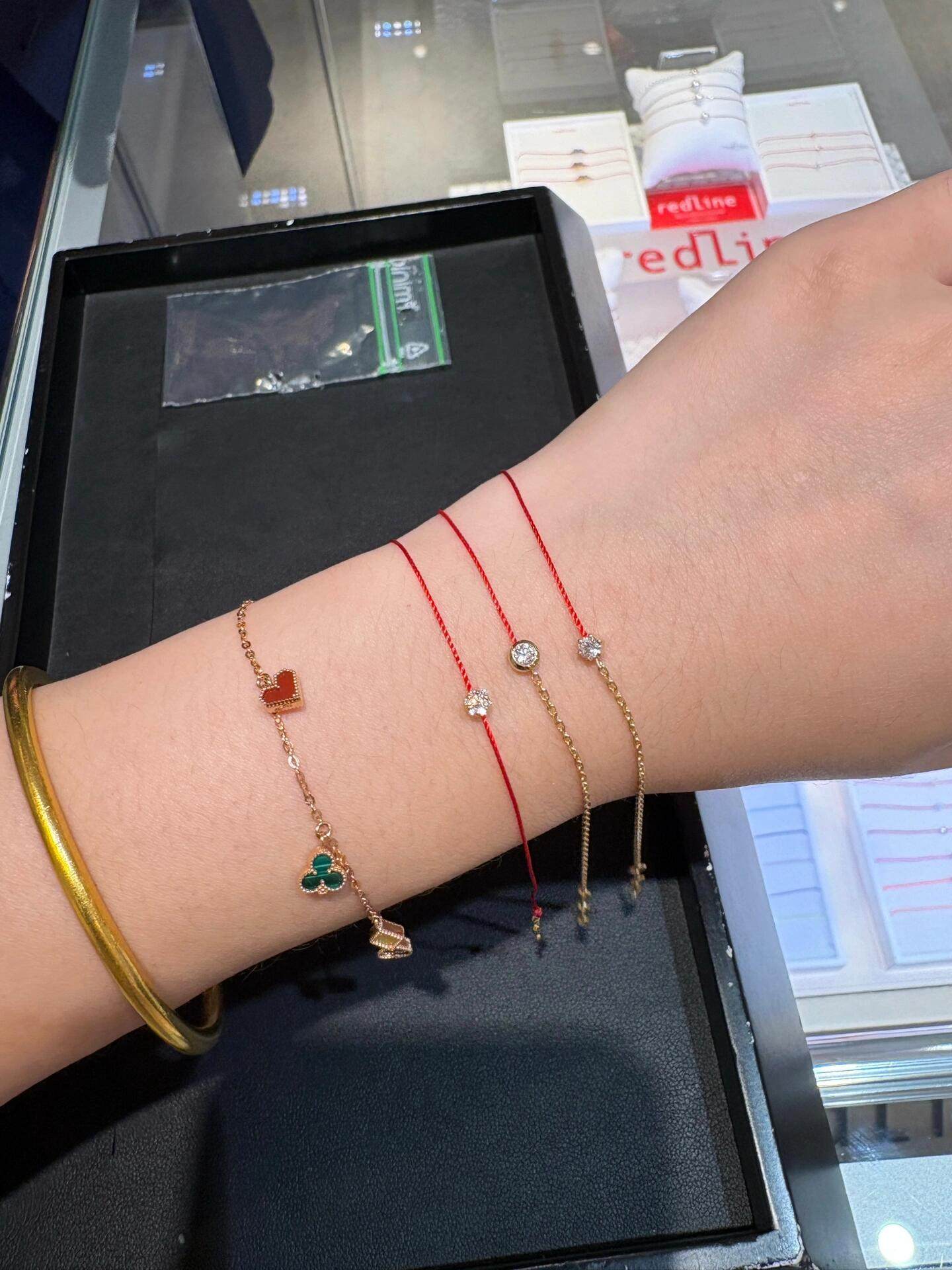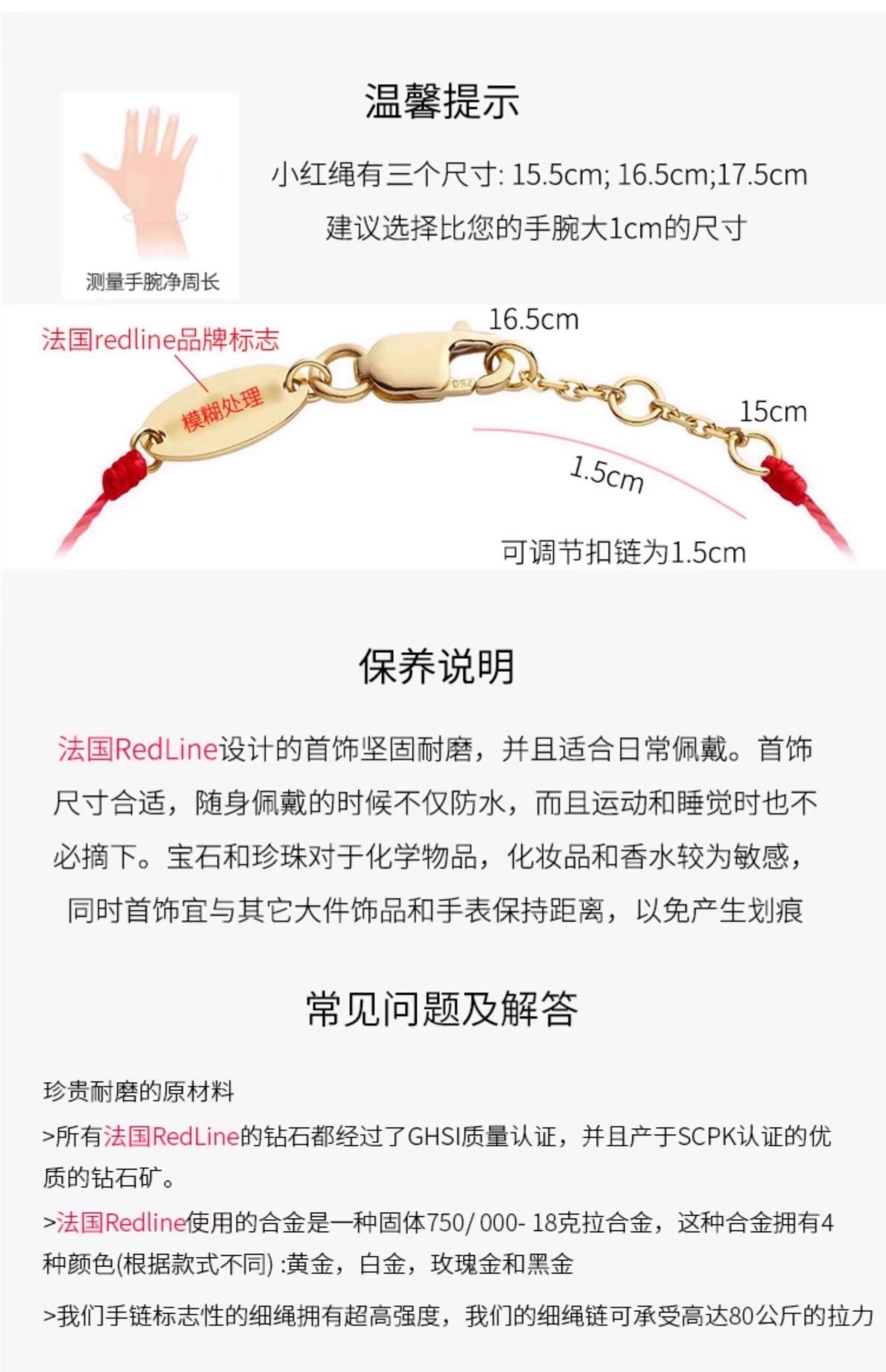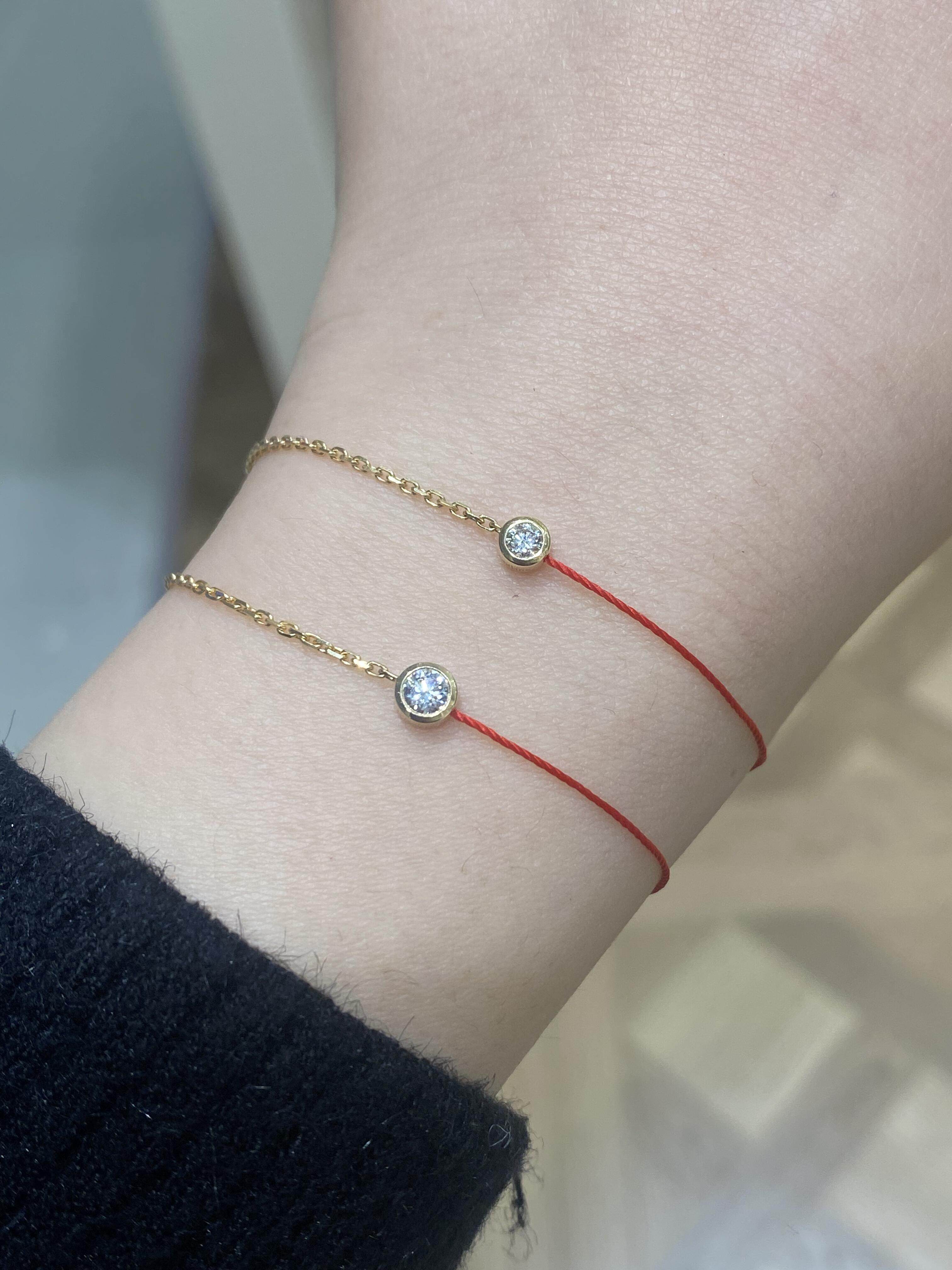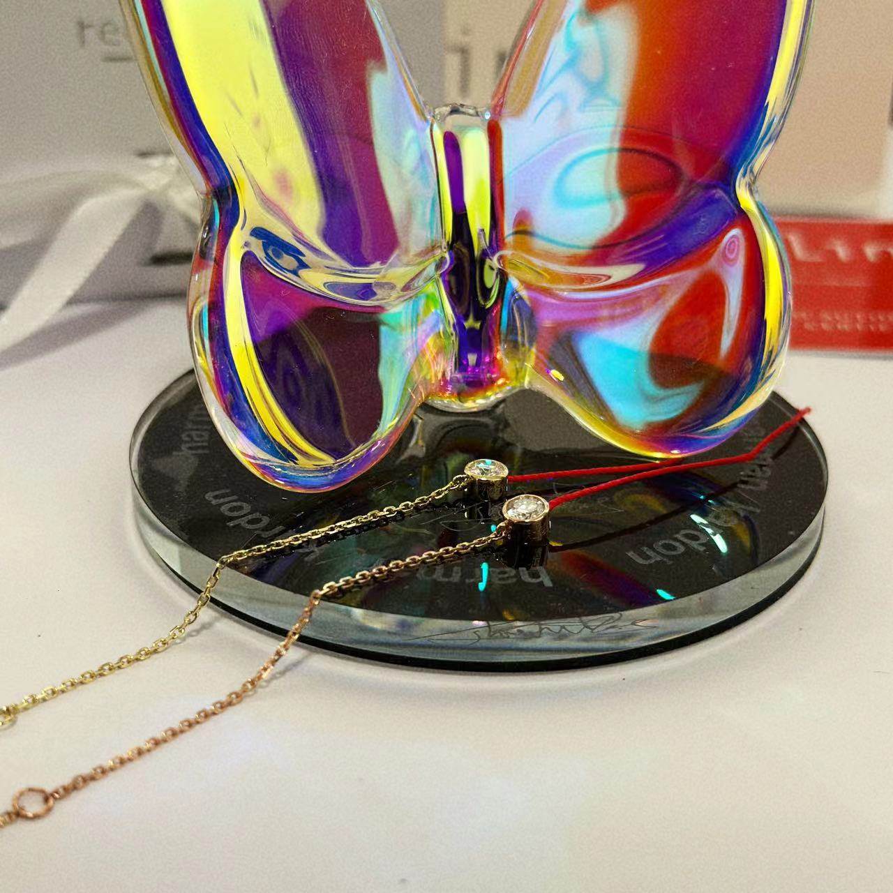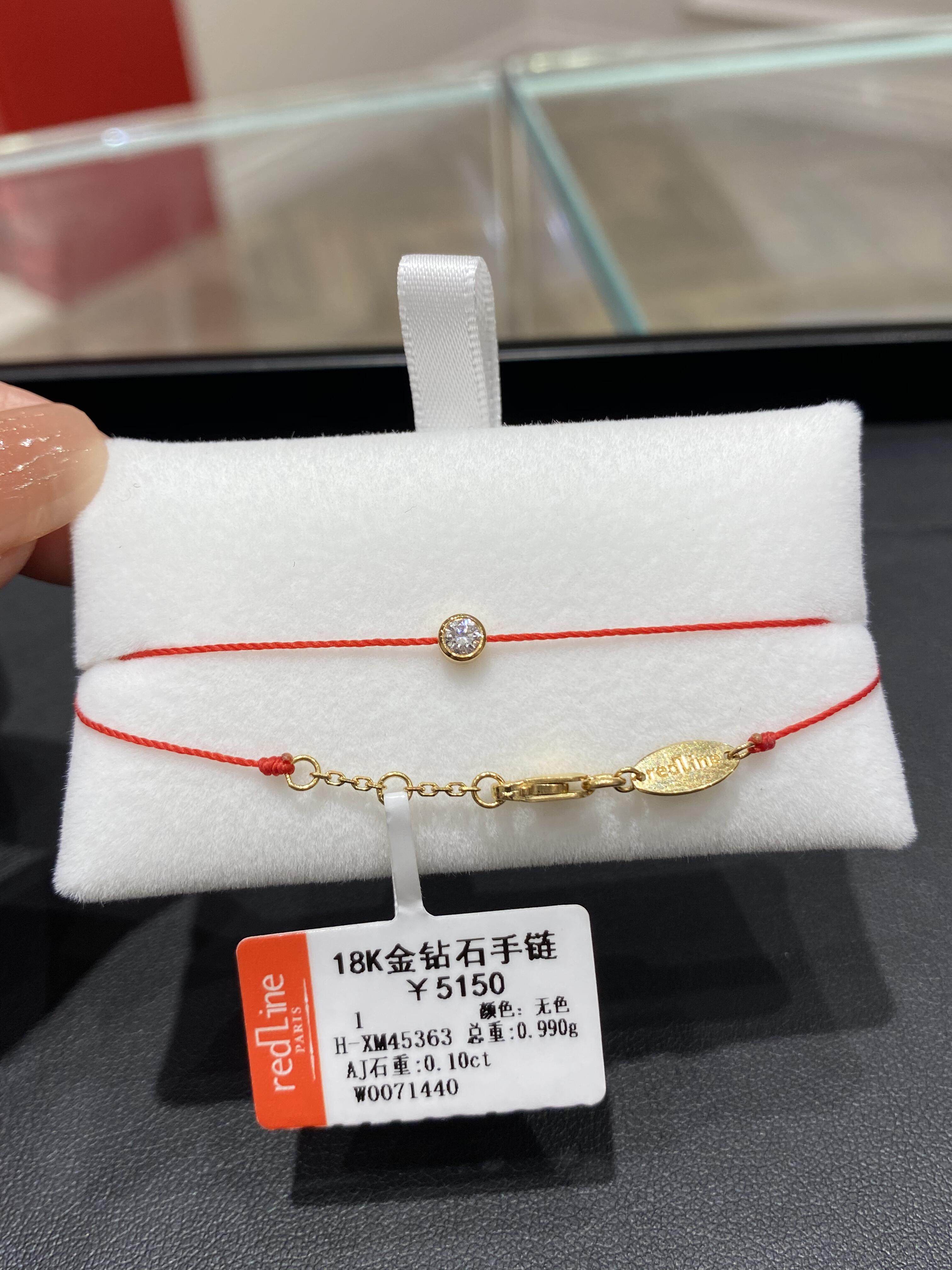 French Brand Redline Small Red Rope Pure Round Diamond 18K Gold Bracelet 10 Points 20 Points Diamond Birth Year Bracelet