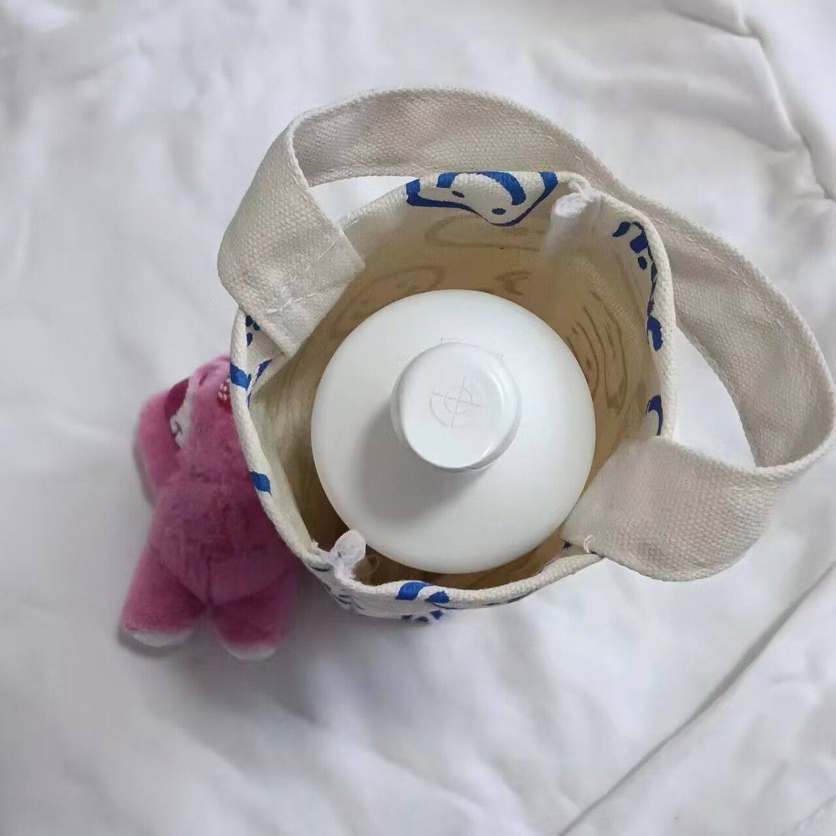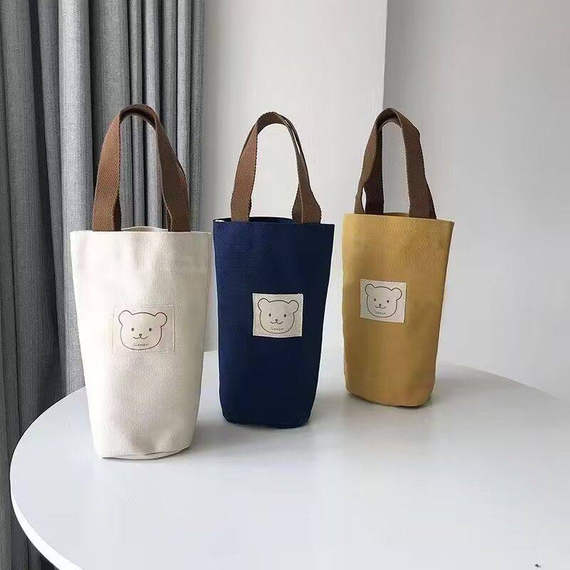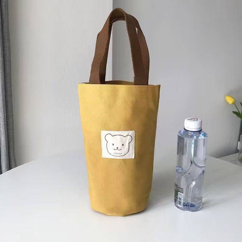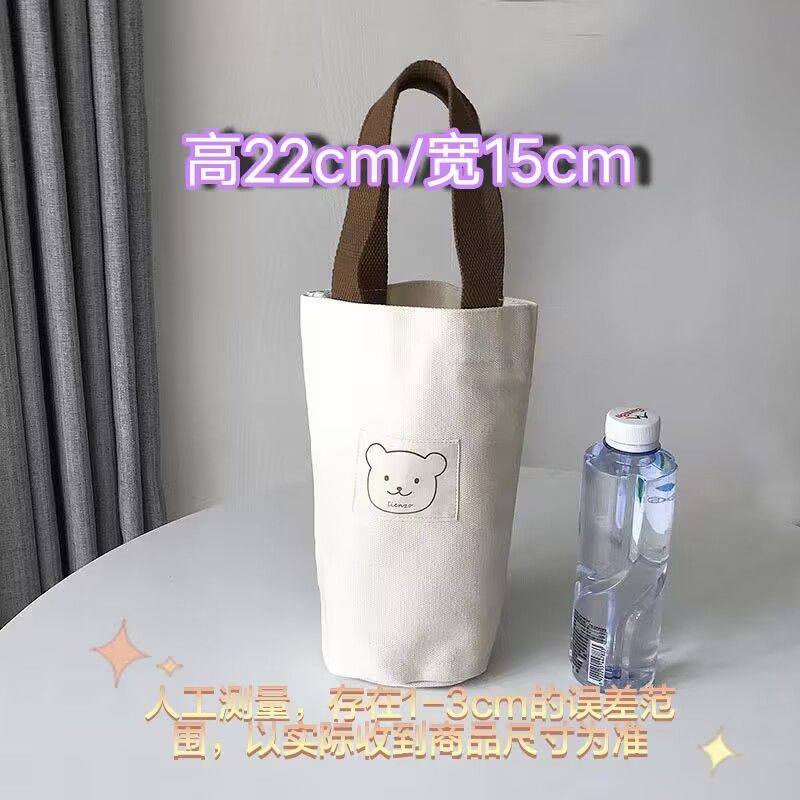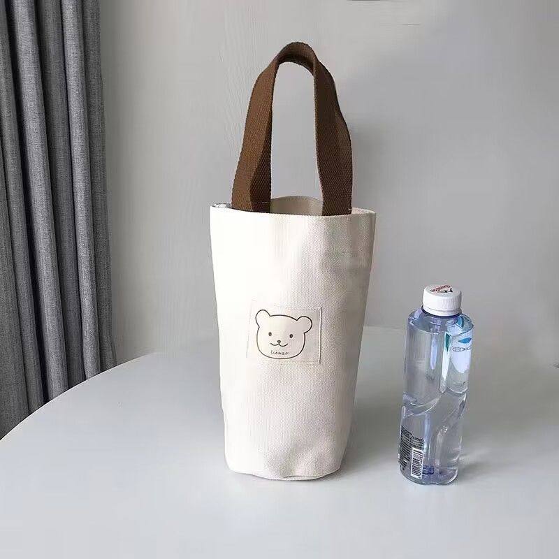 Cartoon Printed Canvas Bag, Casual Large-Capacity Handbag, Children's Cute Water Bottle Bag, Hand-Held Water Bottle Canvas Bag