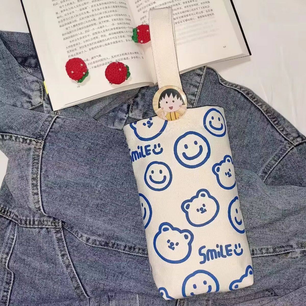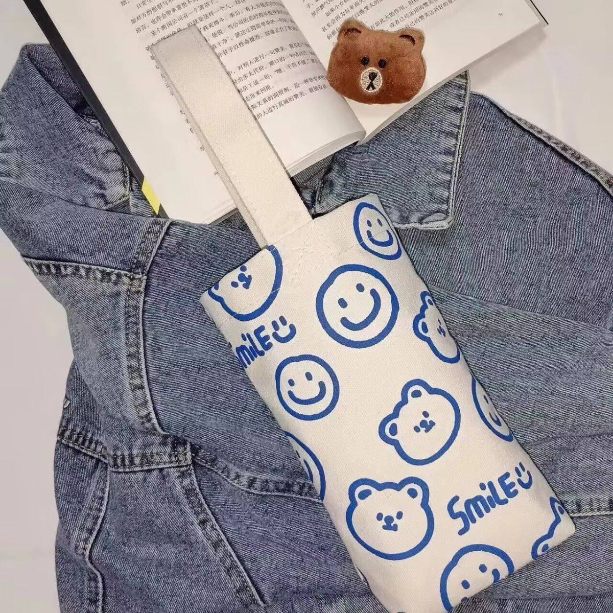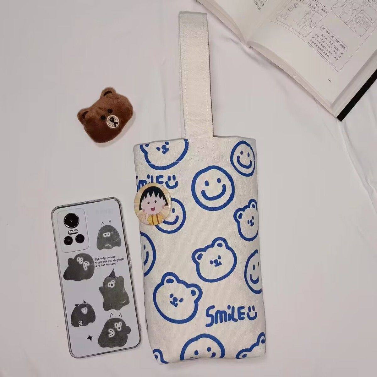 Cartoon Printed Canvas Bag, Casual Large-Capacity Handbag, Children's Cute Water Bottle Bag, Hand-Held Water Bottle Canvas Bag