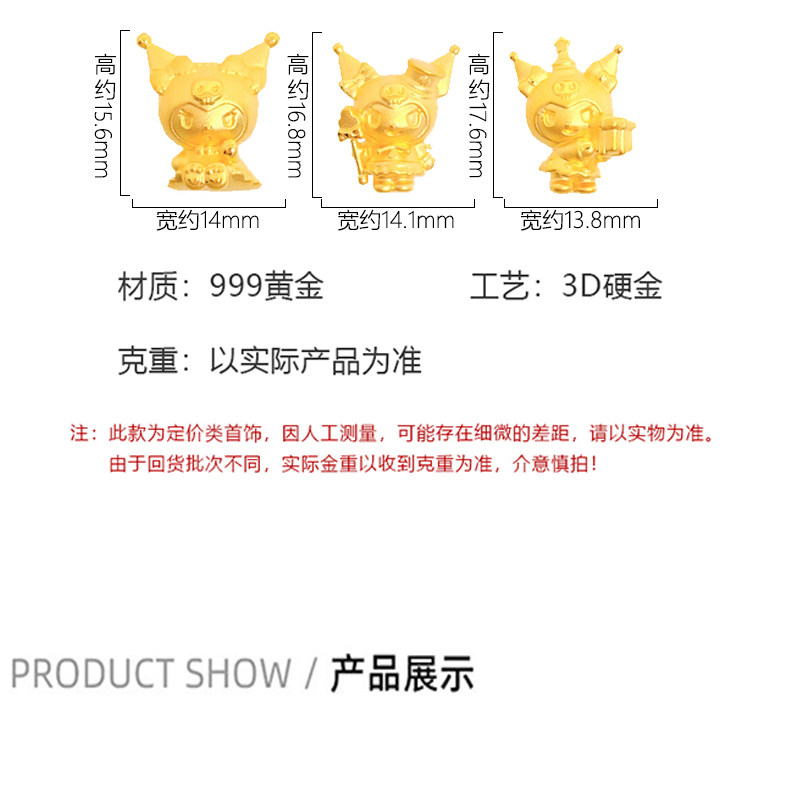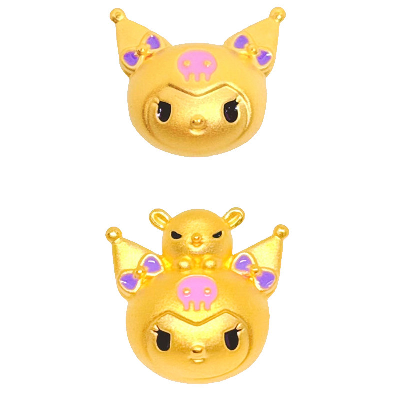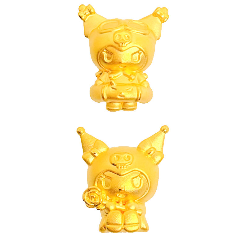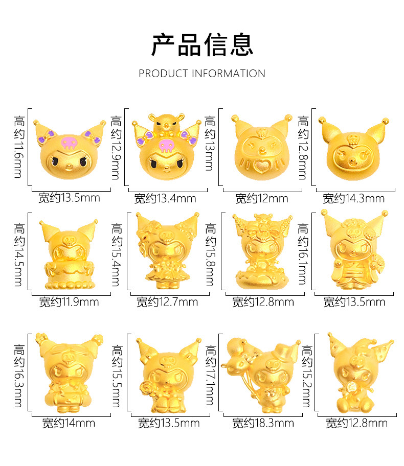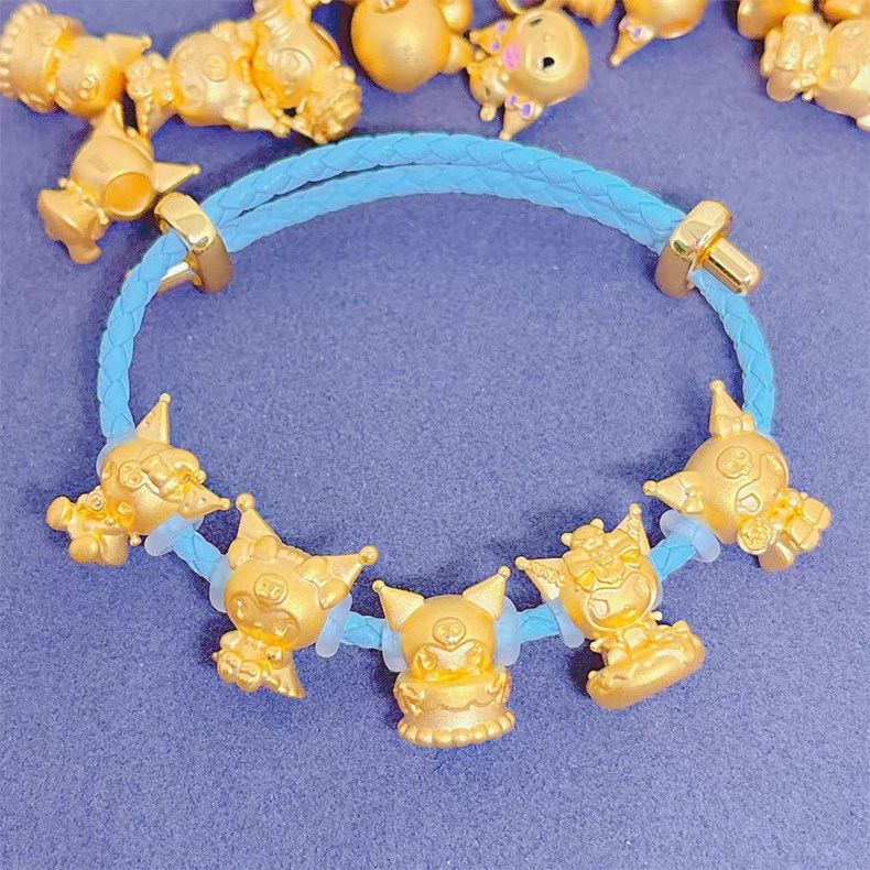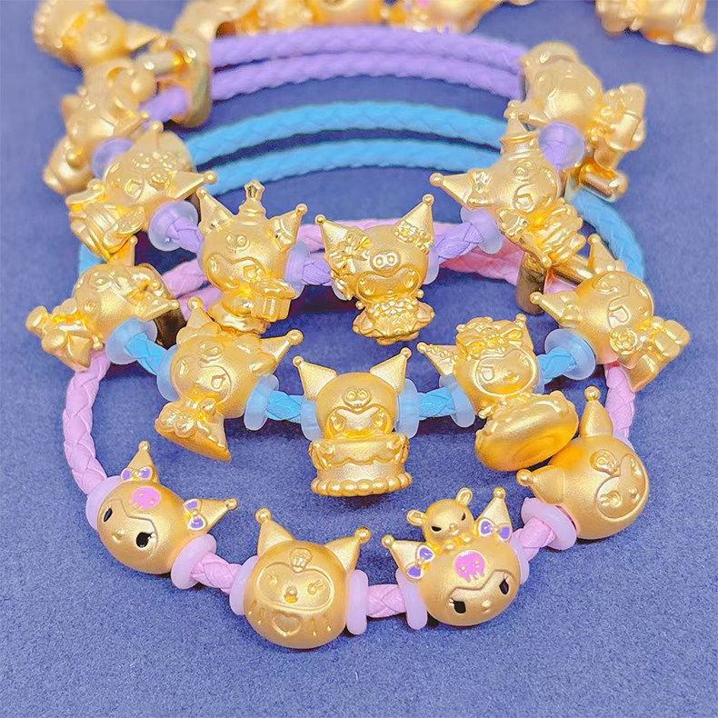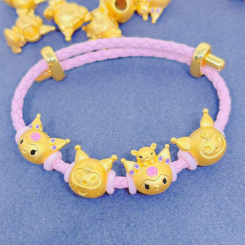 999 Pure Gold Kuromi Transfer Beads Gold Sanrio Cute Cartoon Kuromi Beads Hard Gold Bracelet for Gift Giving