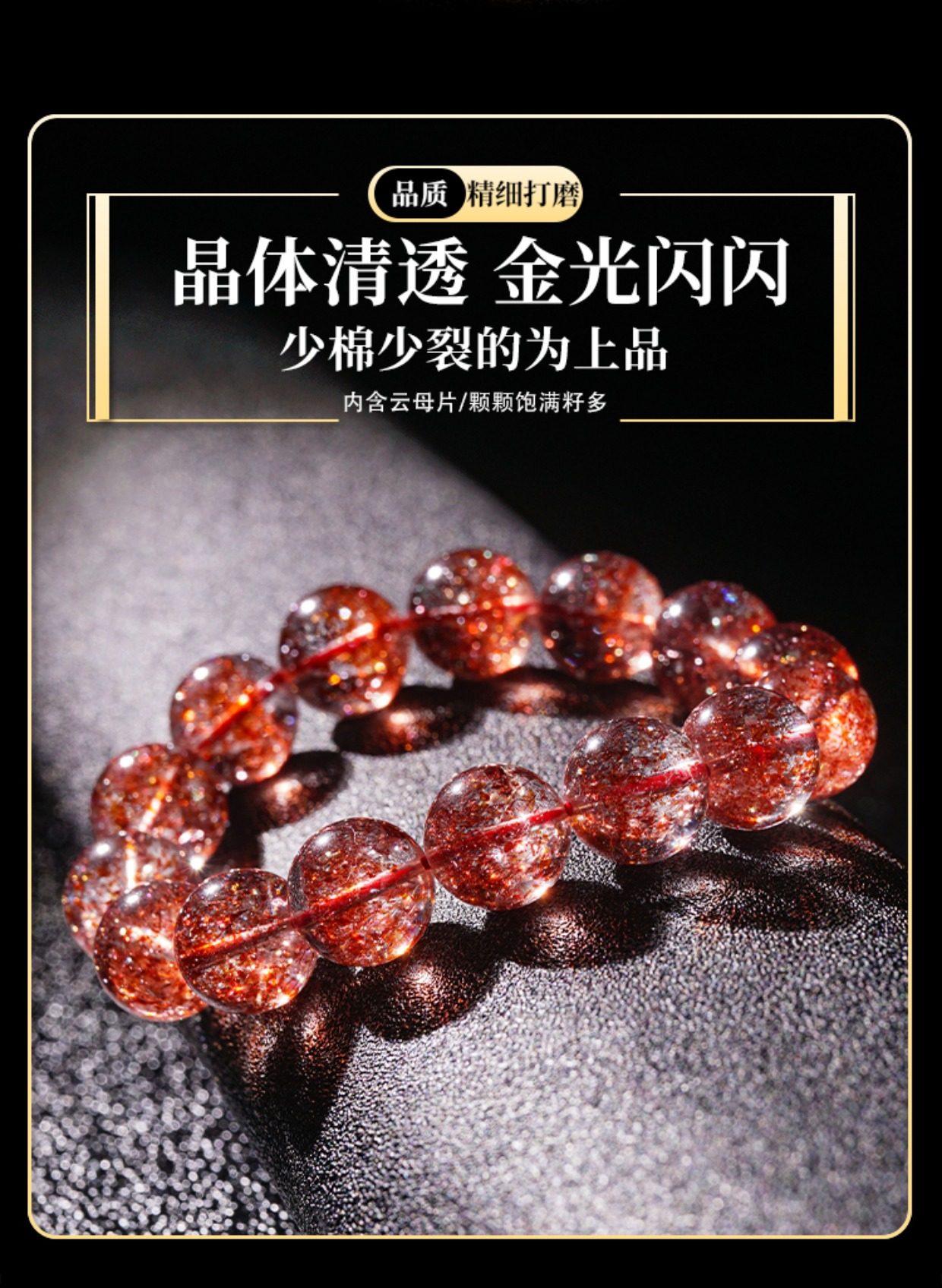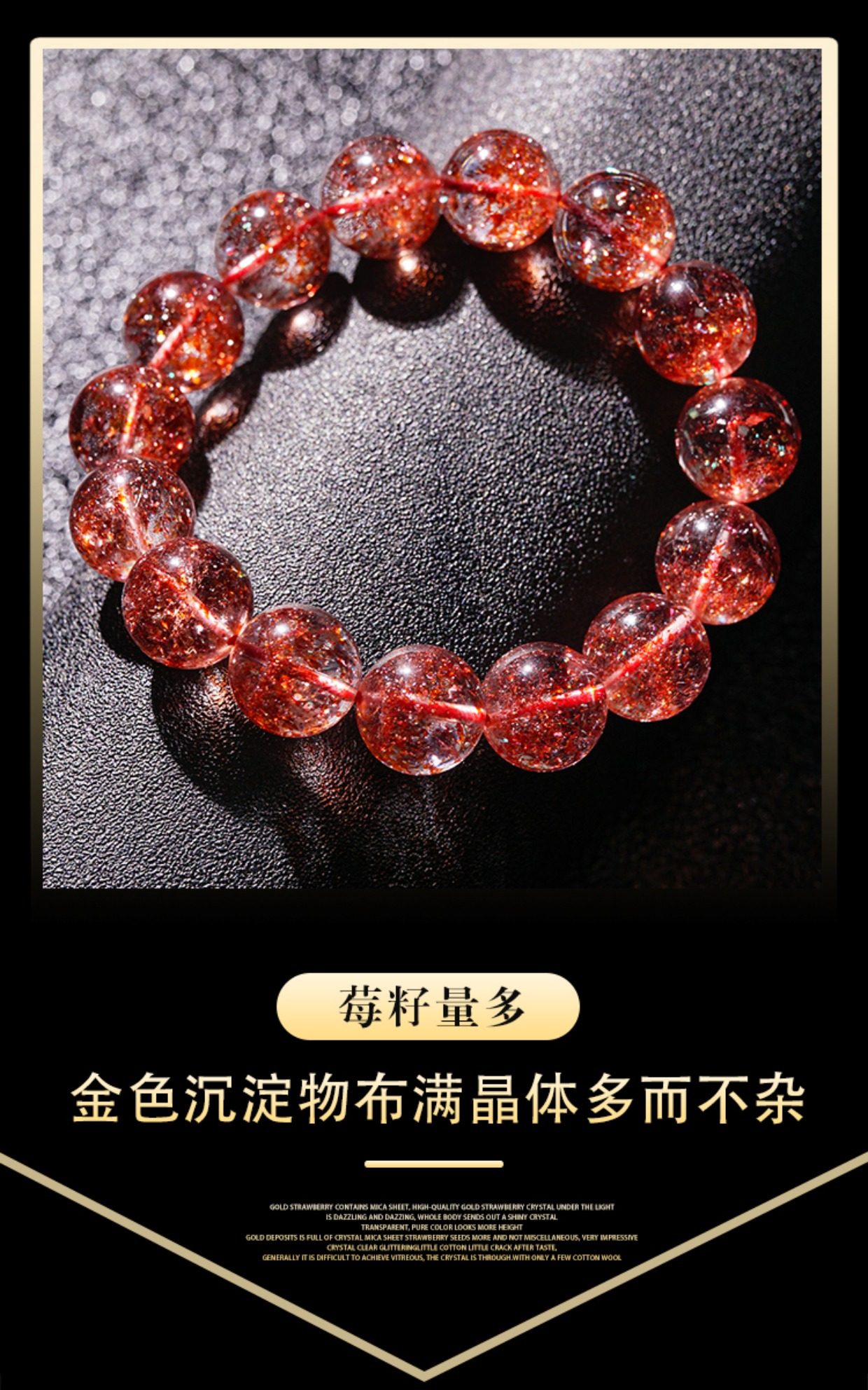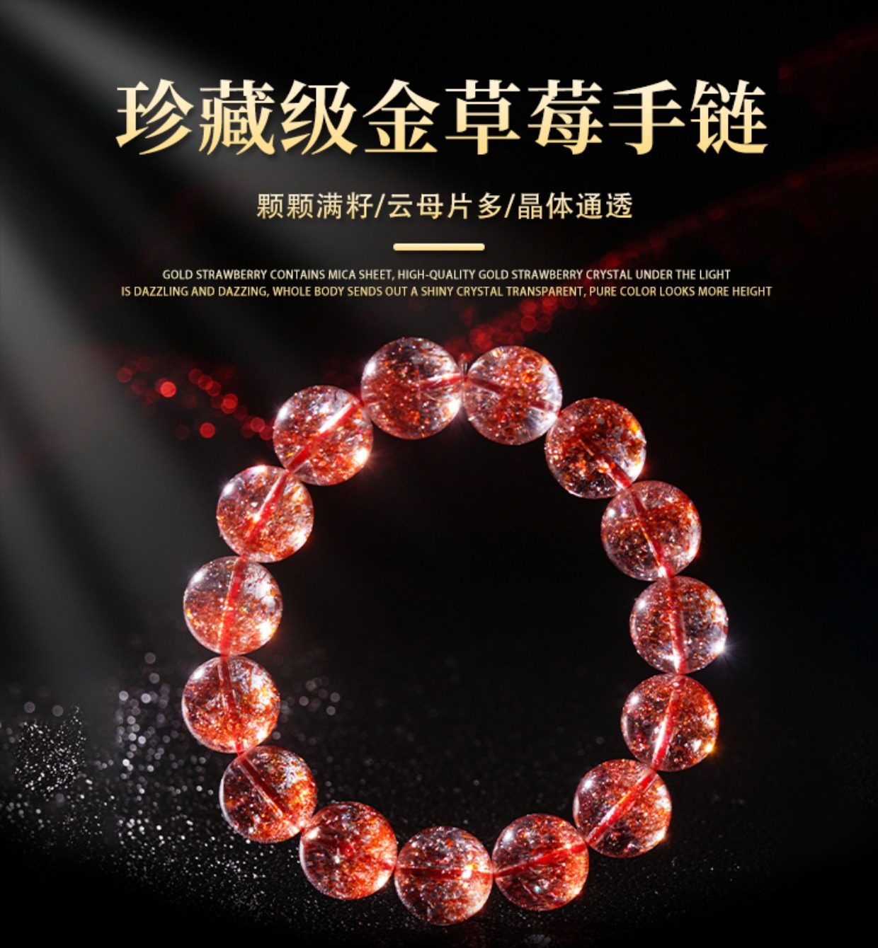 Dongyue Jewelry Natural Gold Strawberry Crystal Bracelet for Women Single Circle Crystal Fanta Color Red Super Seven Mica Chip Hair Strand Bracelet