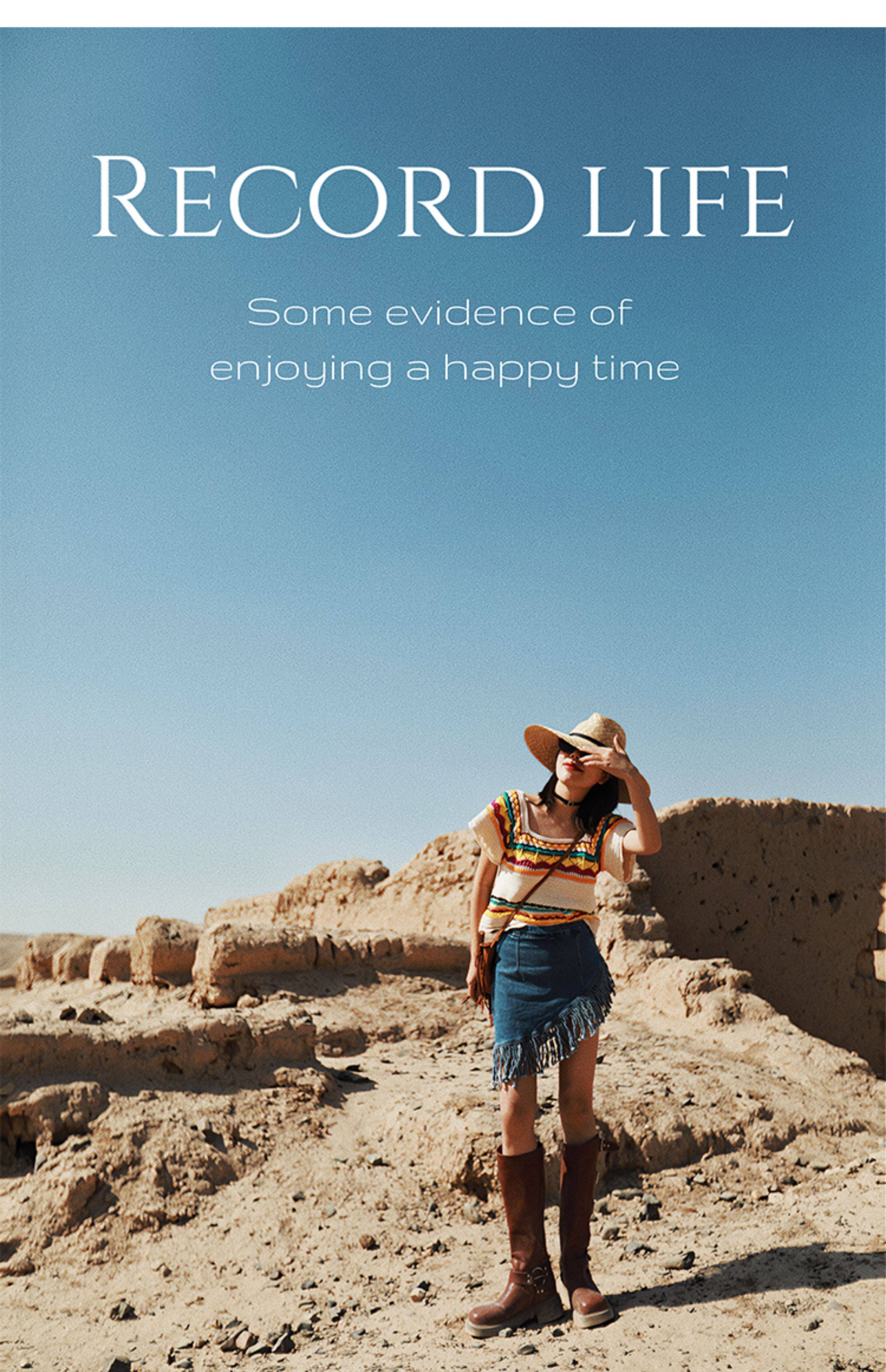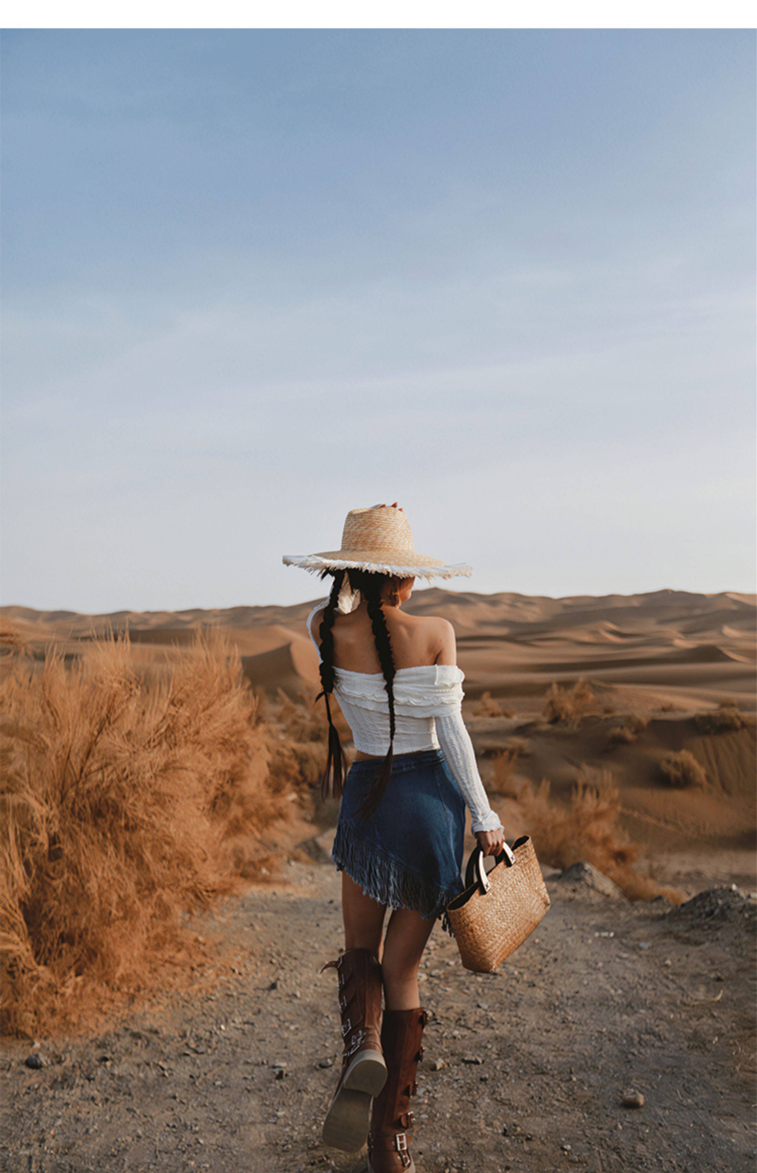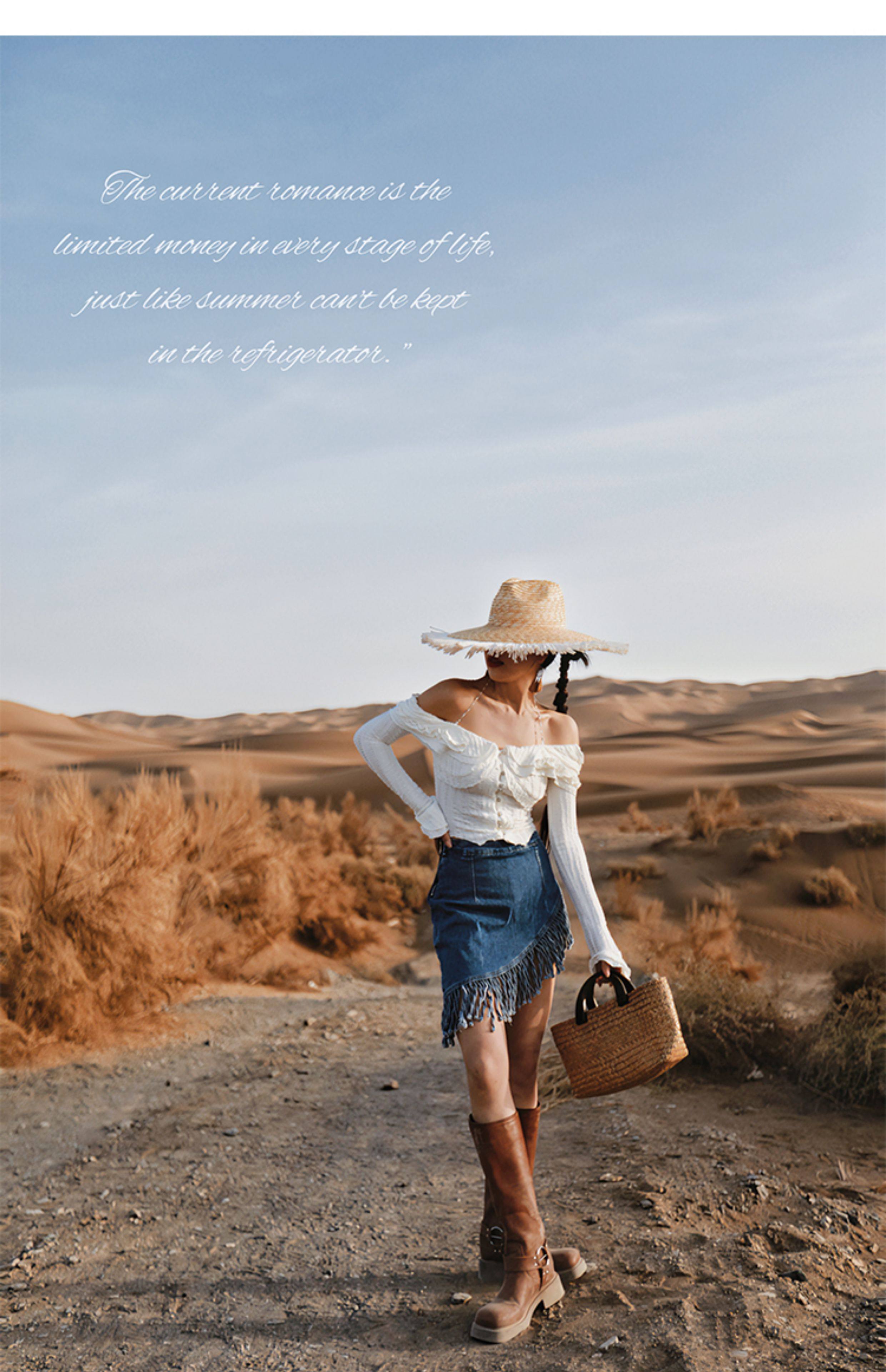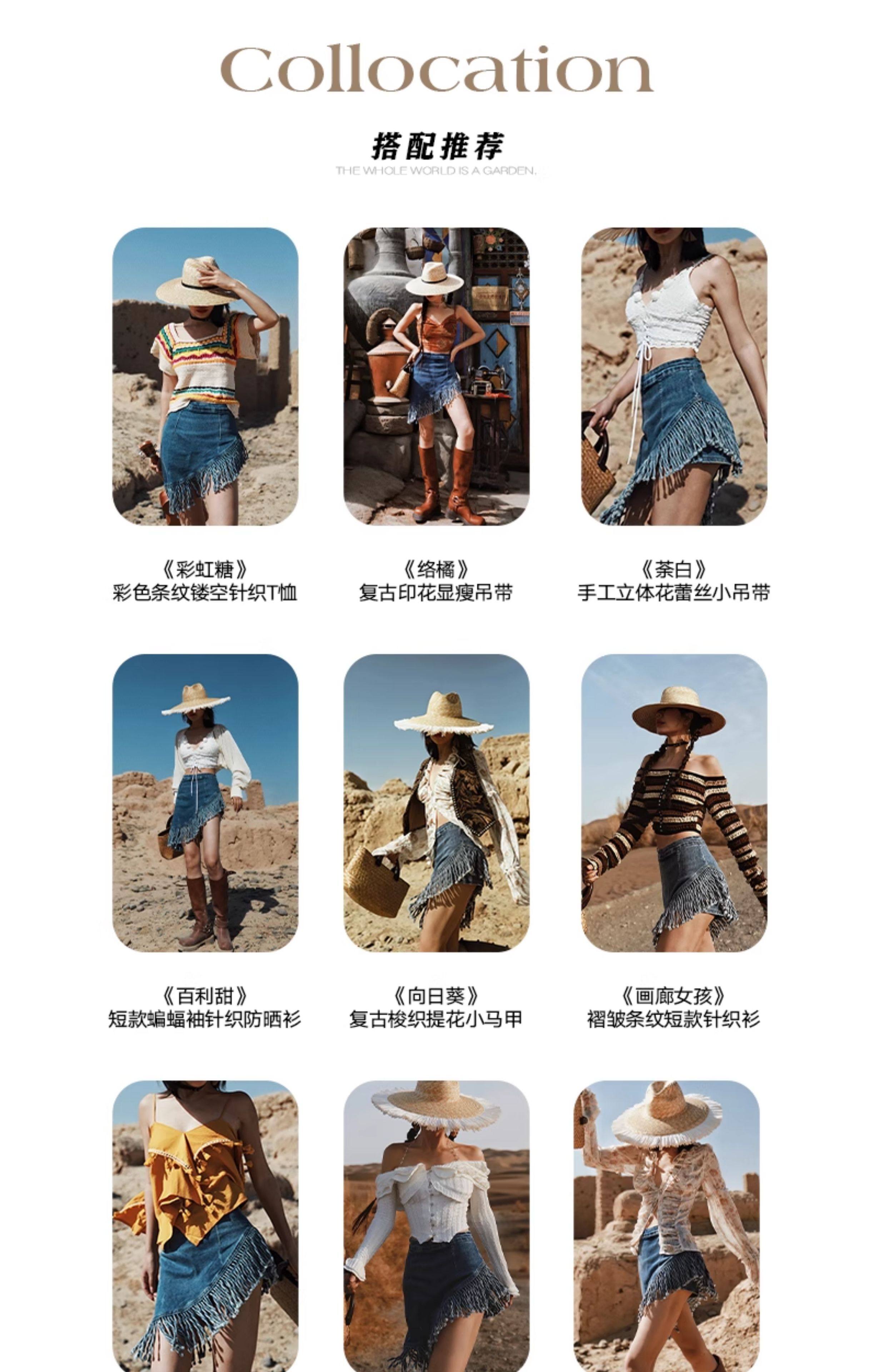 Mai Xu's Retro Irregular Tassel Denim Short Skirt, Women's Spring and Summer High-Waisted A-Line Skirt Pants