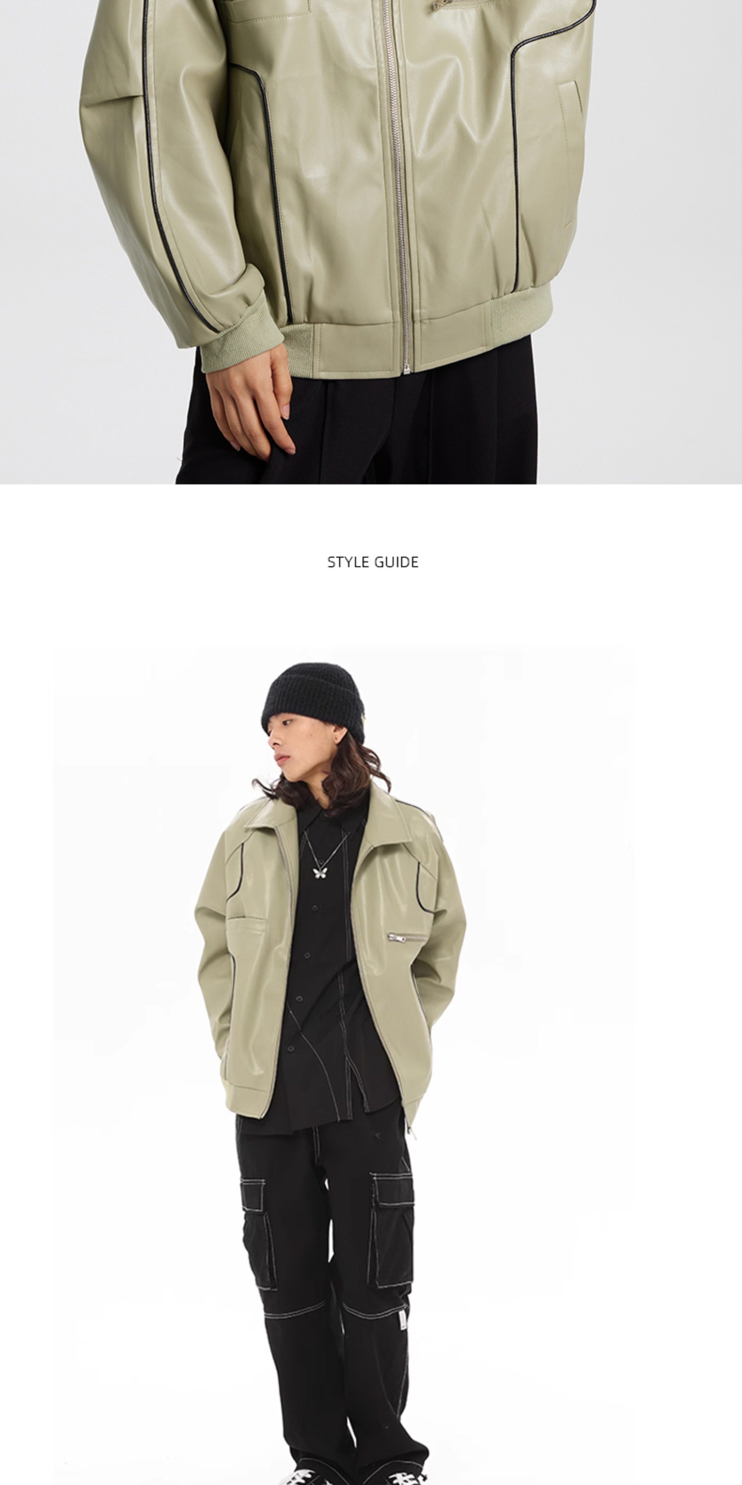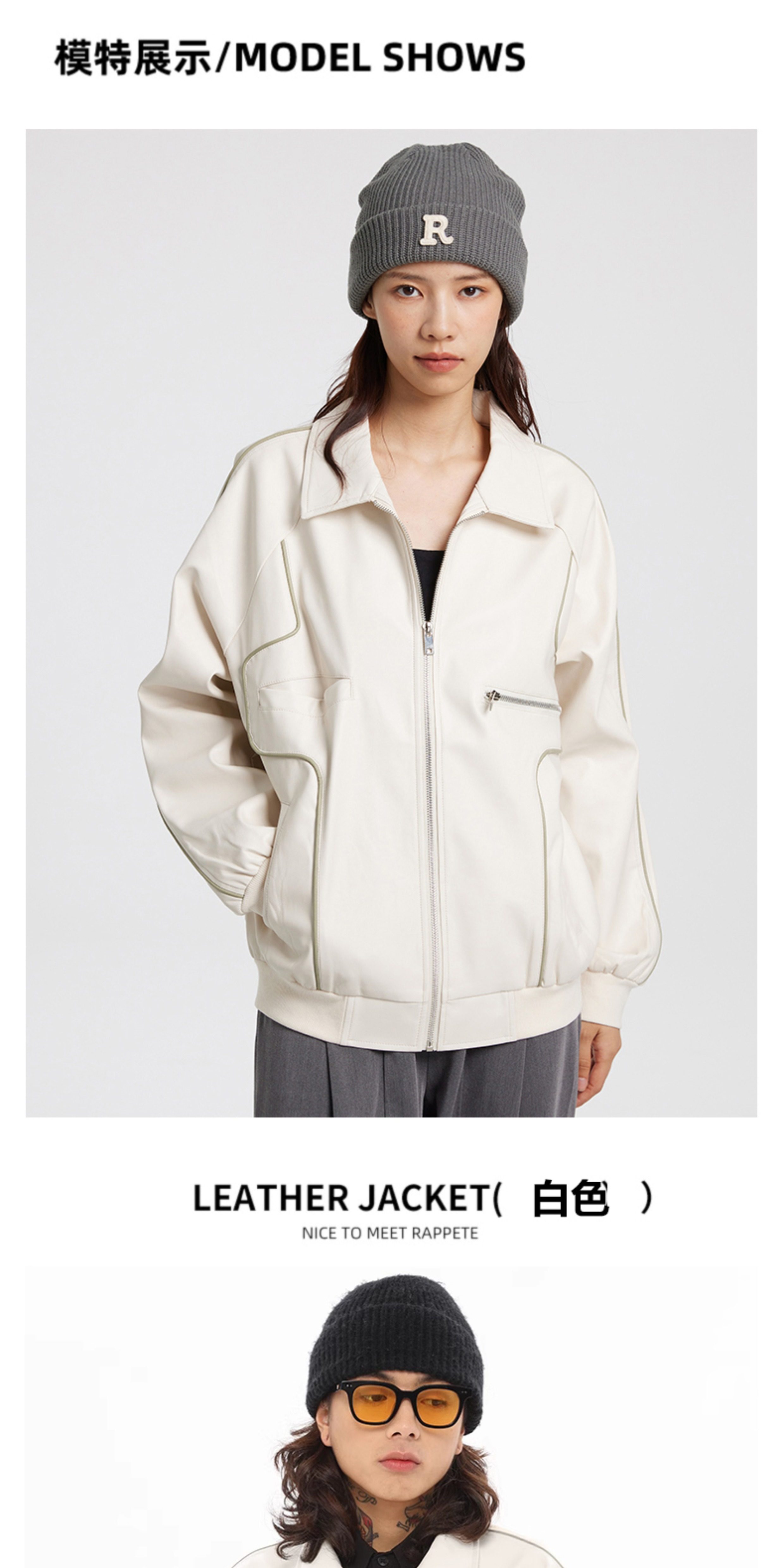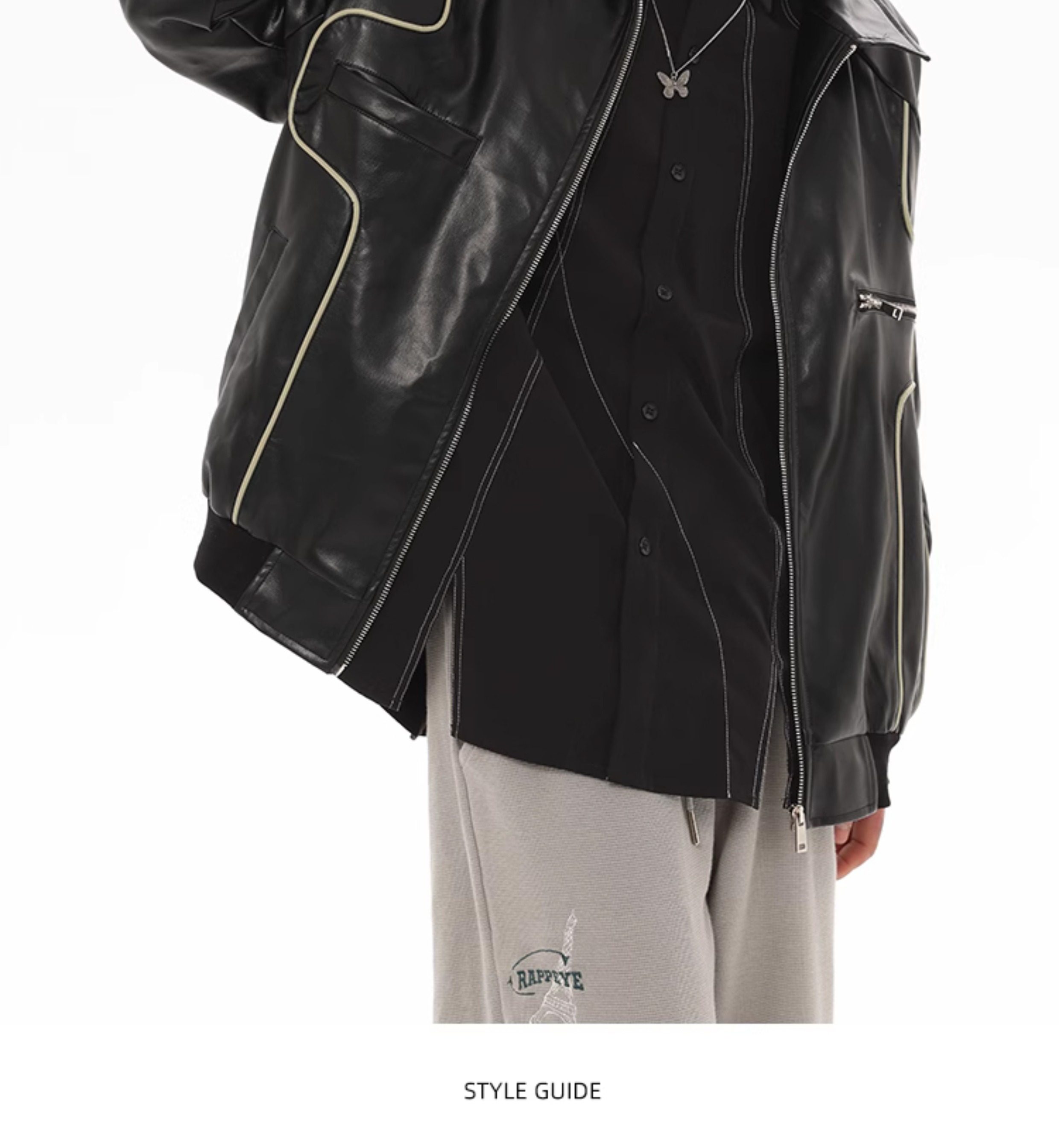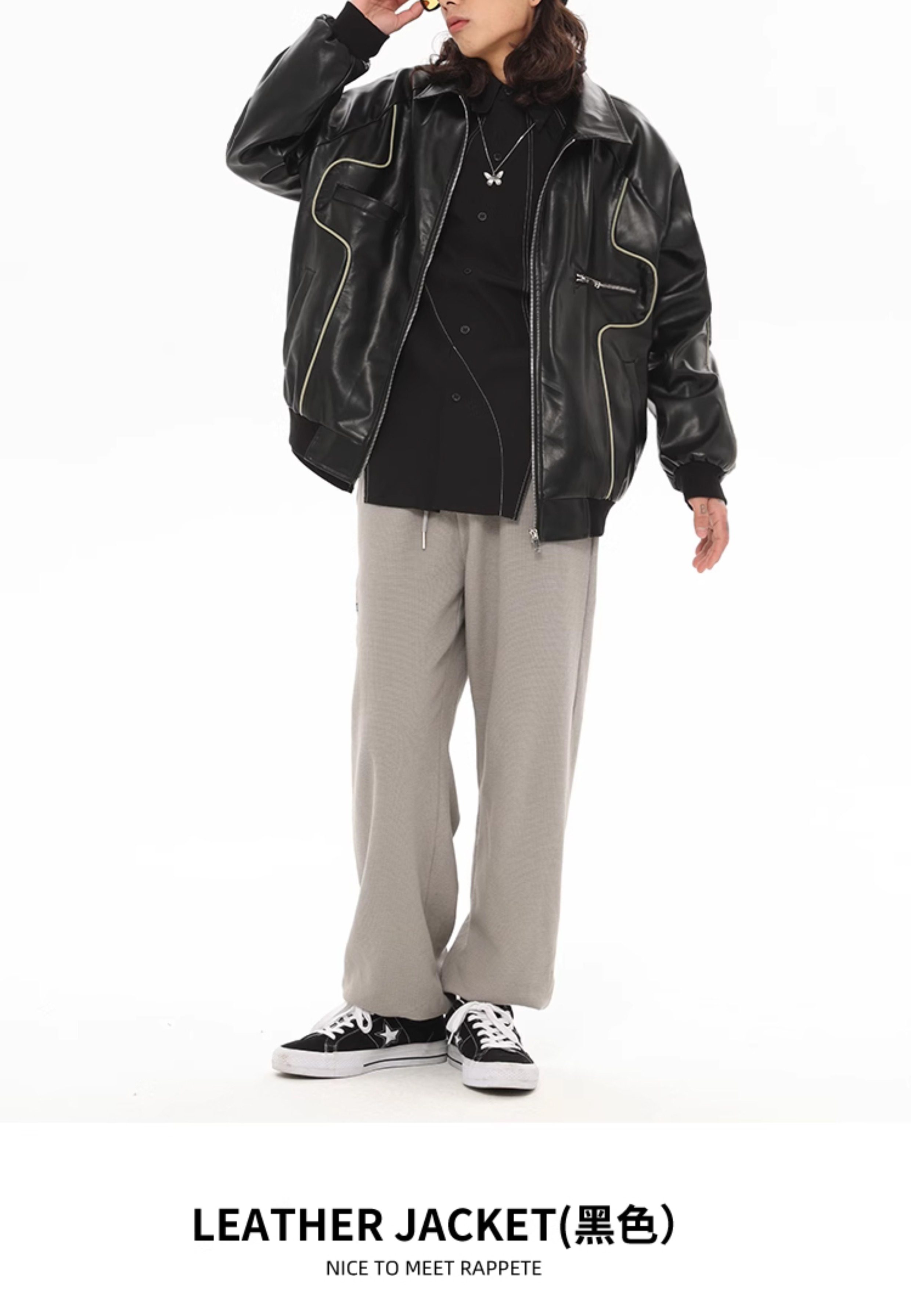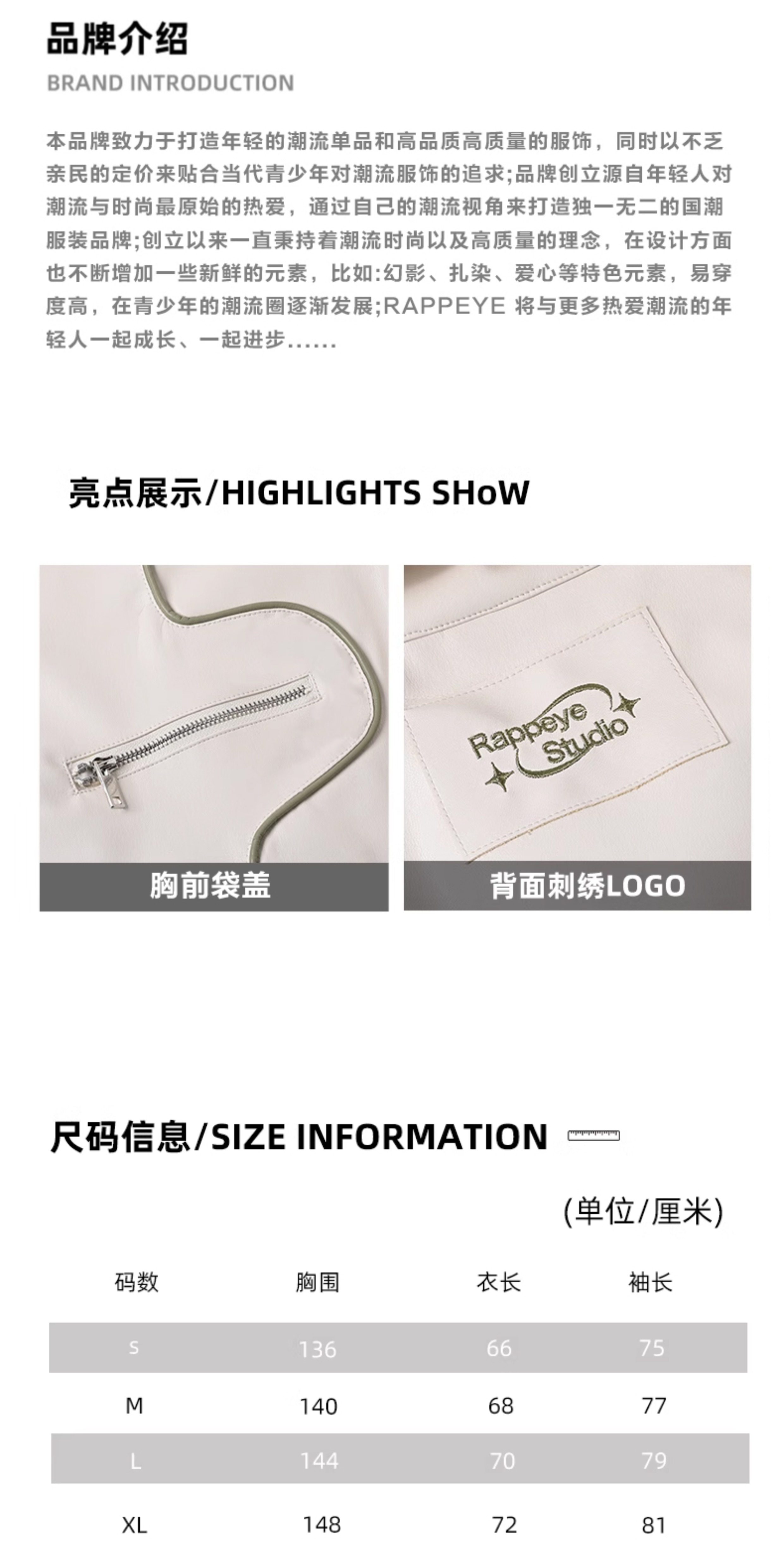 【Trendy Woo Exclusive】Rappeye Profile Motorcycle Leather Jacket for Men, Spring and Autumn Pu Leather Vintage Couple Jacket