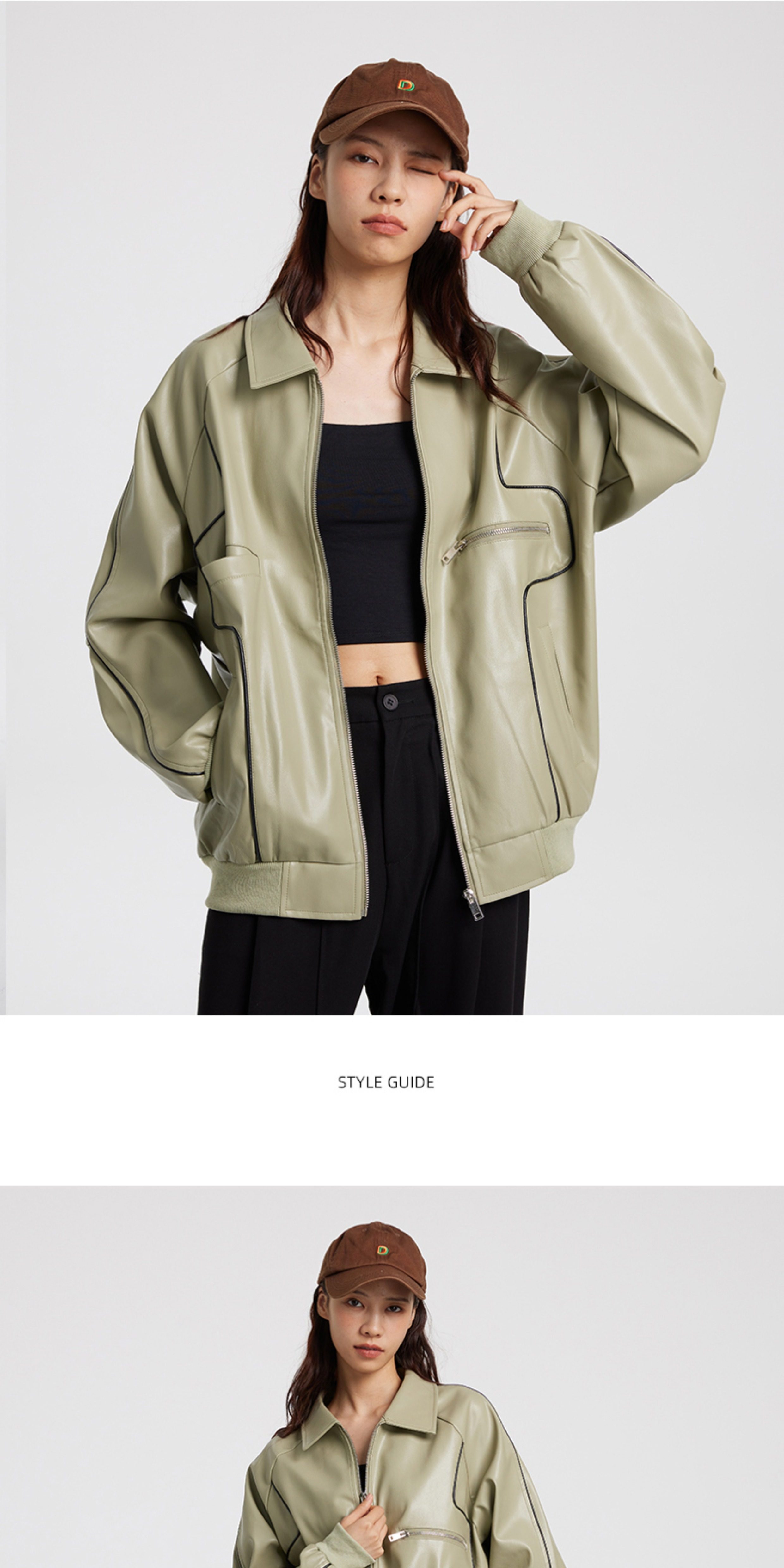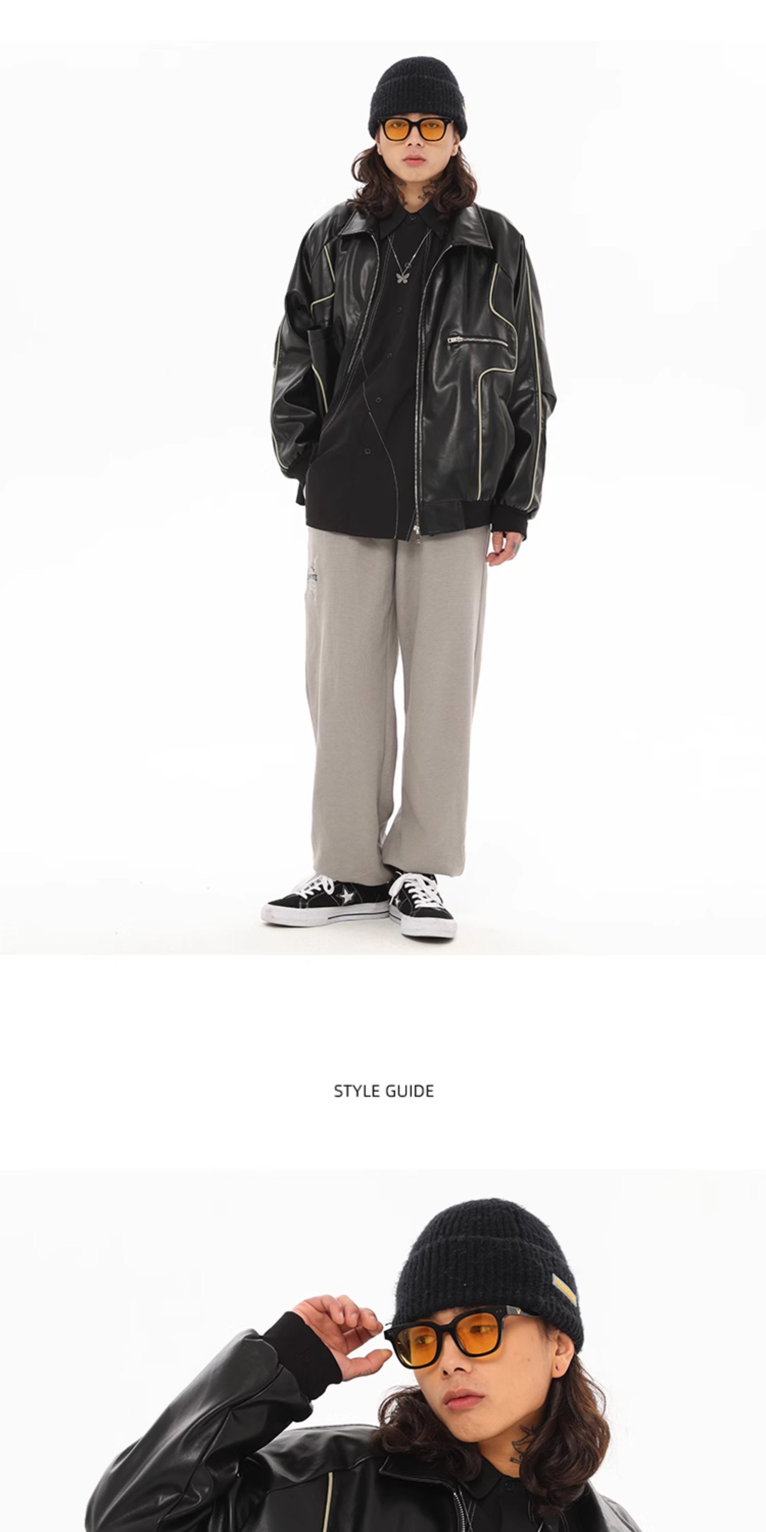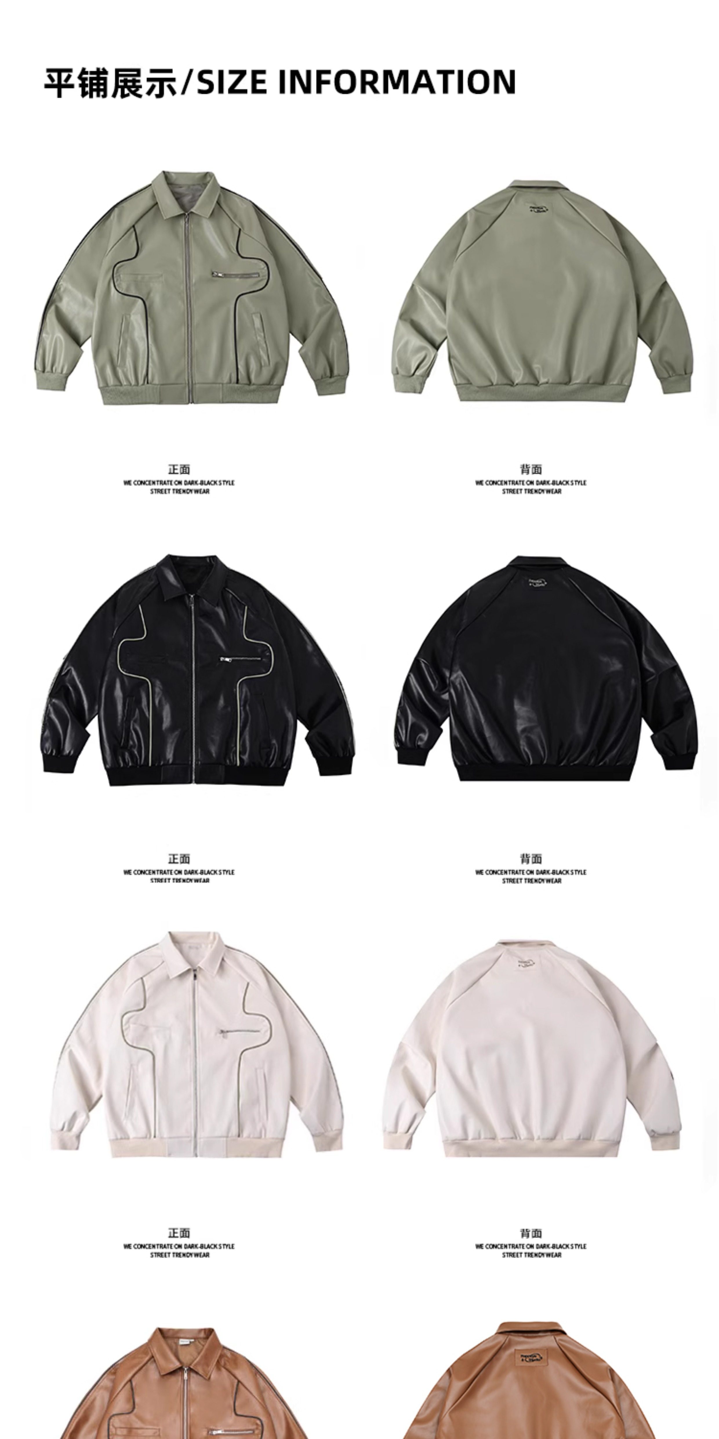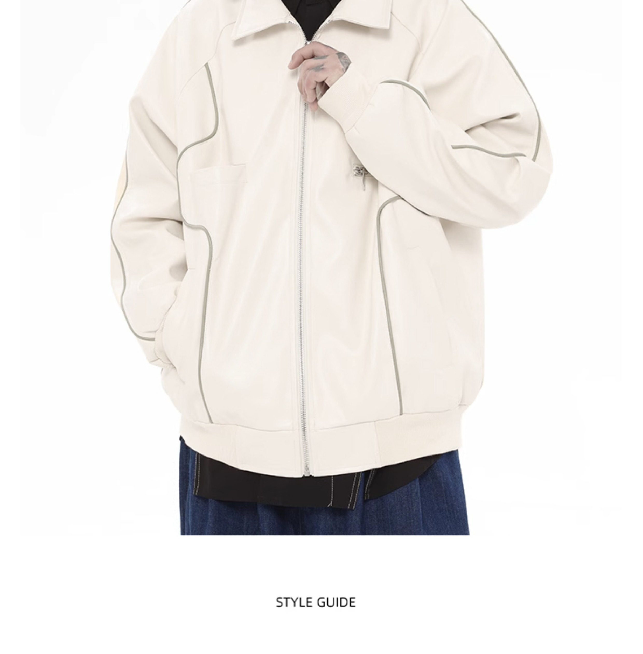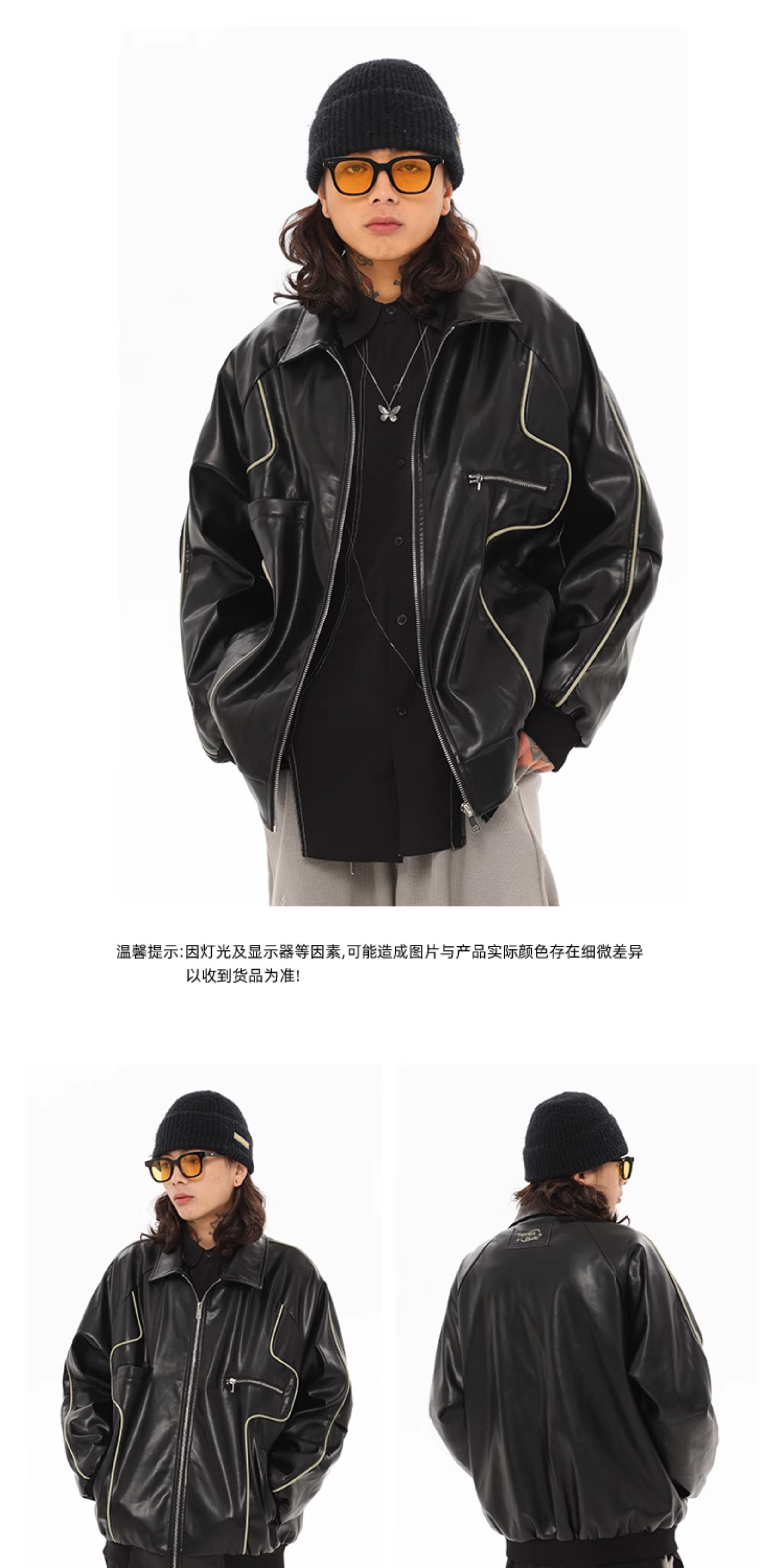 【Trendy Woo Exclusive】Rappeye Profile Motorcycle Leather Jacket for Men, Spring and Autumn Pu Leather Vintage Couple Jacket