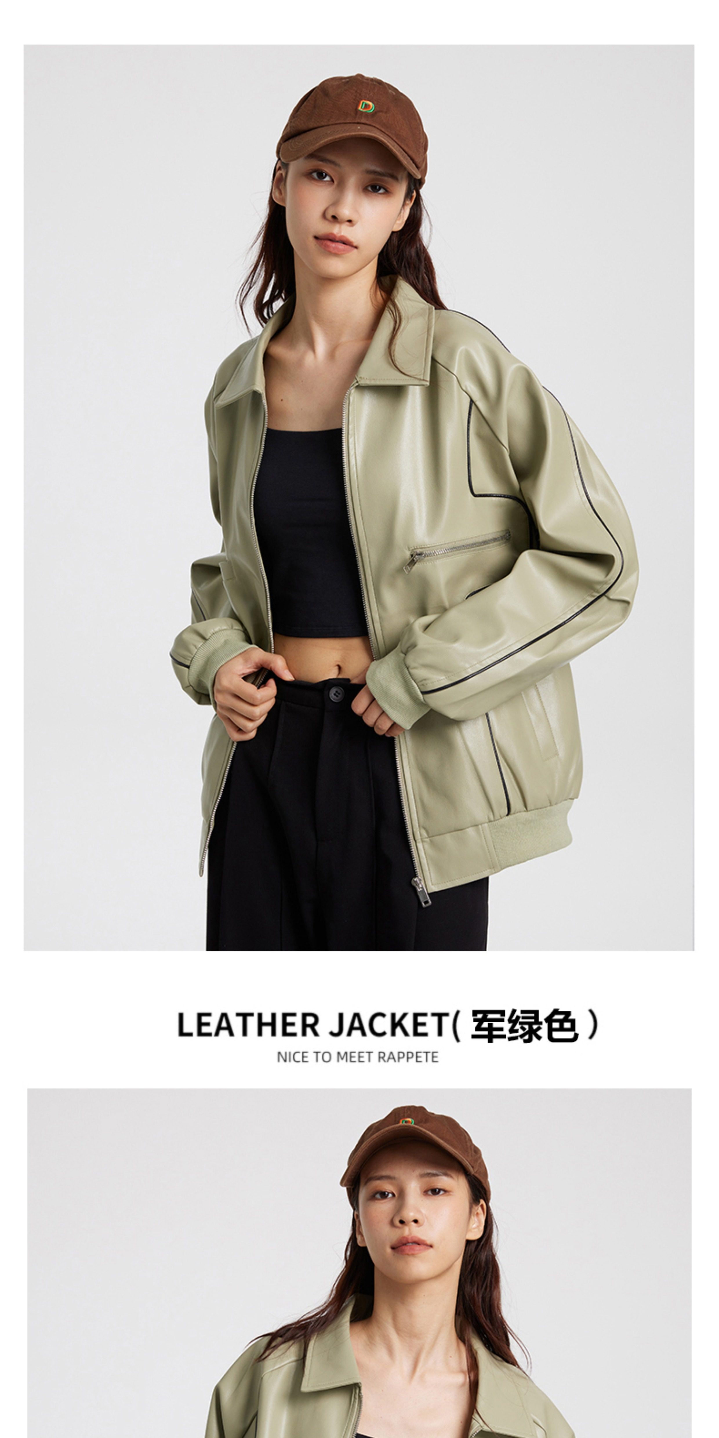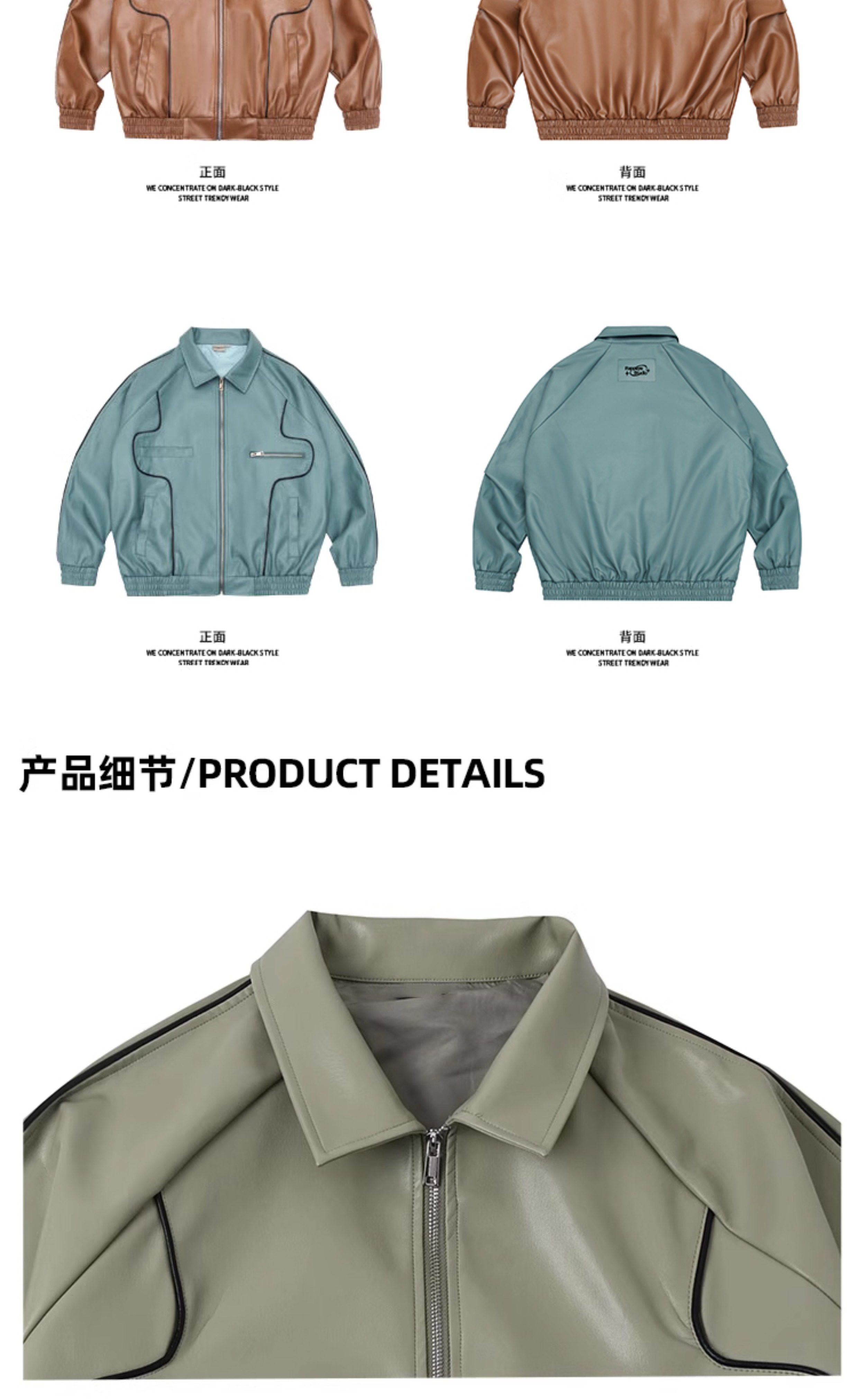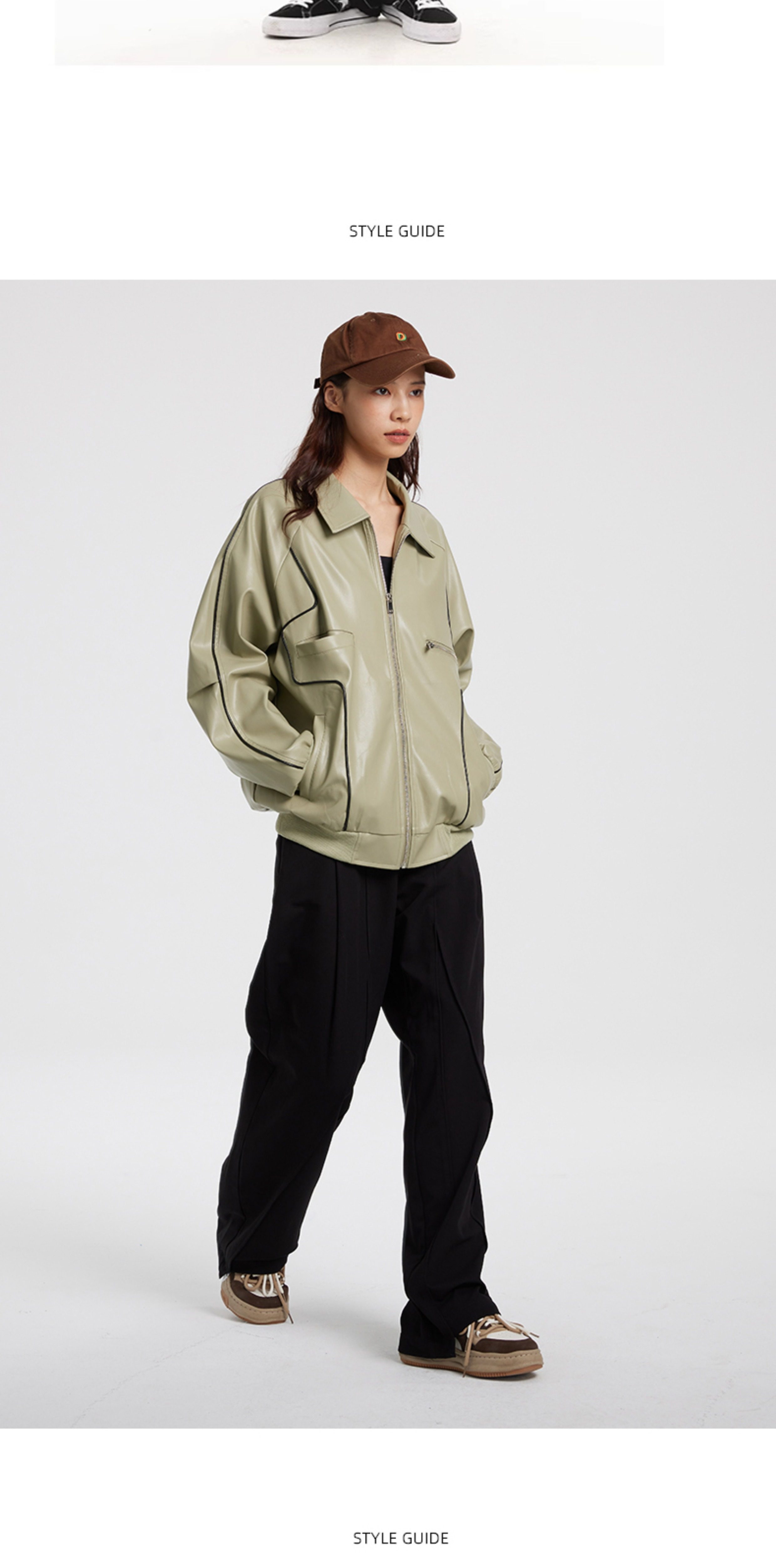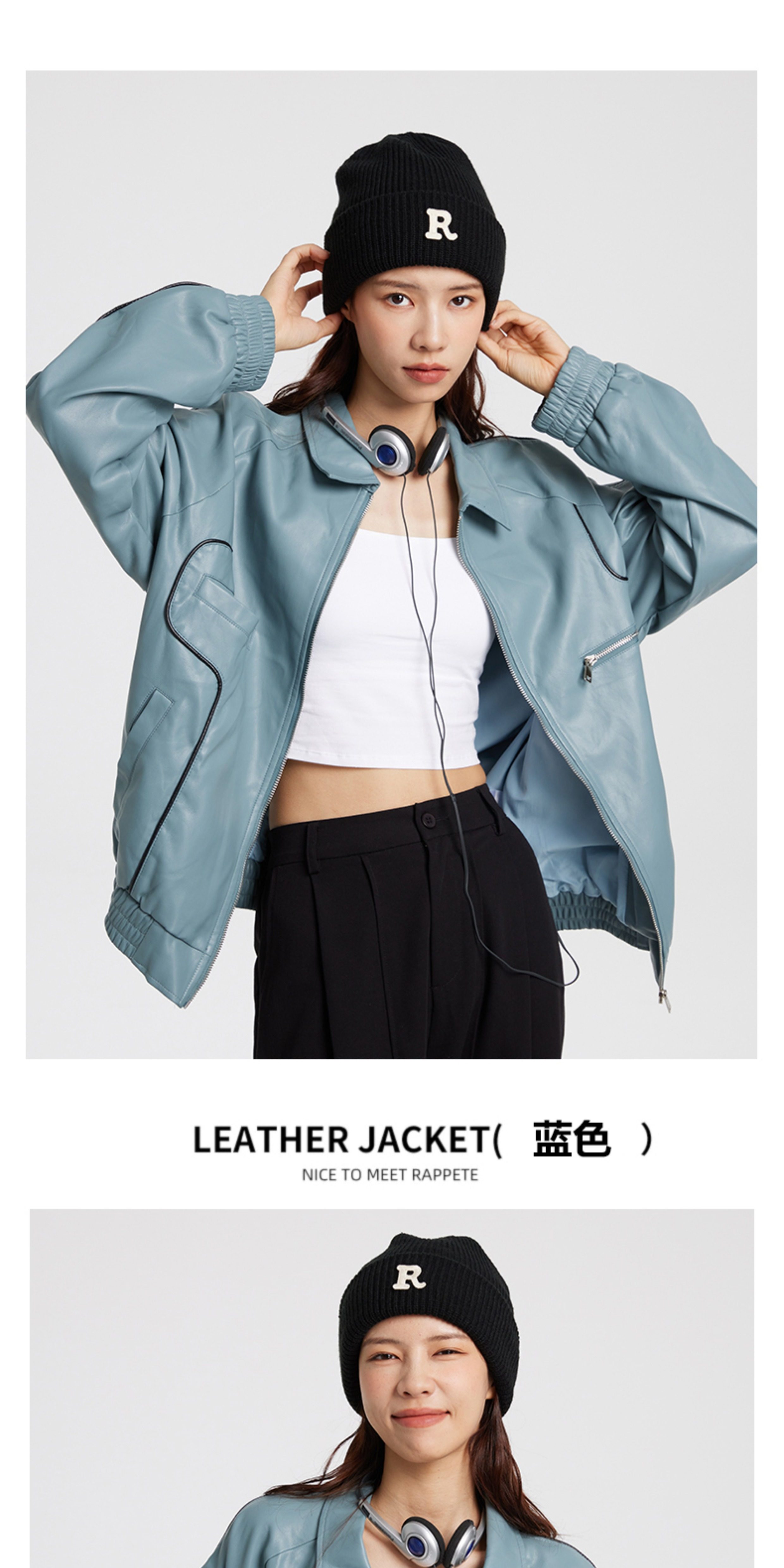 【Trendy Woo Exclusive】Rappeye Profile Motorcycle Leather Jacket for Men, Spring and Autumn Pu Leather Vintage Couple Jacket