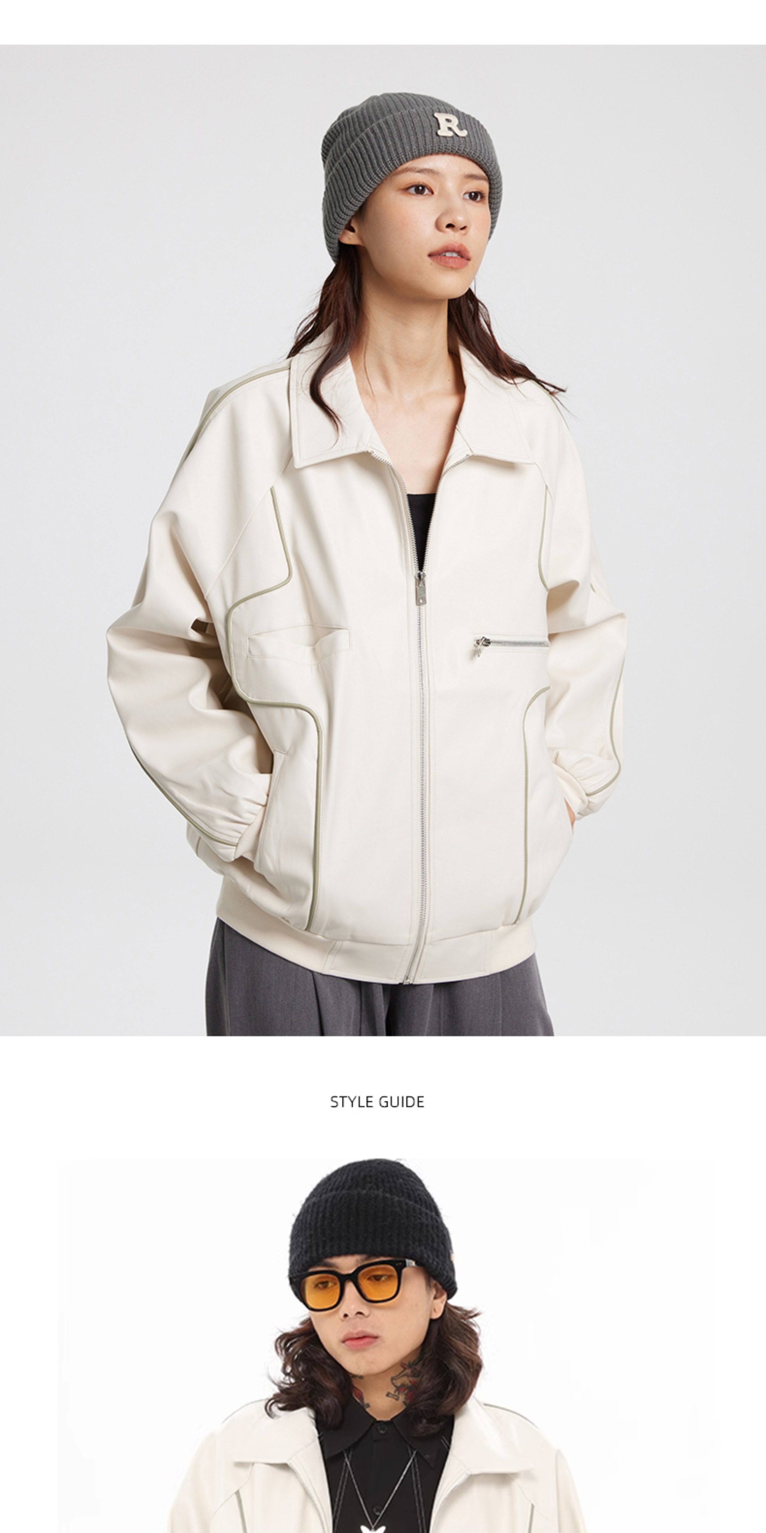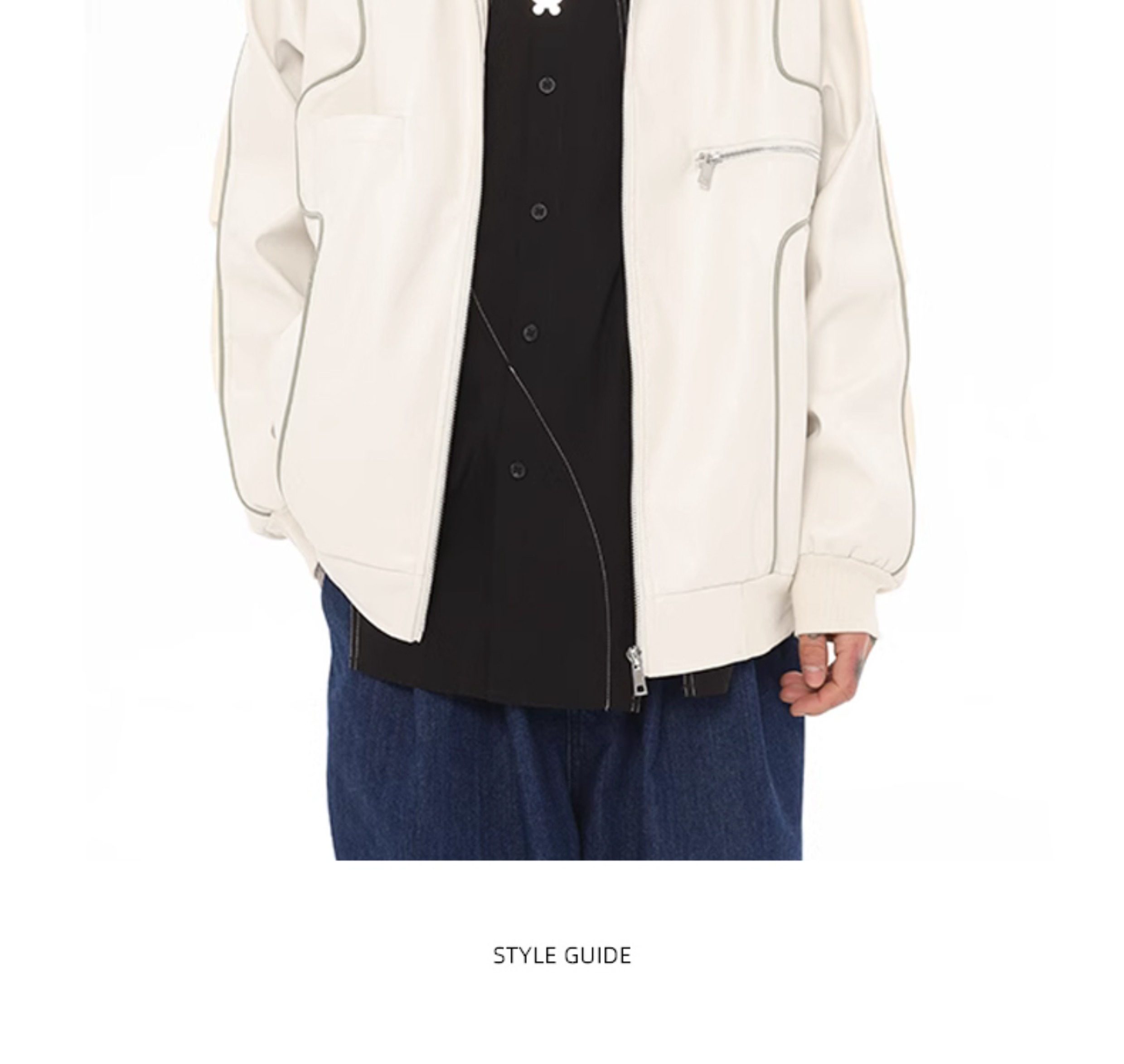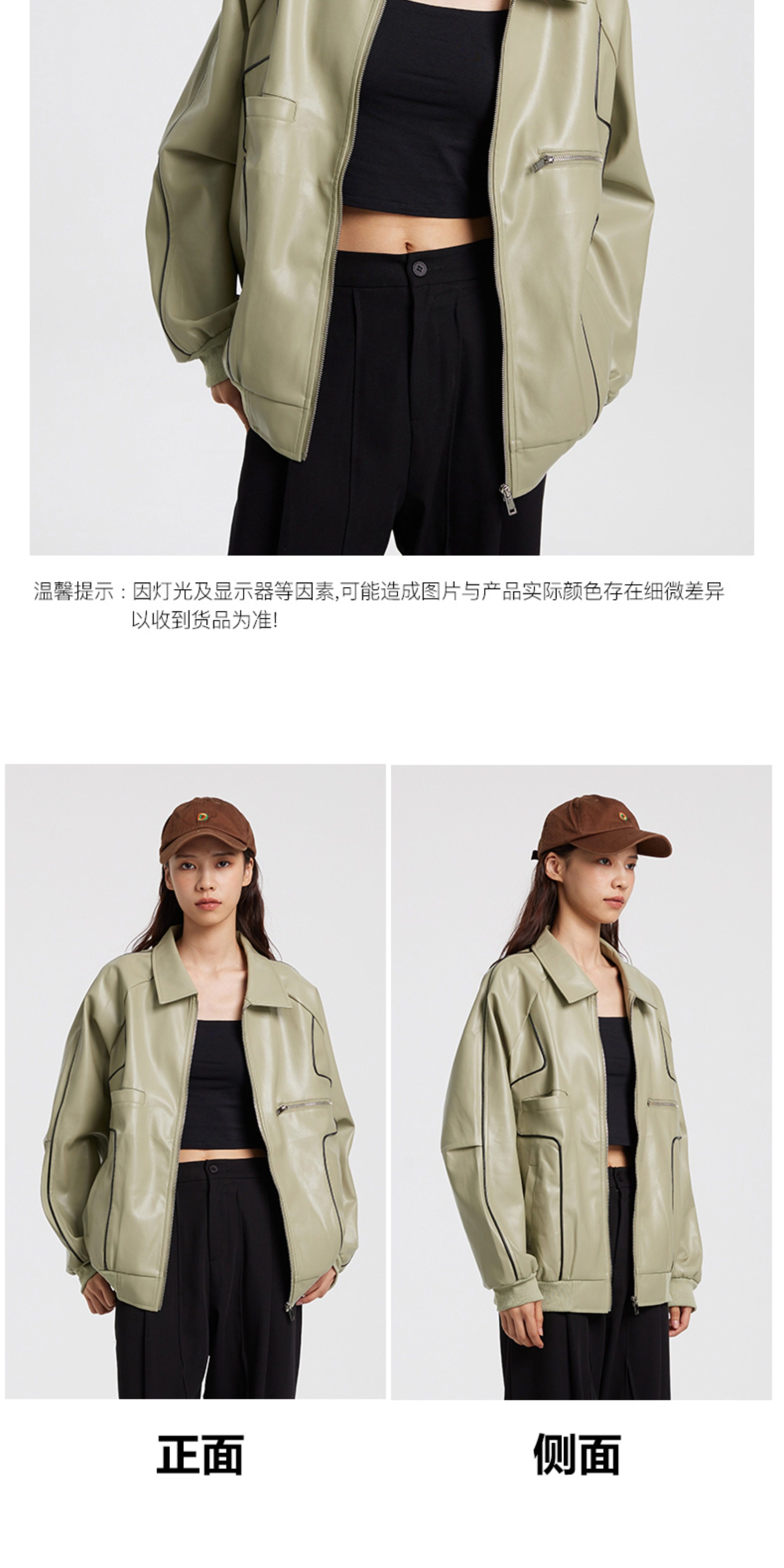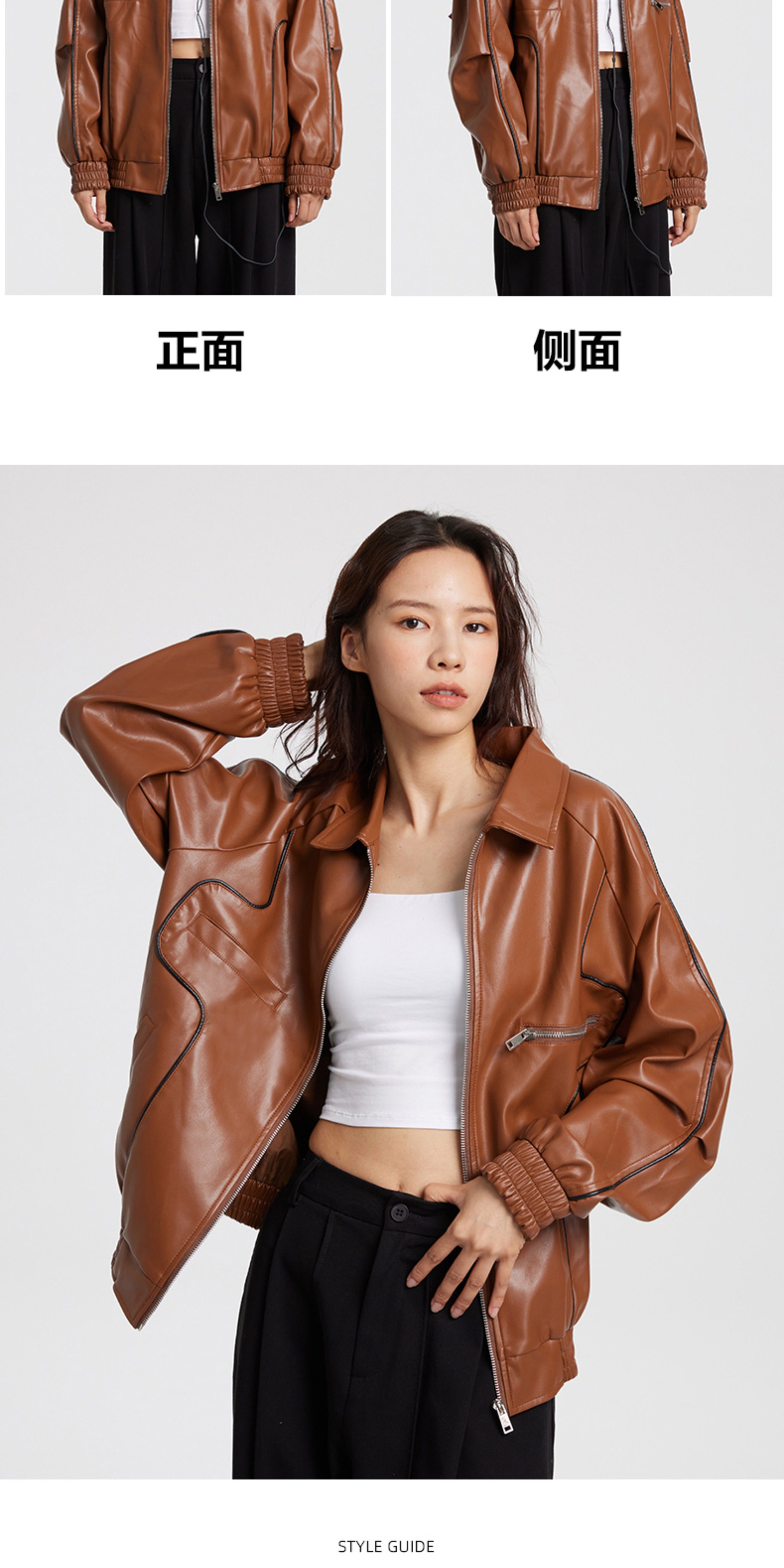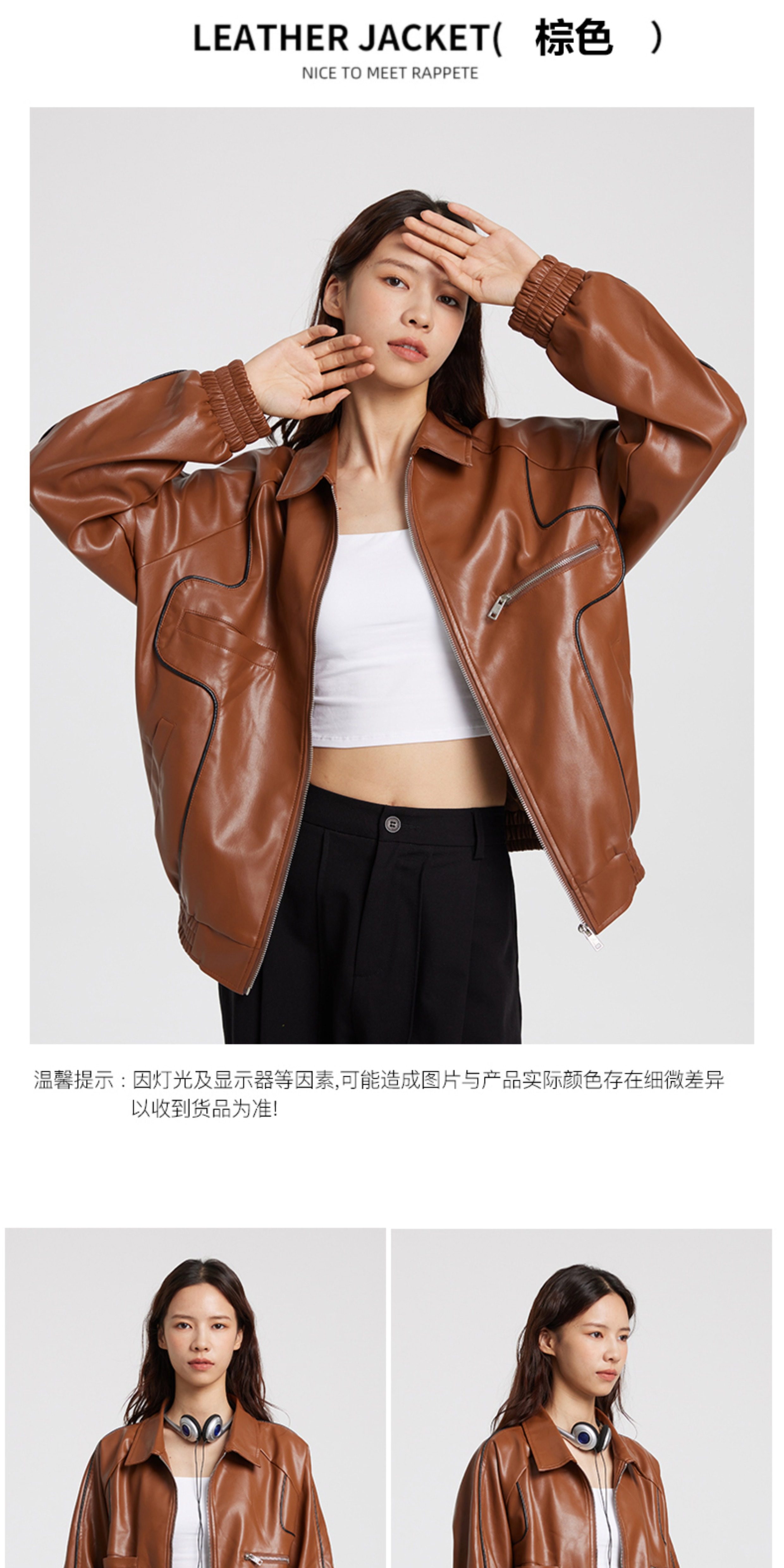 【Trendy Woo Exclusive】Rappeye Profile Motorcycle Leather Jacket for Men, Spring and Autumn Pu Leather Vintage Couple Jacket