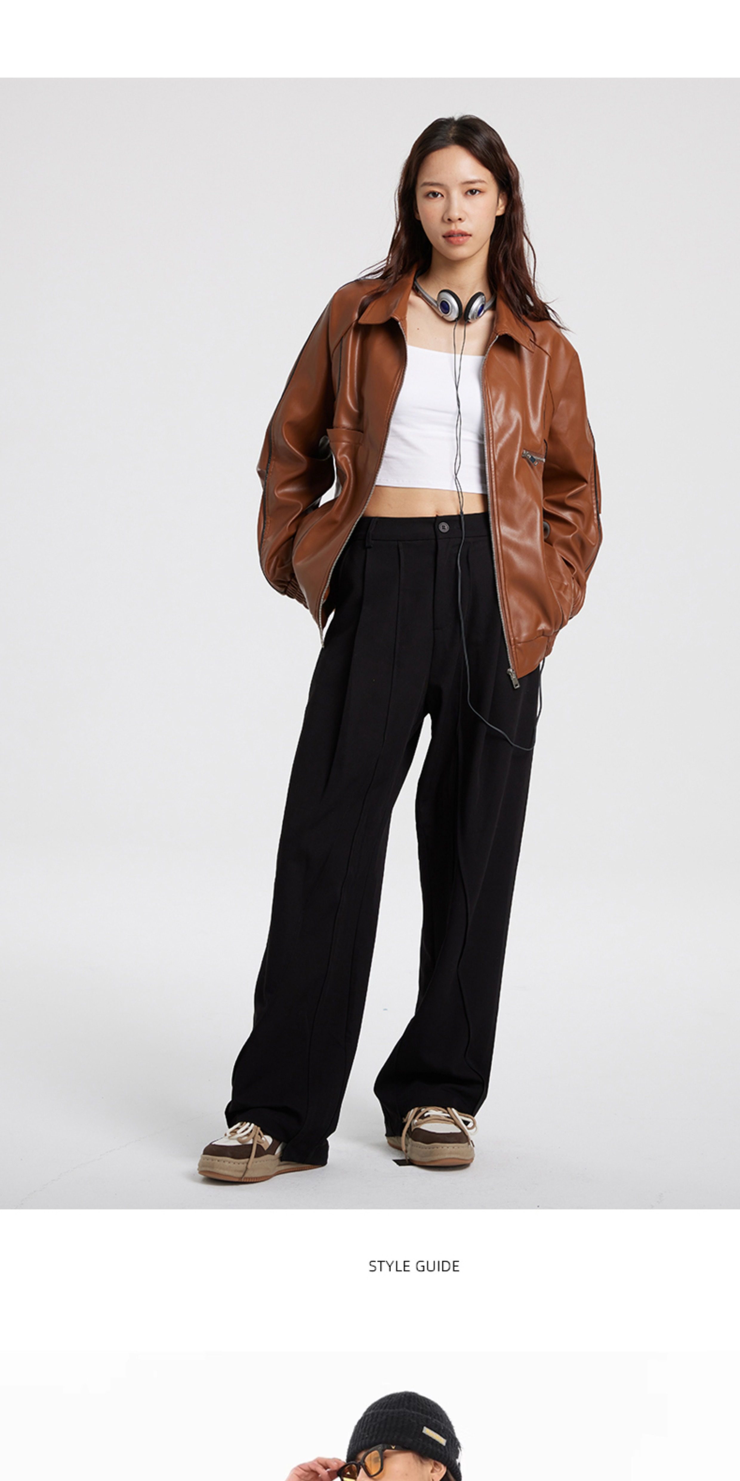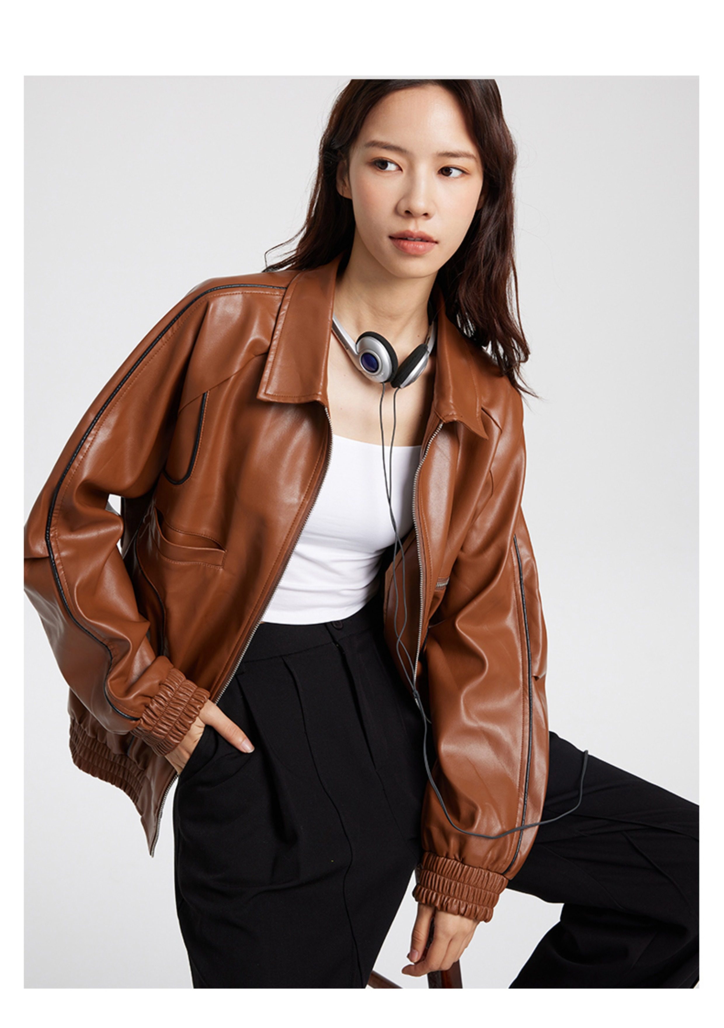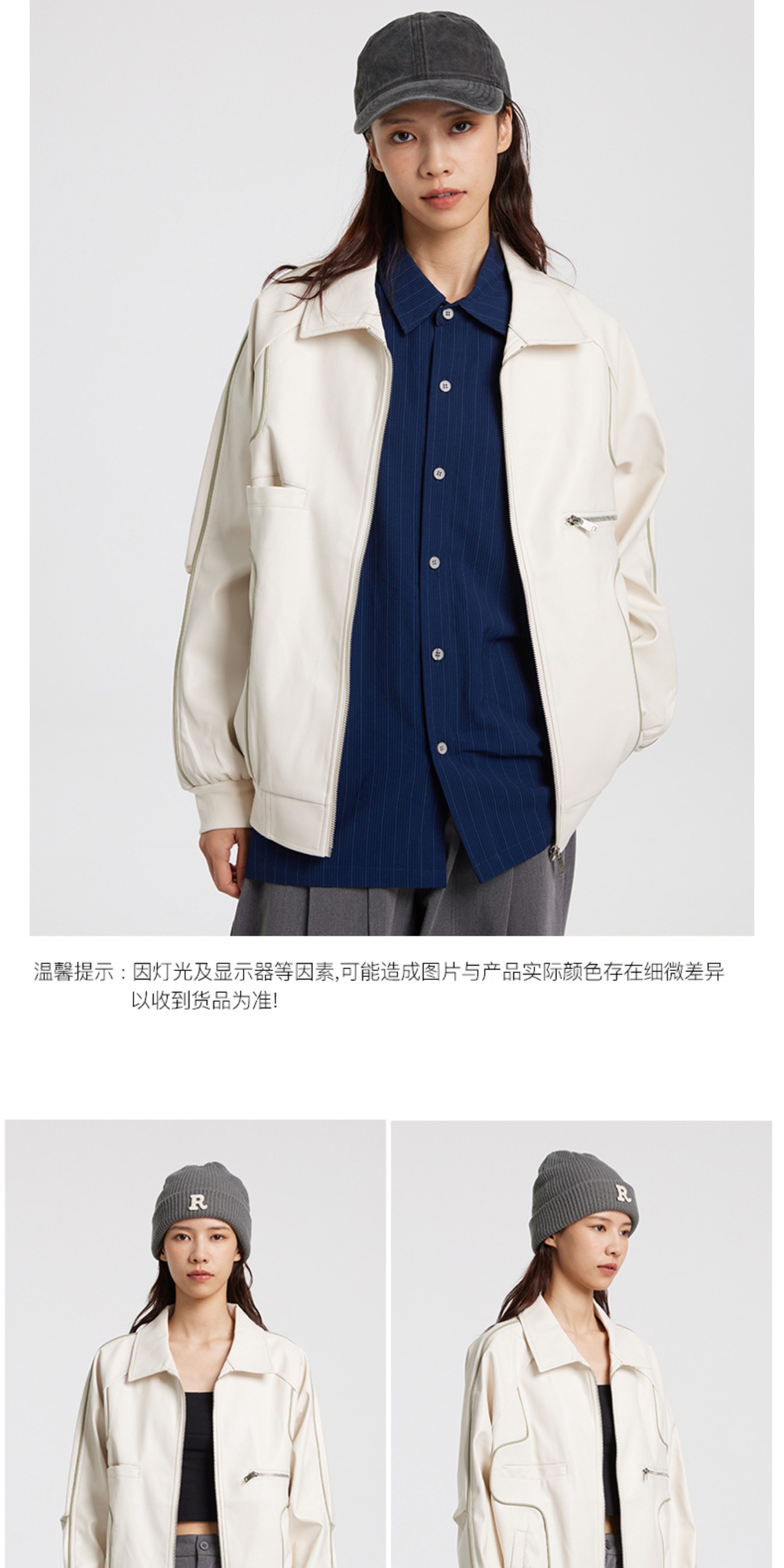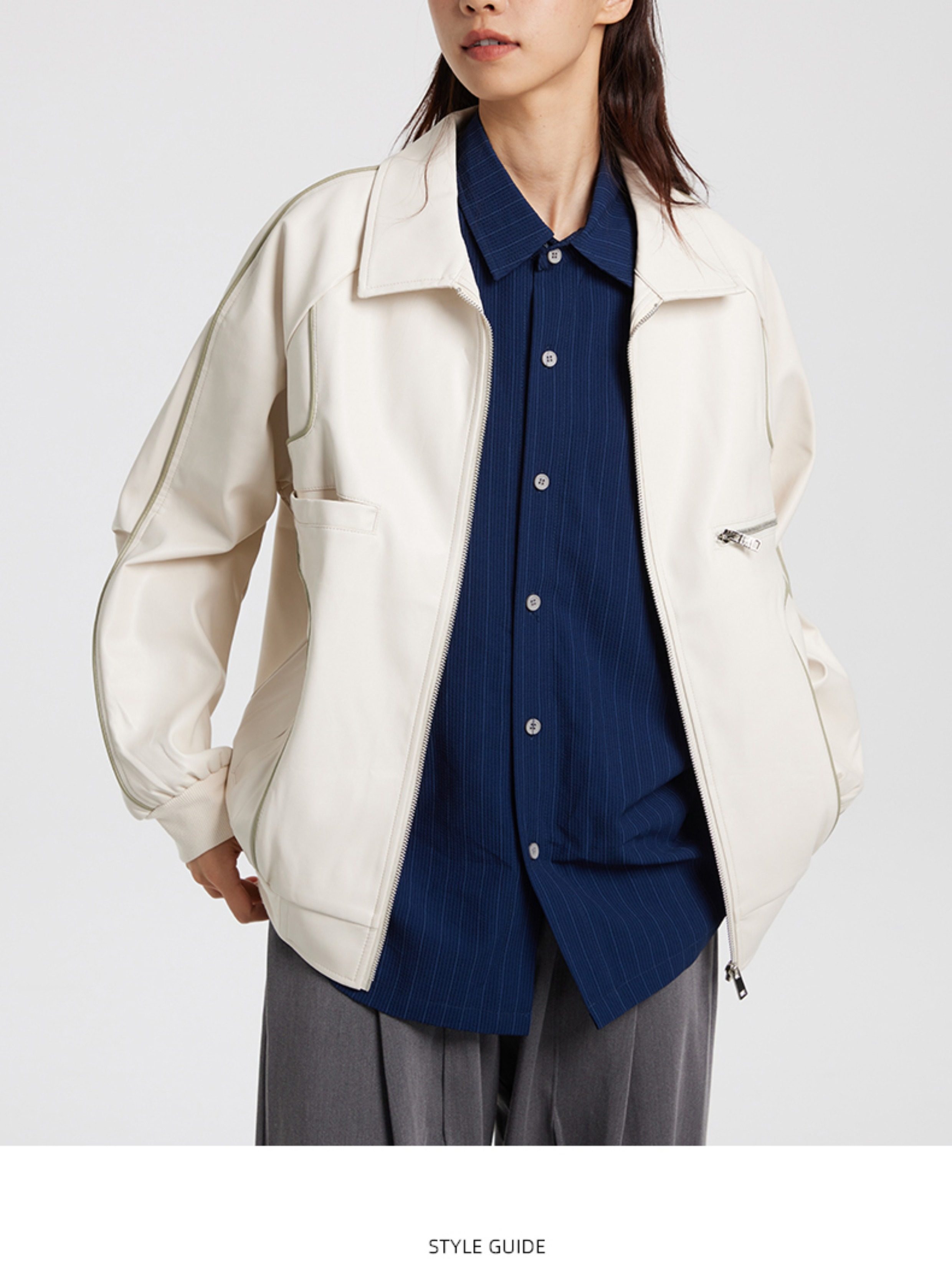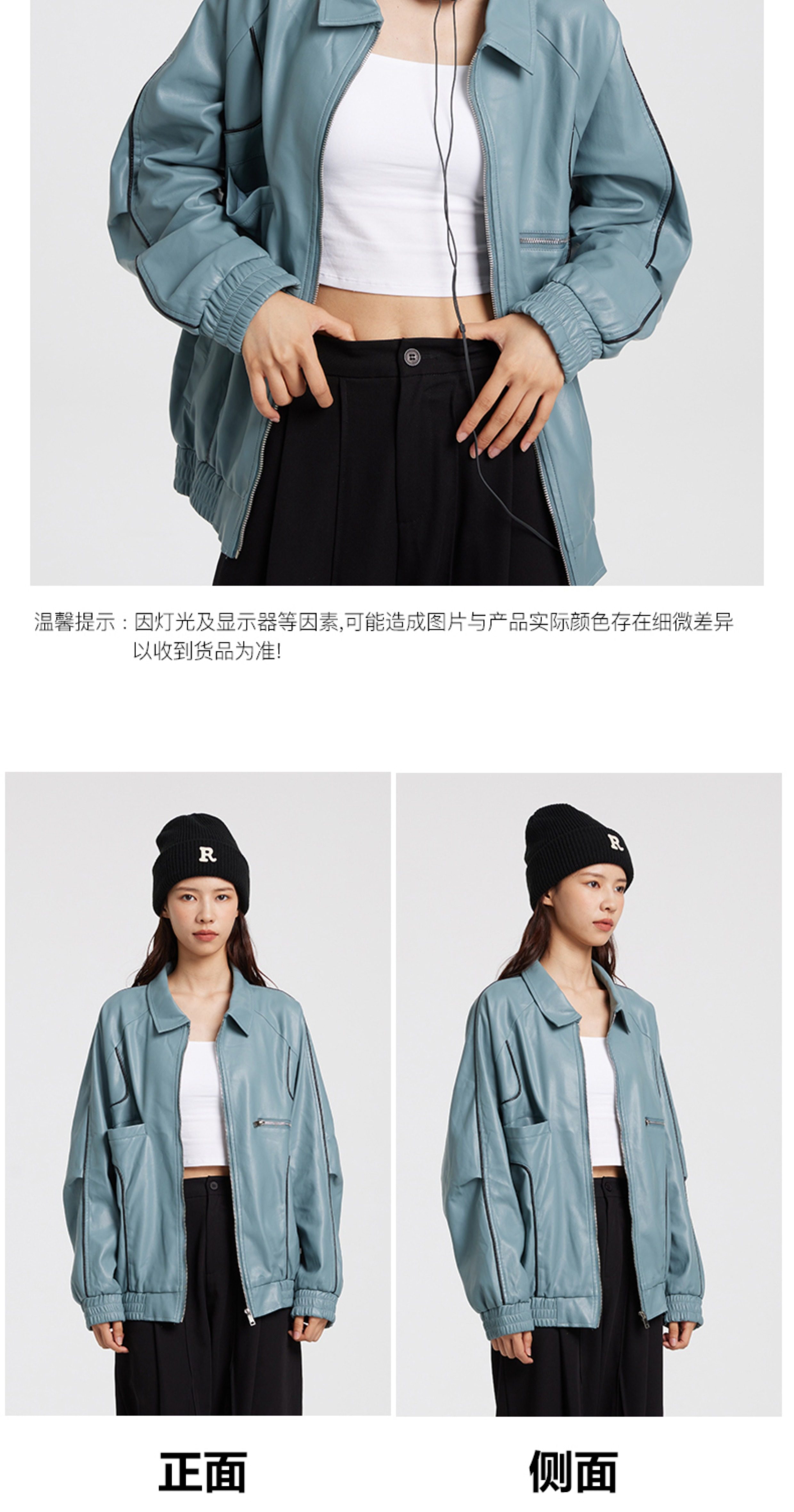 【Trendy Woo Exclusive】Rappeye Profile Motorcycle Leather Jacket for Men, Spring and Autumn Pu Leather Vintage Couple Jacket