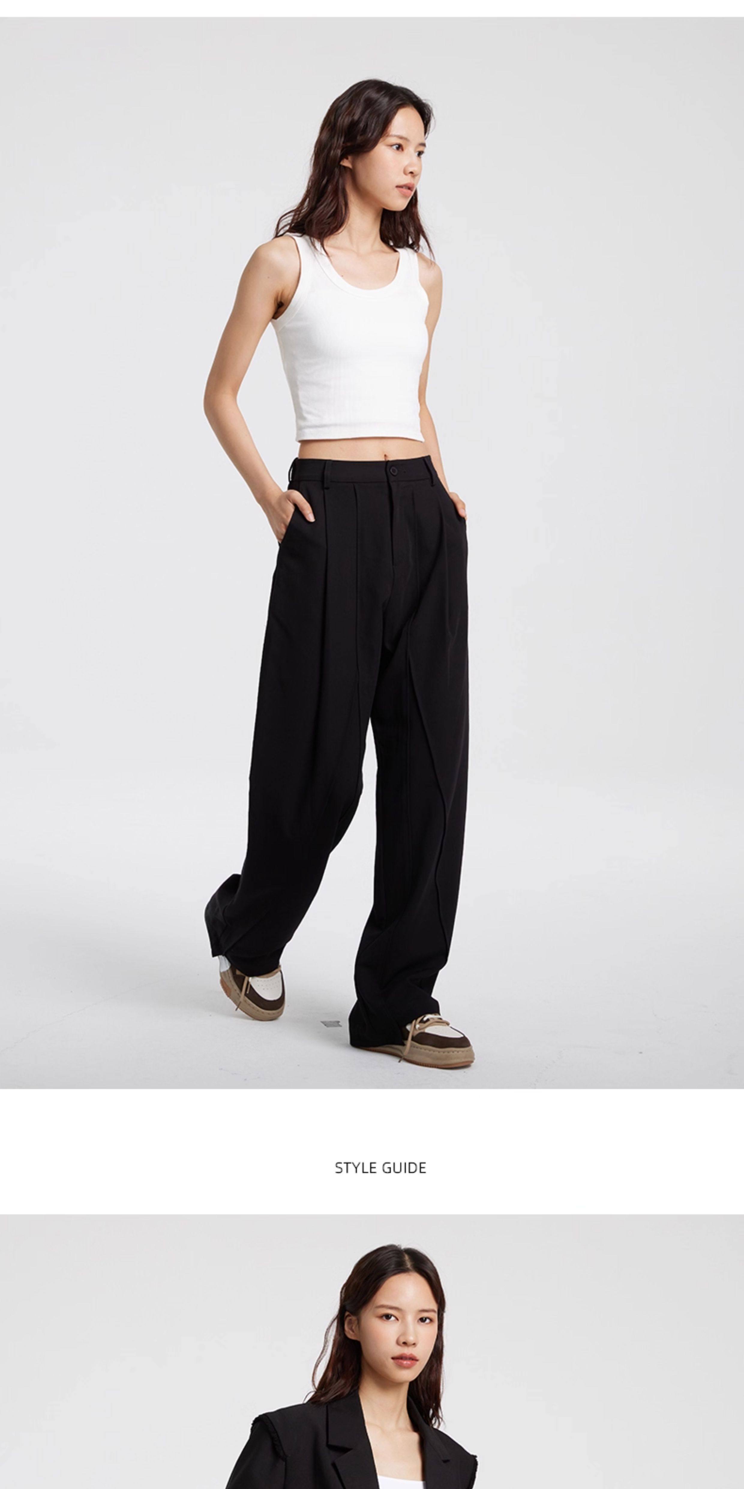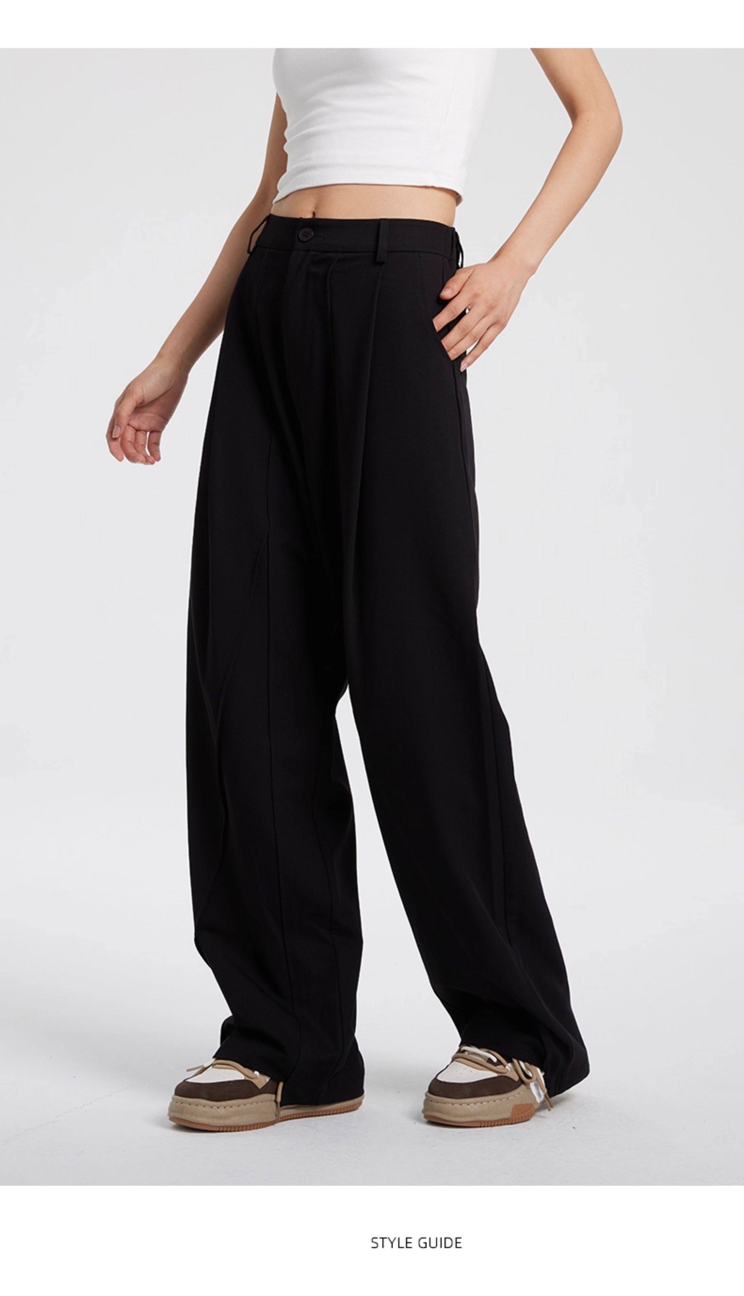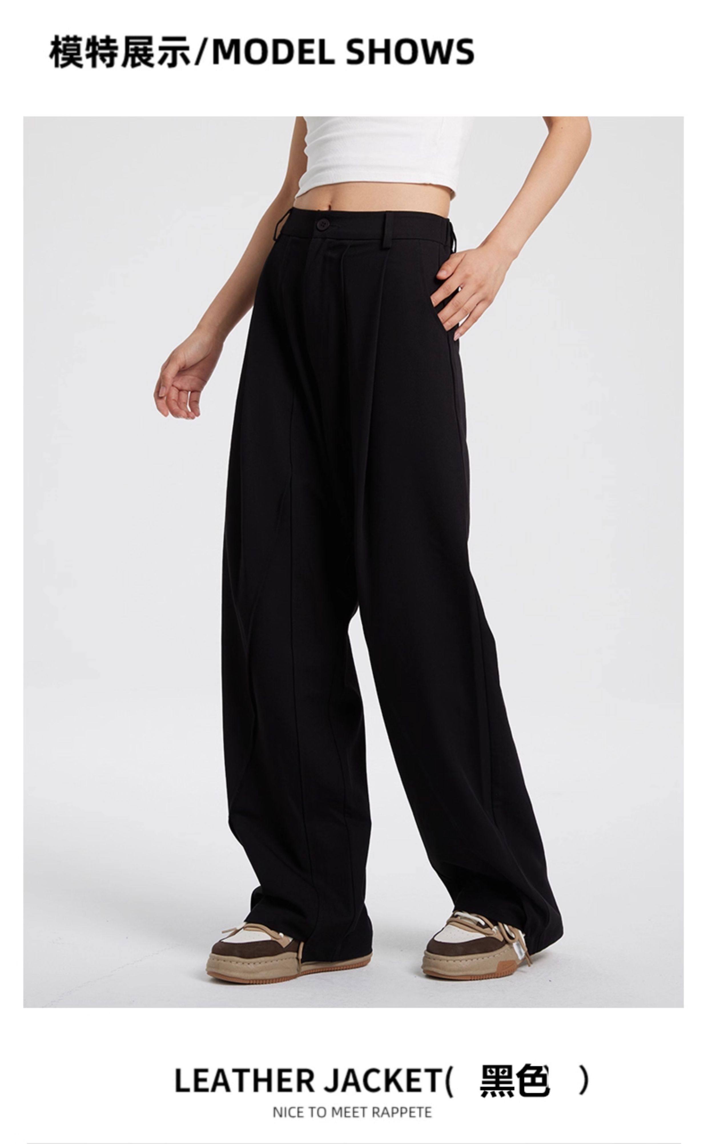 Rappeye New Casual Loose High-Waisted Straight-Leg Slimming Versatile Drapey All-Season Floor-Length Dress Pants