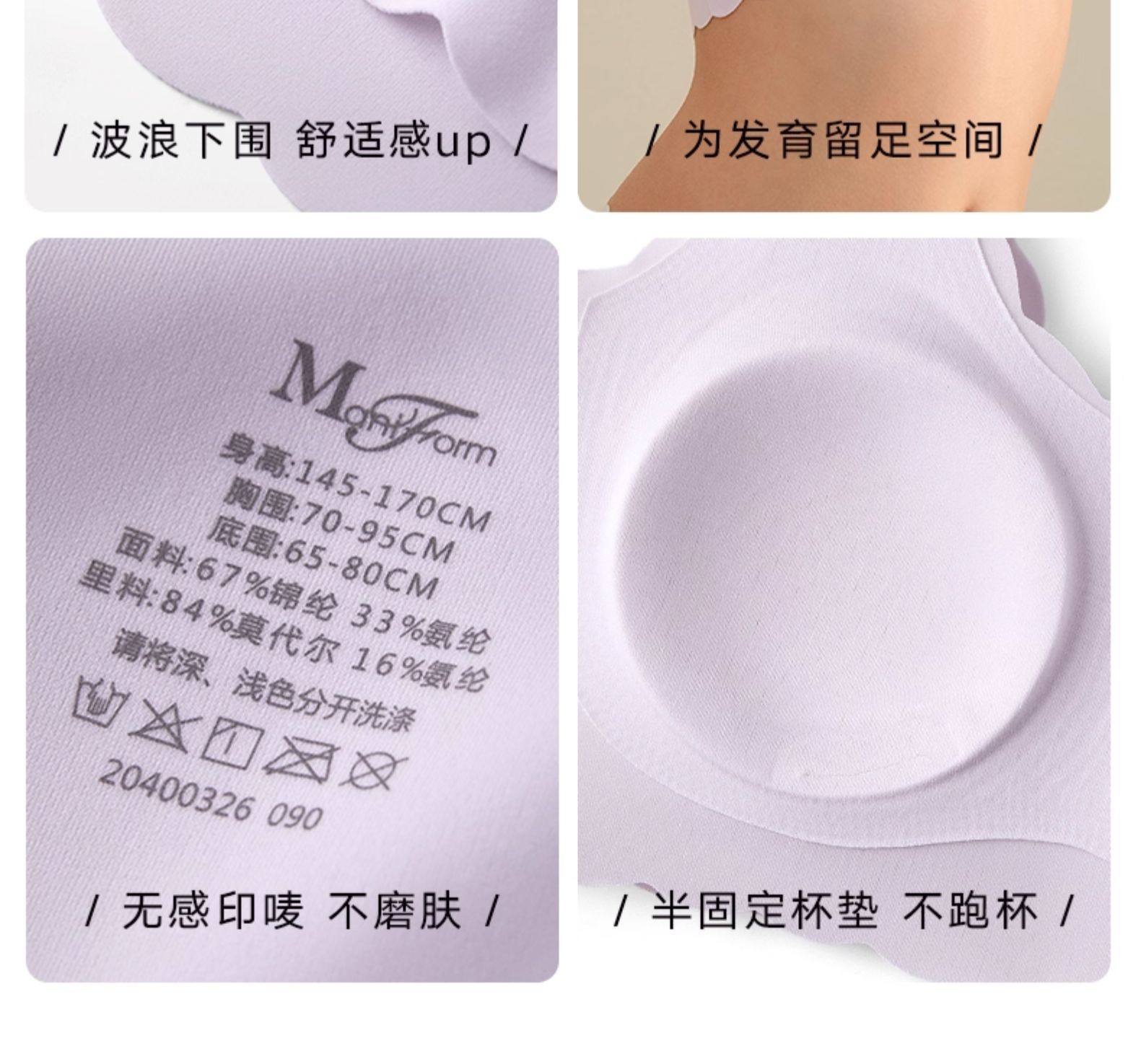 Three-Stage Maniform Student Vest-Style No-Size Underwear for Girls in Adolescence, Seamless, Comfortable, Soft Support Bra