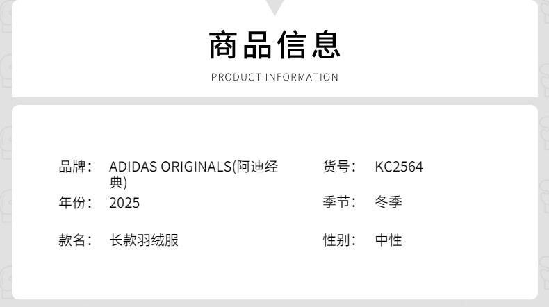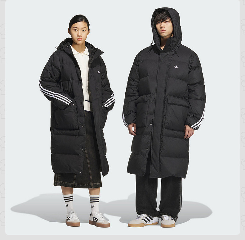 Adidas Adidas Men's and Women's Clover Long Over-The-Knee Hooded down Jacket Duck down Winter Coat Kc64