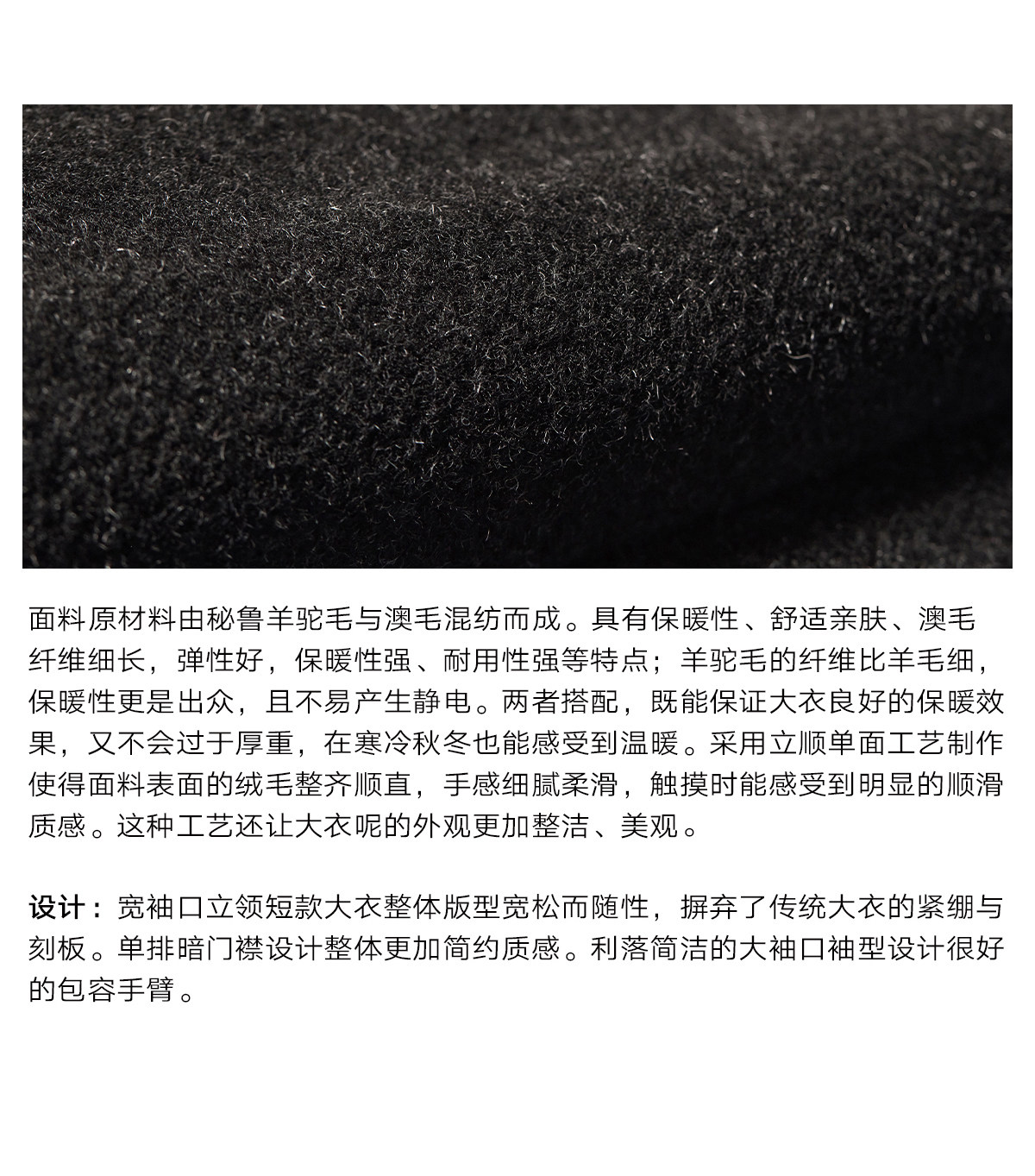 Randompiece25 Winter New Alpaca Wool Blend Stand Collar Oversized Wide Cuff Short Wool Coat