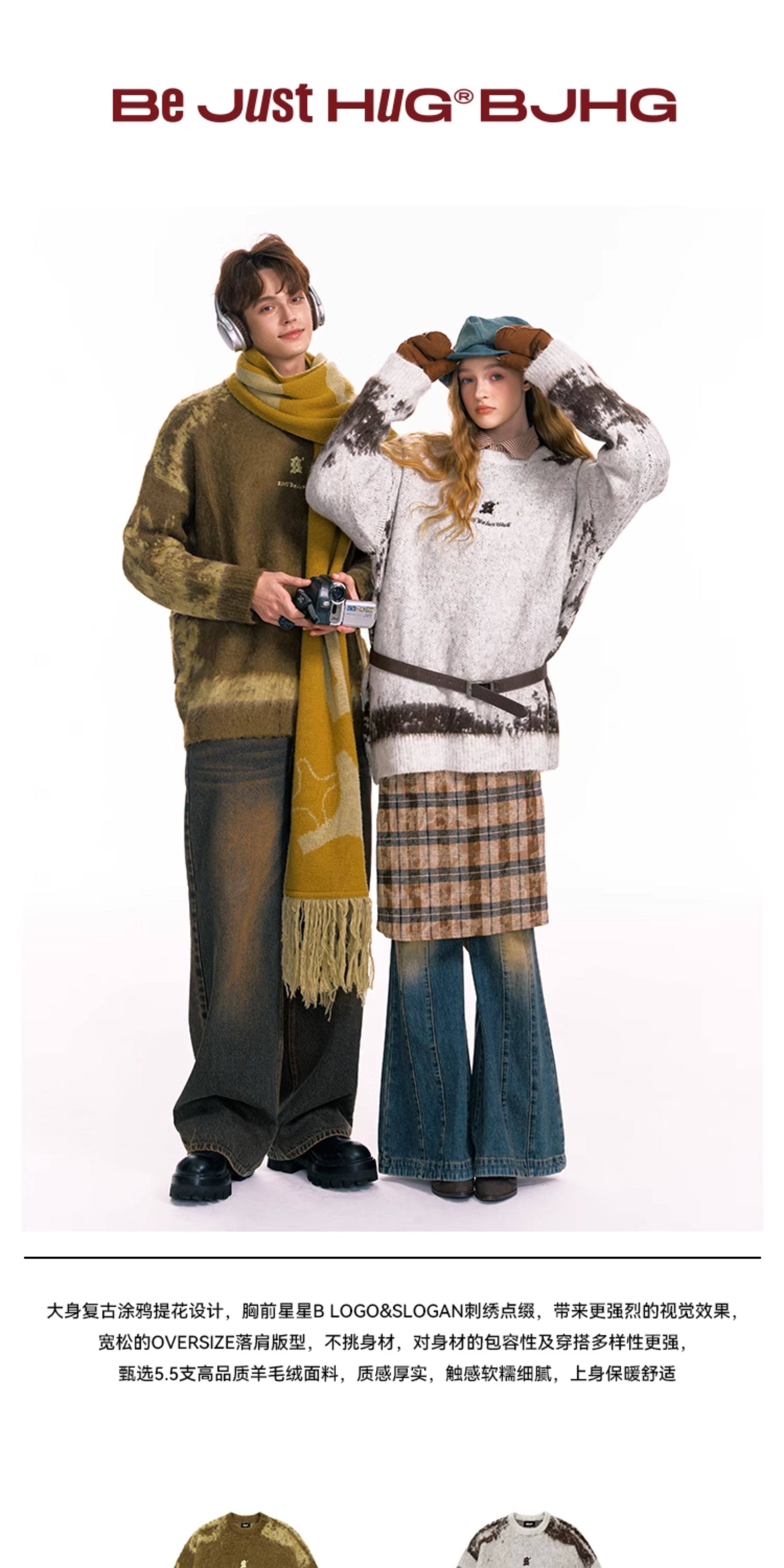 Bjhg Reckless and Carefree Style Sweater for Men, Winter Inner Layer, Thickened, High-End Feel, Couple Knitwear, Winter Clothing for Women