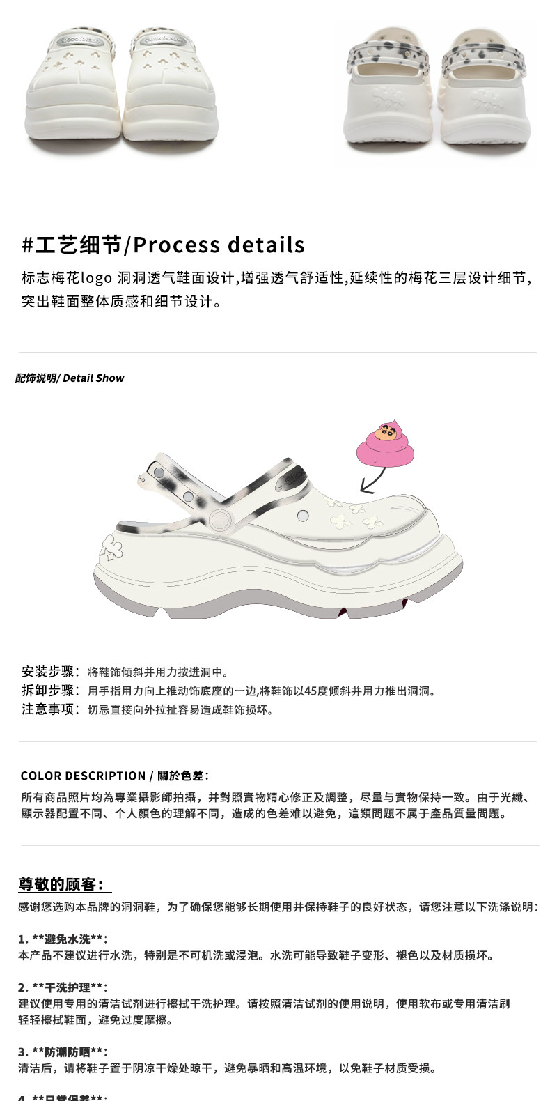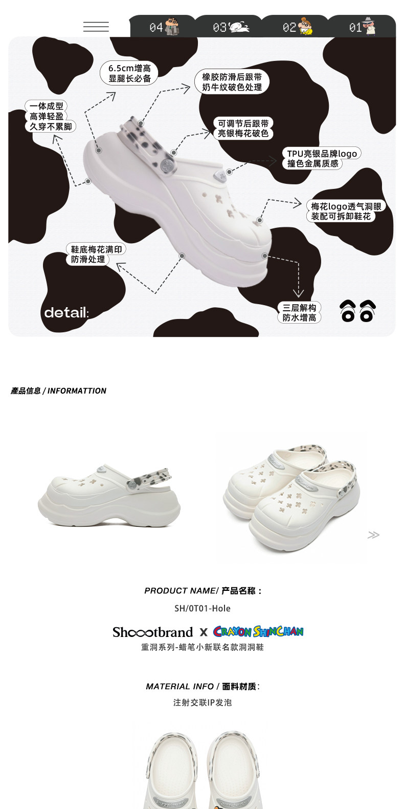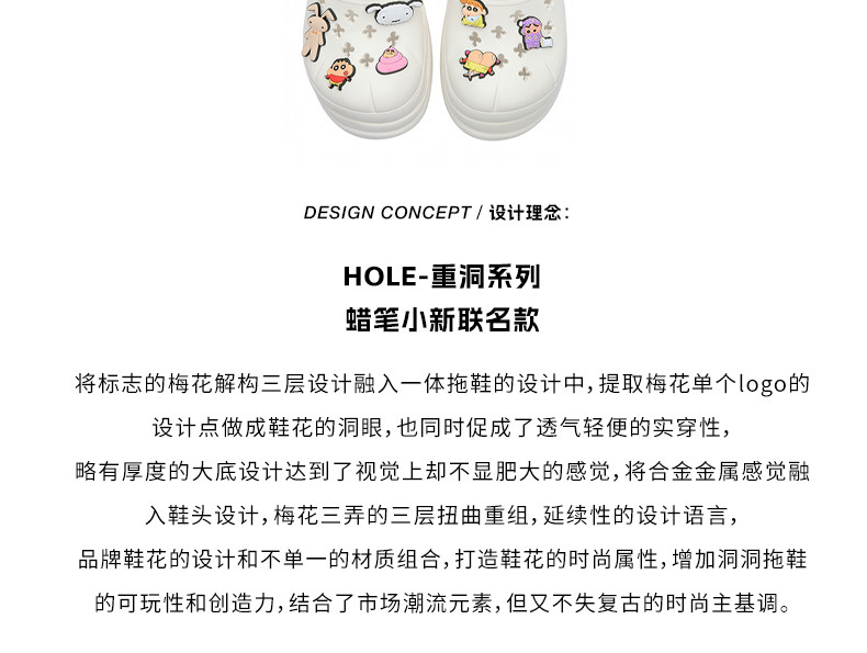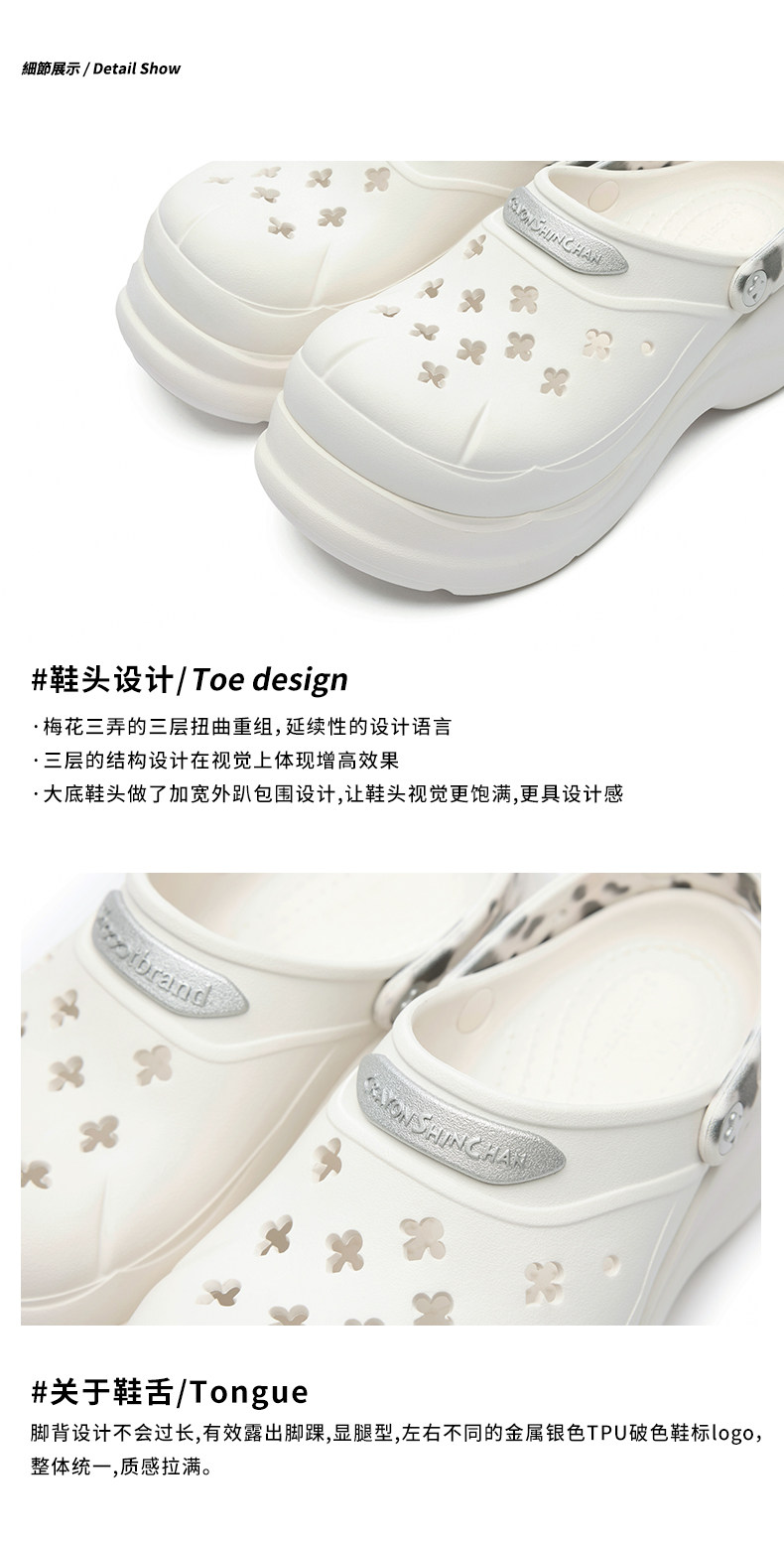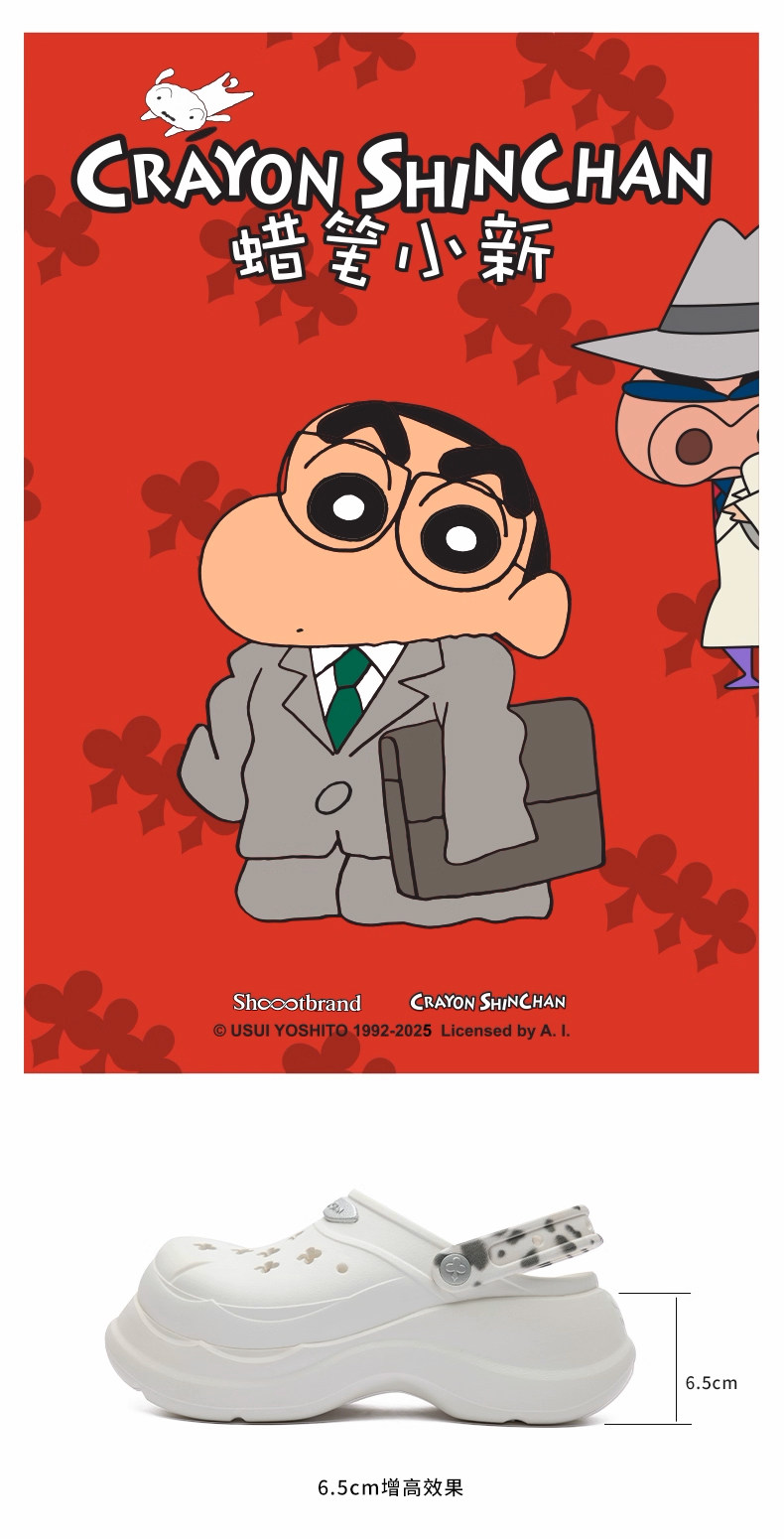 Crayon Shin-Chan X Shoot Brand Heavy Hole Series Plum Blossom Hole Thick-Soled Height-Increasing Closed-Toe Shoes for Outdoor Wear