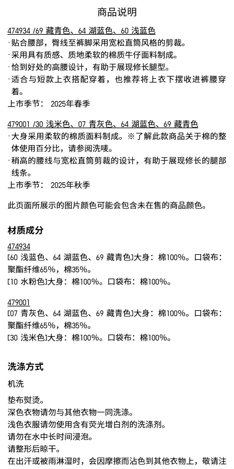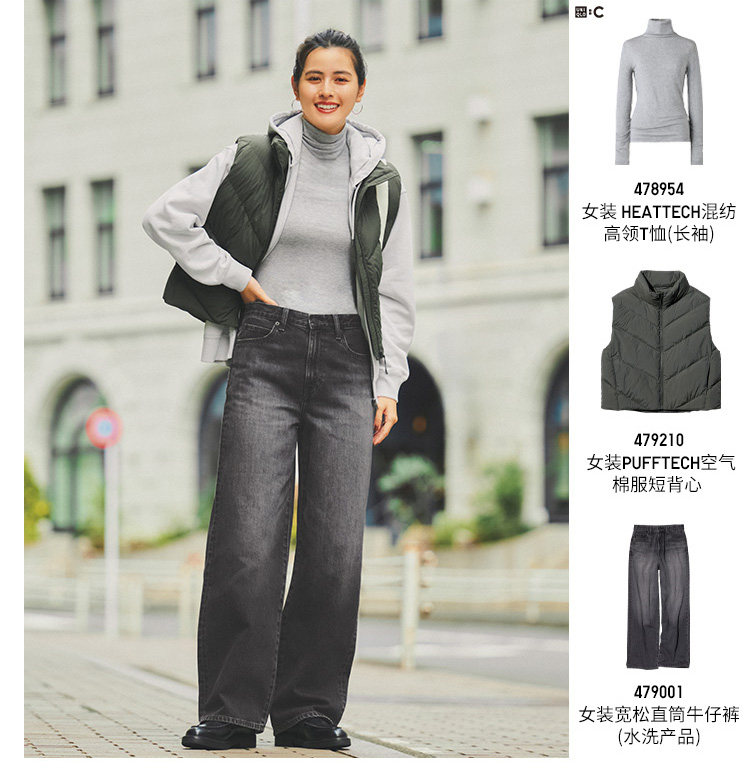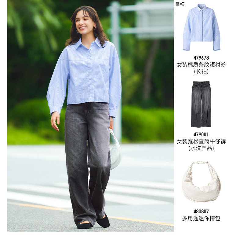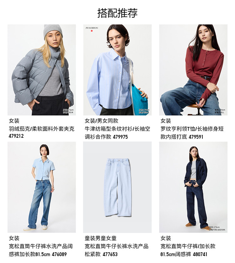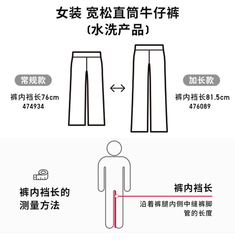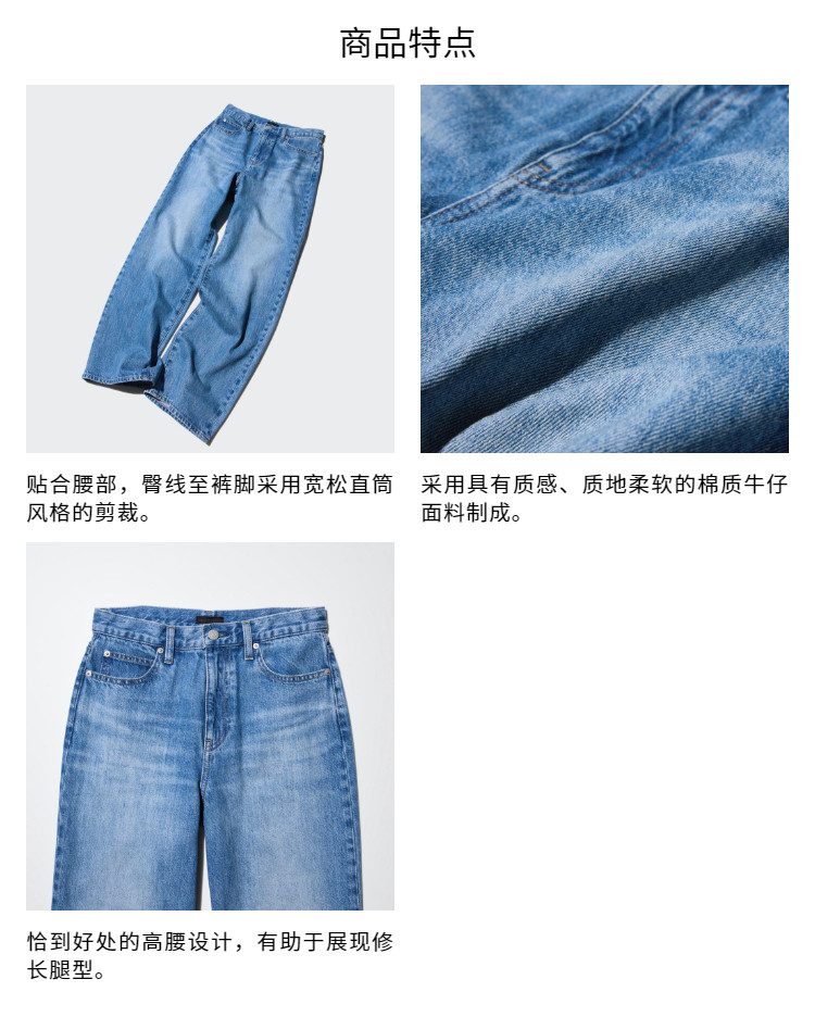Uniqlo Women's Loose Straight-Leg Jeans/Washed Product/Wide-Leg Pants 474934 479001