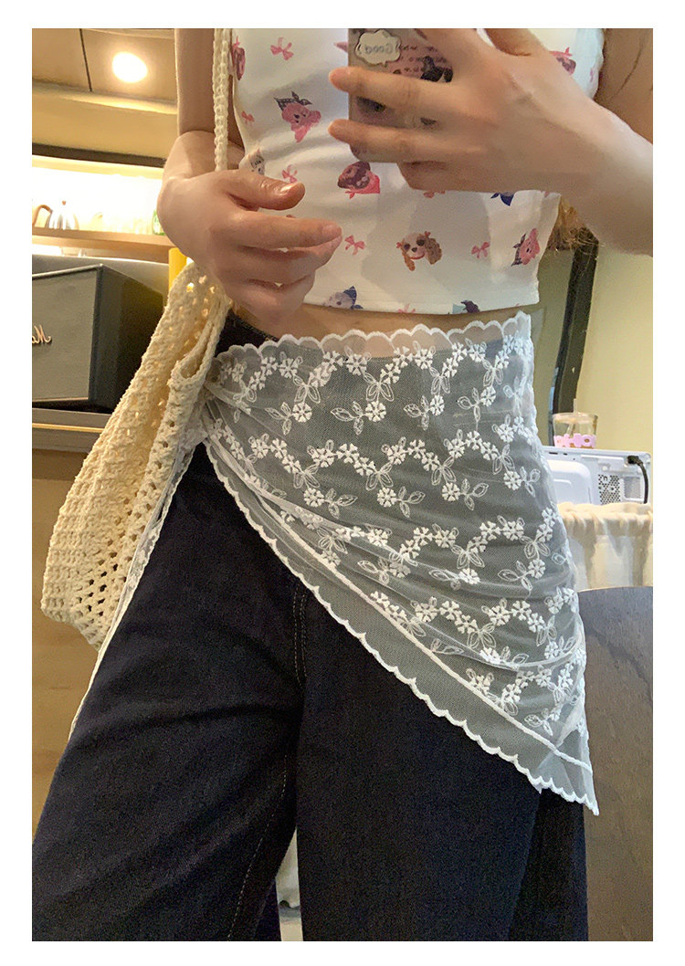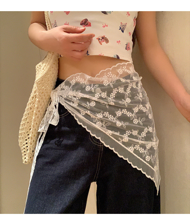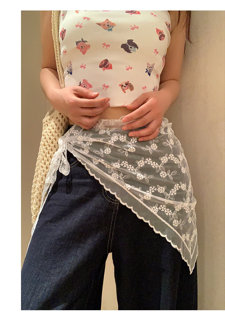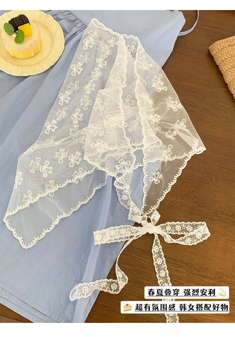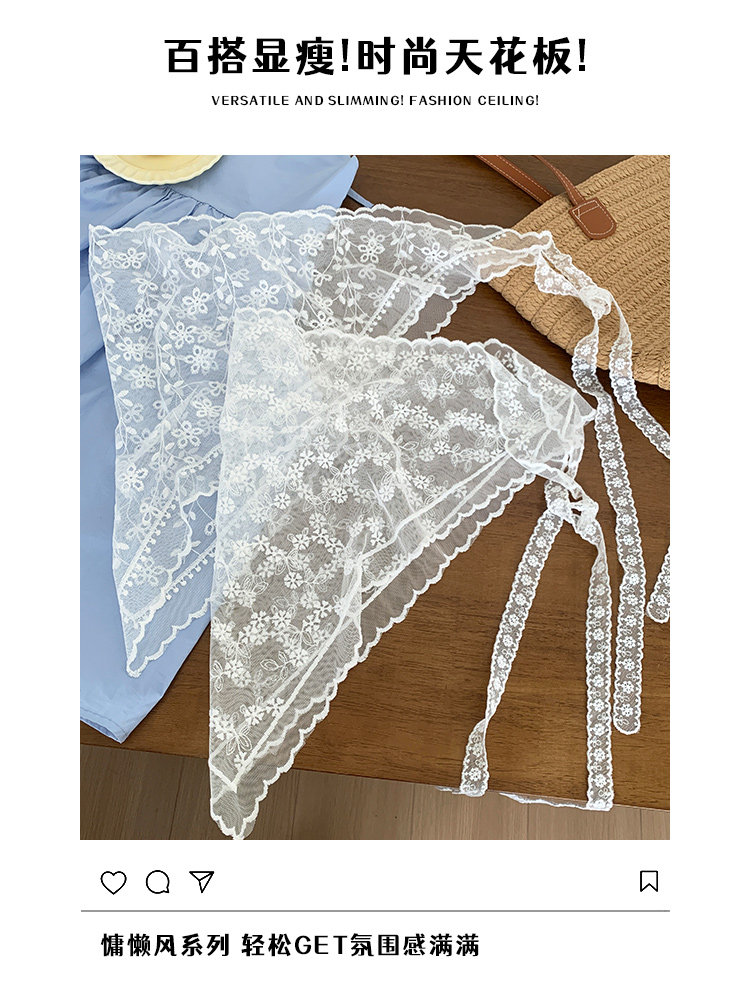 Korean Style Layered White Lace Triangle Scarf, 2025 New Style, Atmospheric Tie-Up Headscarf, Slimming Half Skirt