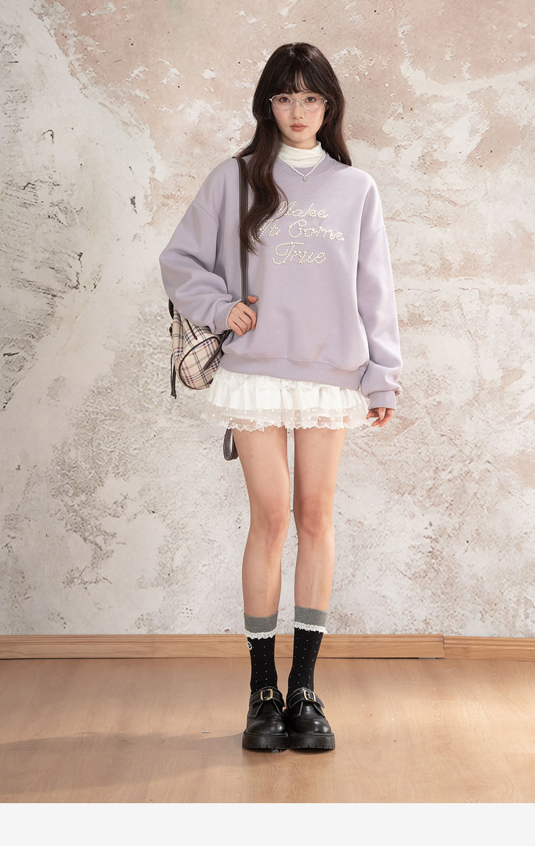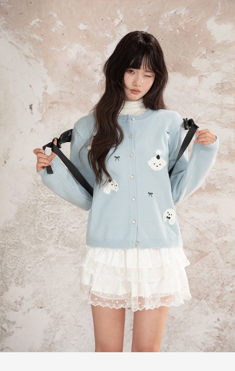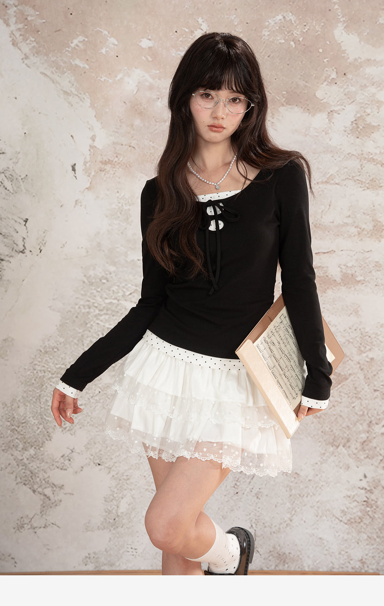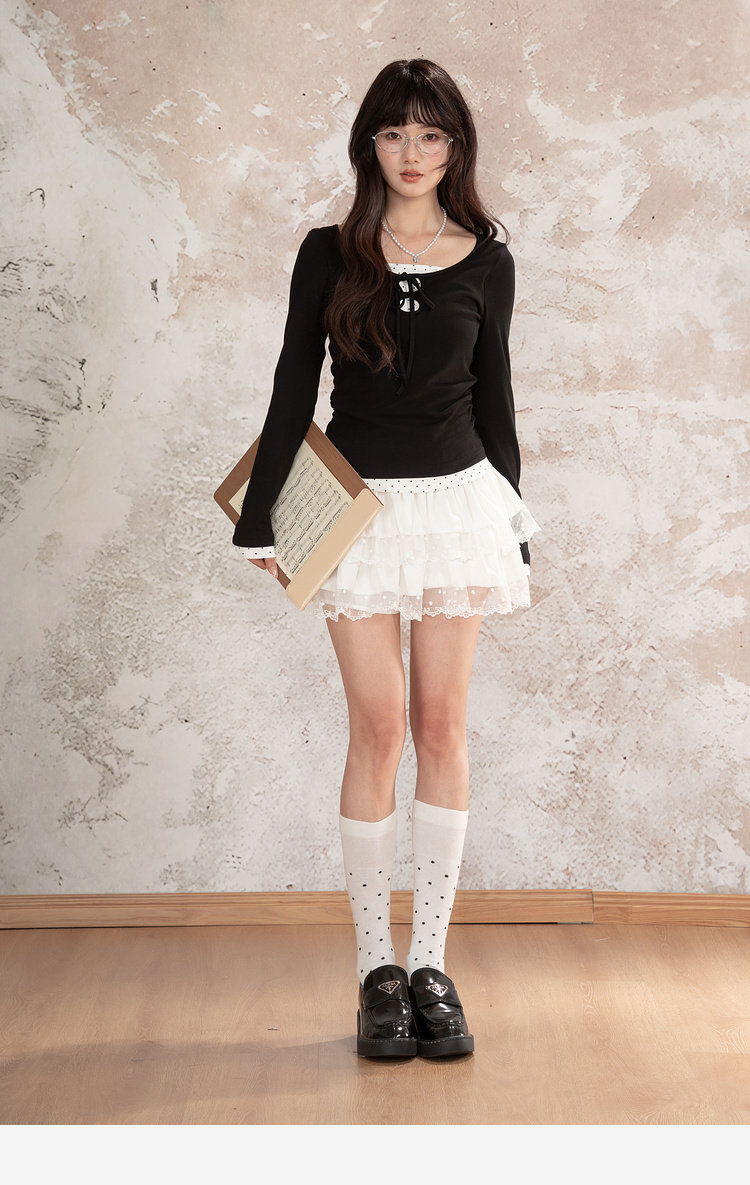 Loveheynew White Sweet Bow Lace-Trimmed Puffy Cake Skirt for Women, Spring and Autumn Slimming A-Line Skirt