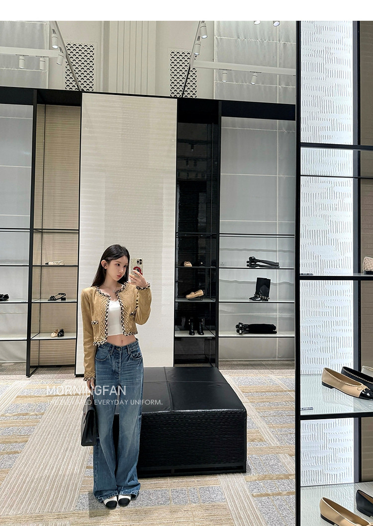 原本的裤长会有点太长了 我们调整到了更日常好穿的裤长