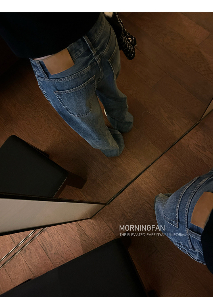 裤身略微泛白 并且在裤身和脚口会呈现出不一样的洗水质感