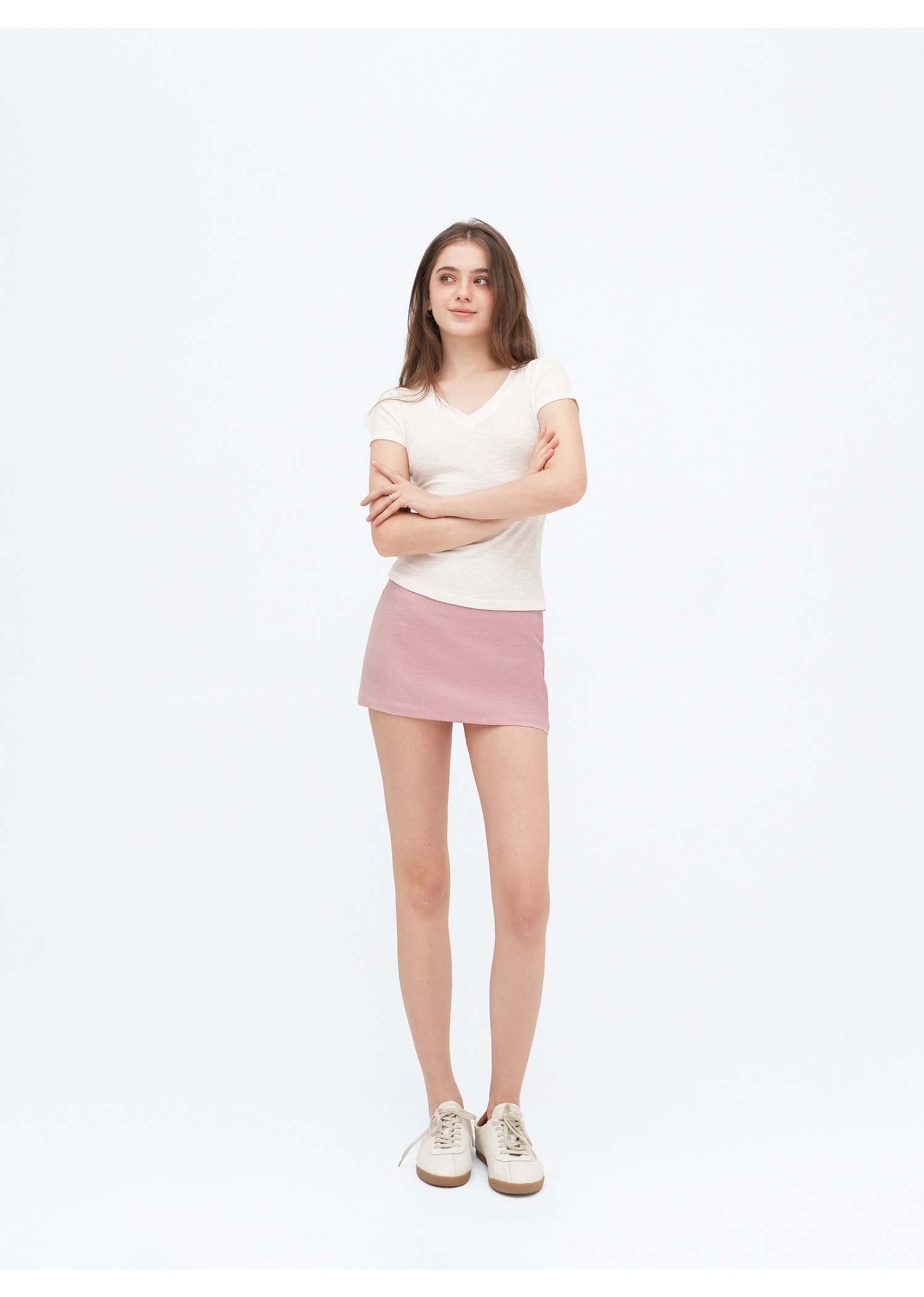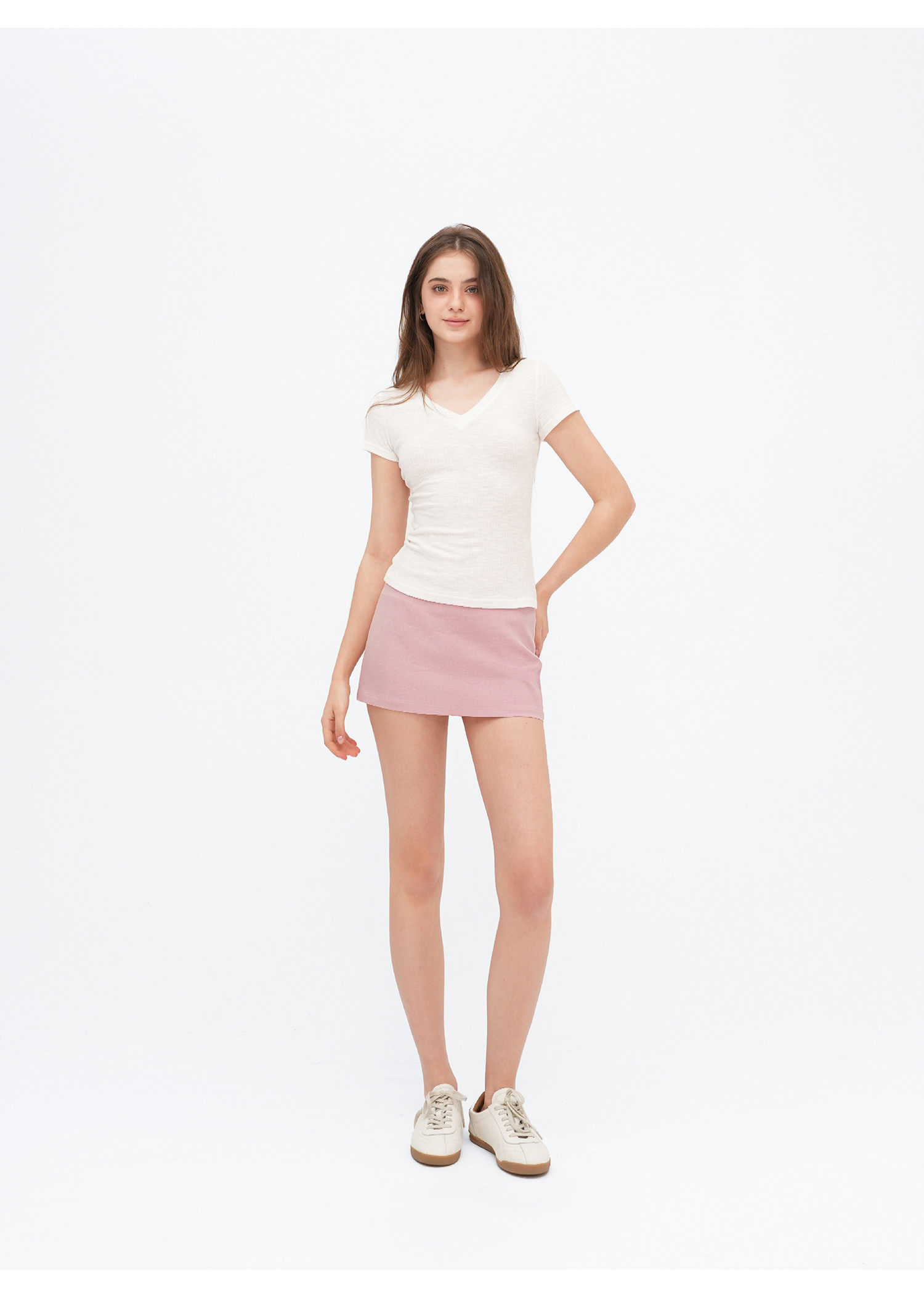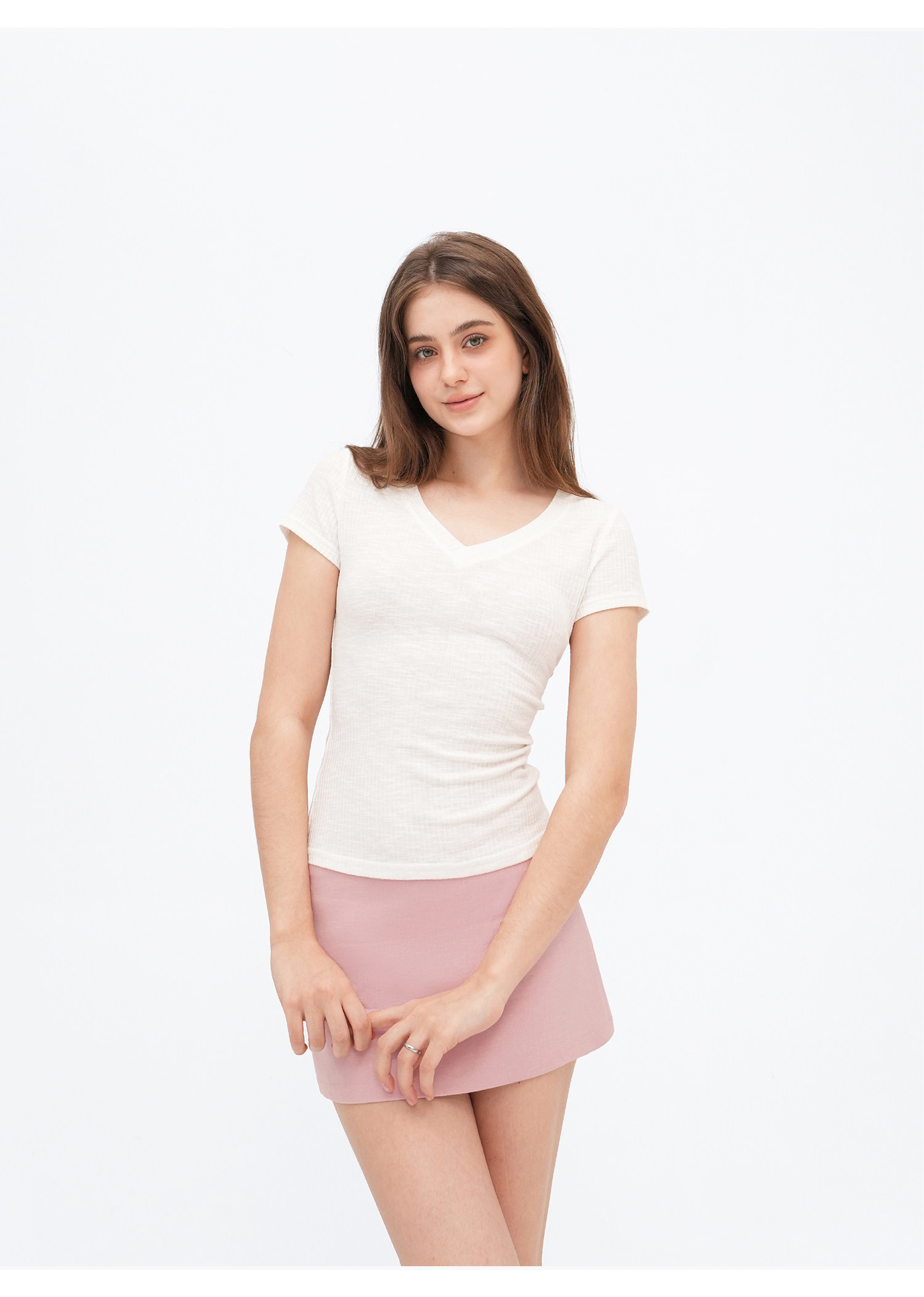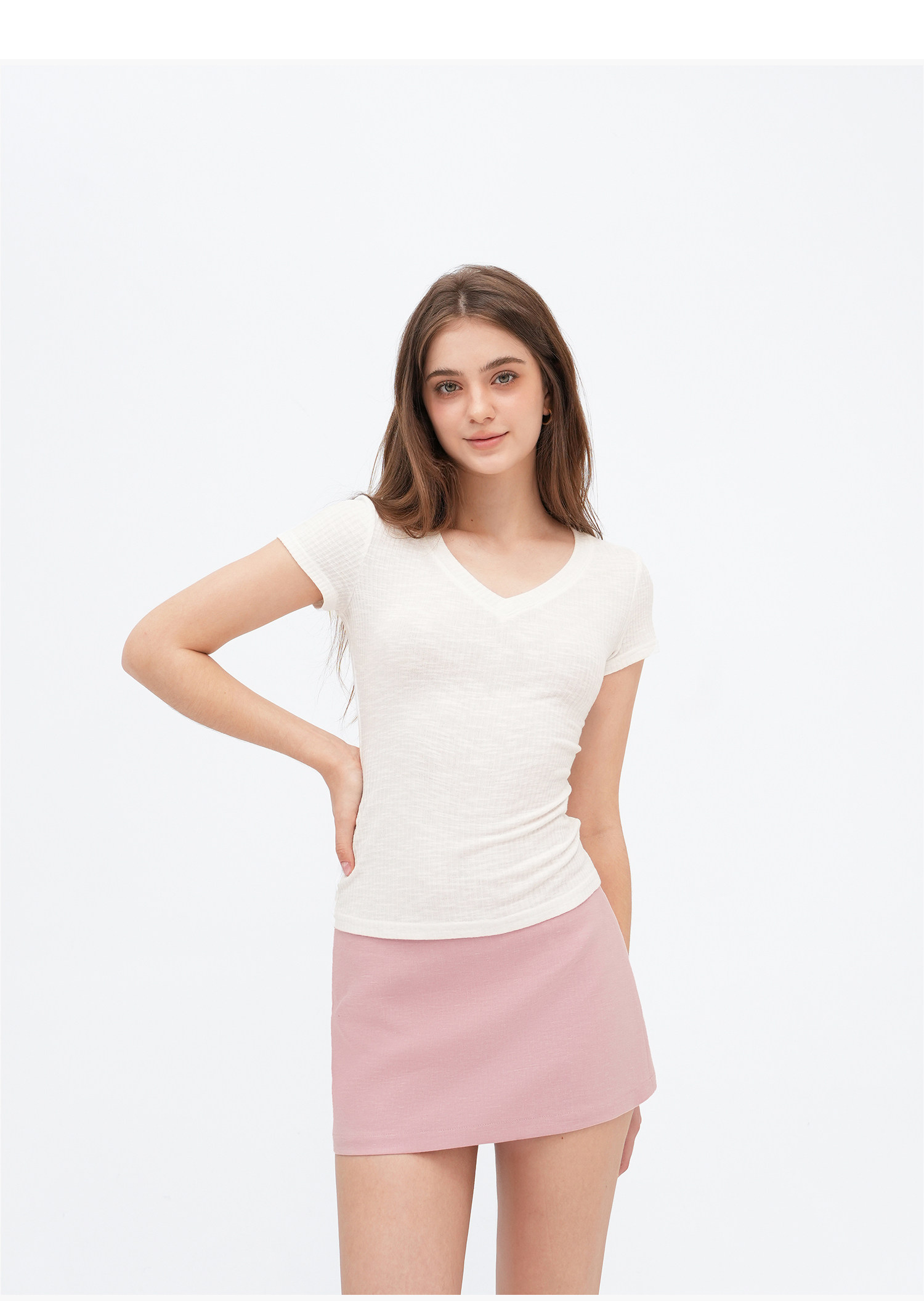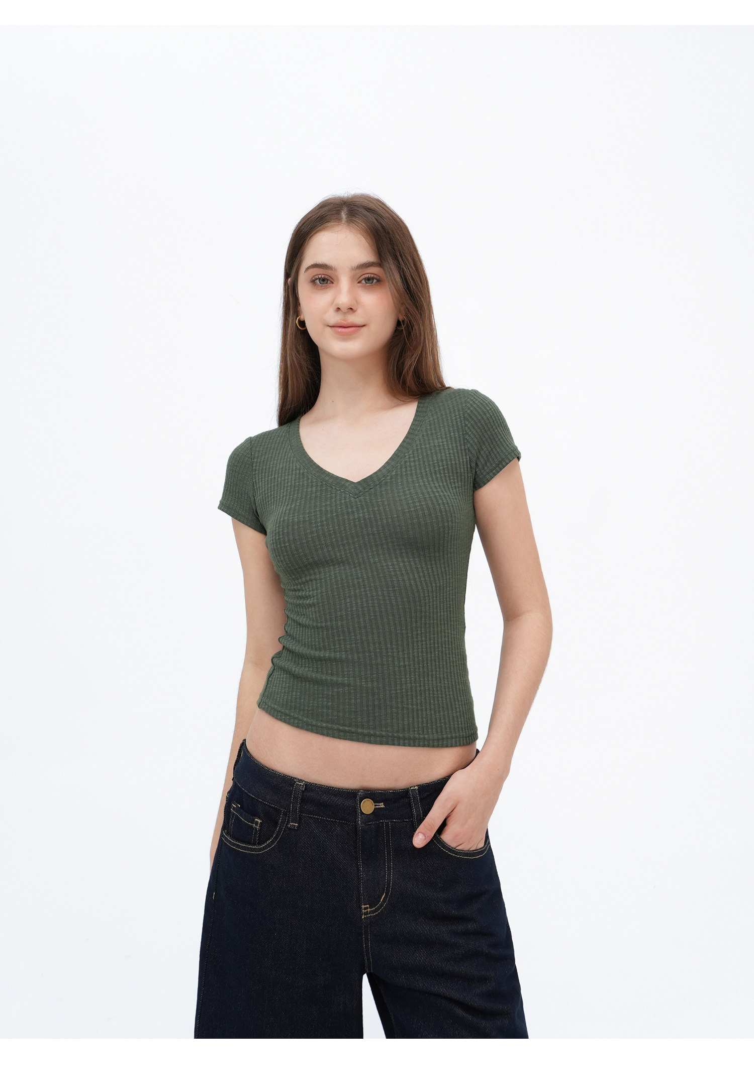 Jim Kennet Semi-Sheer Bamboo Ribbed V-Neck Slim-Fit Short-Sleeve Top