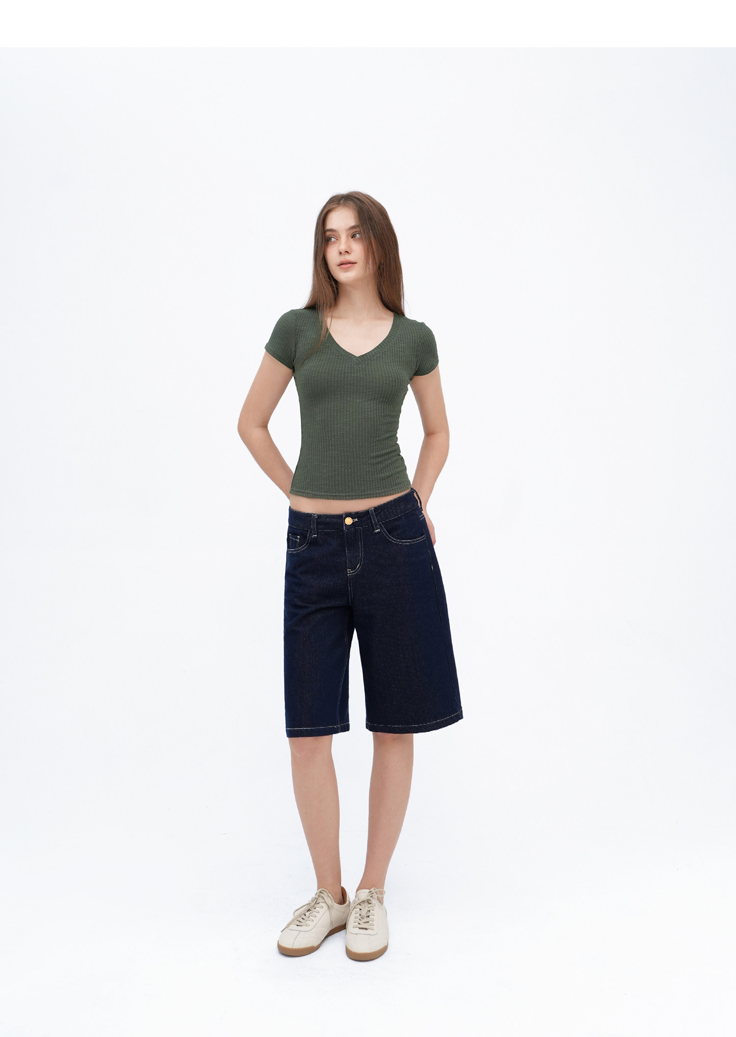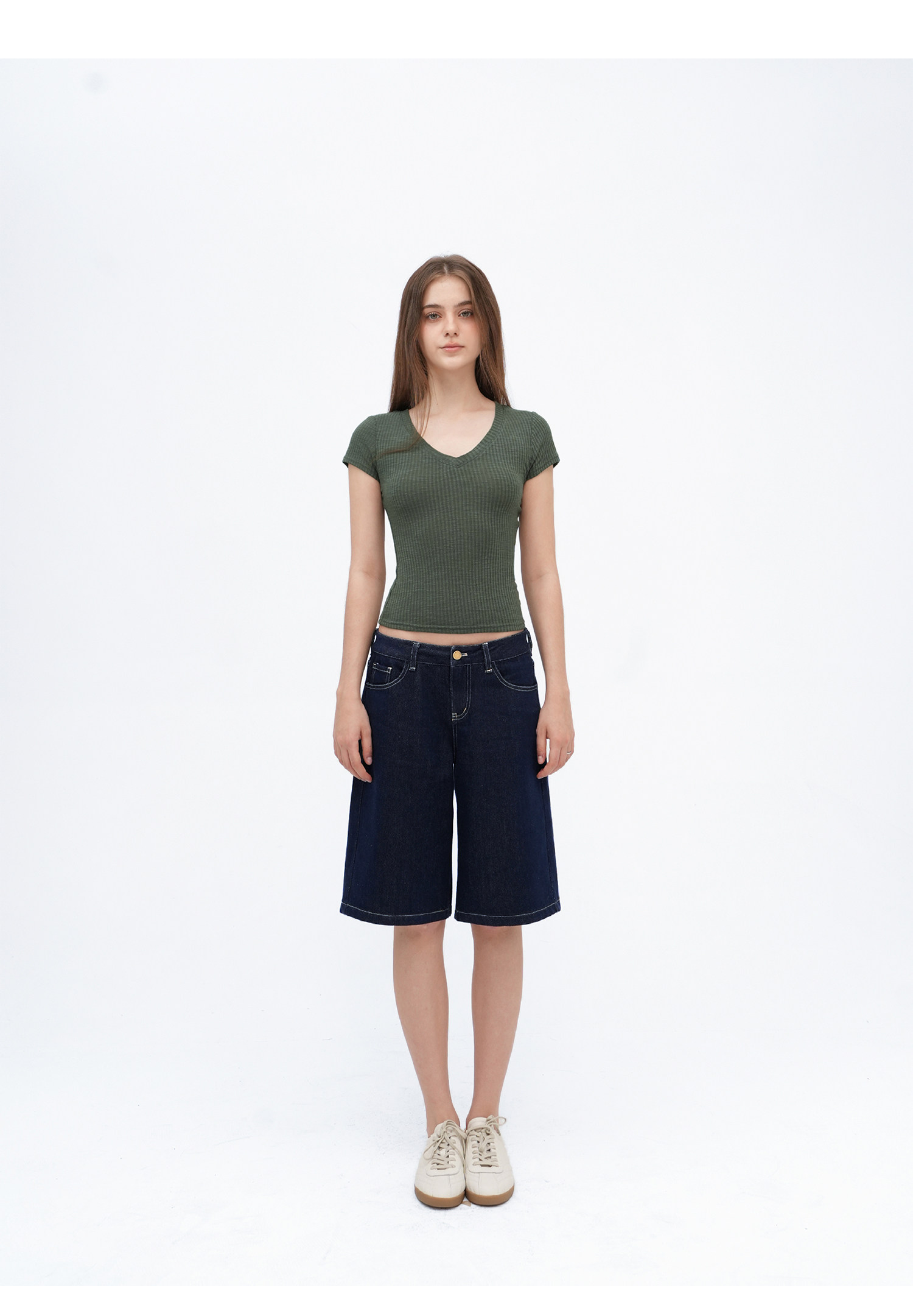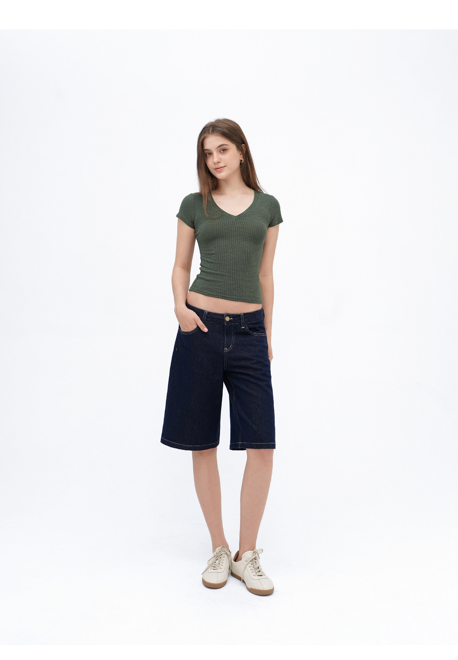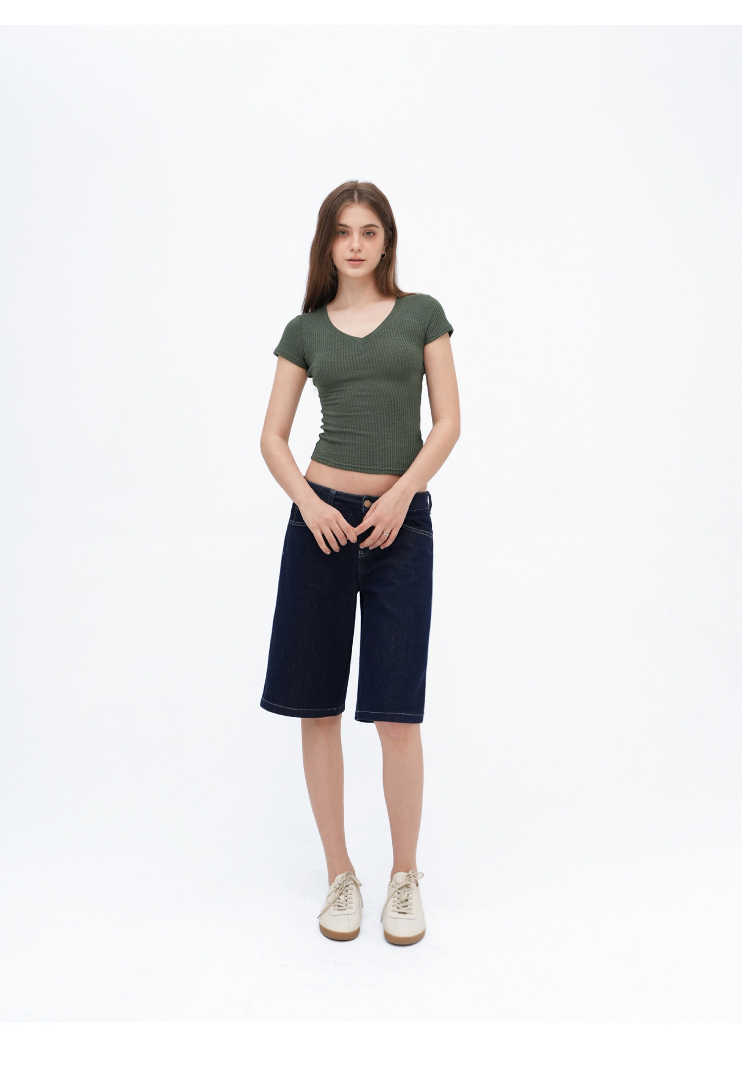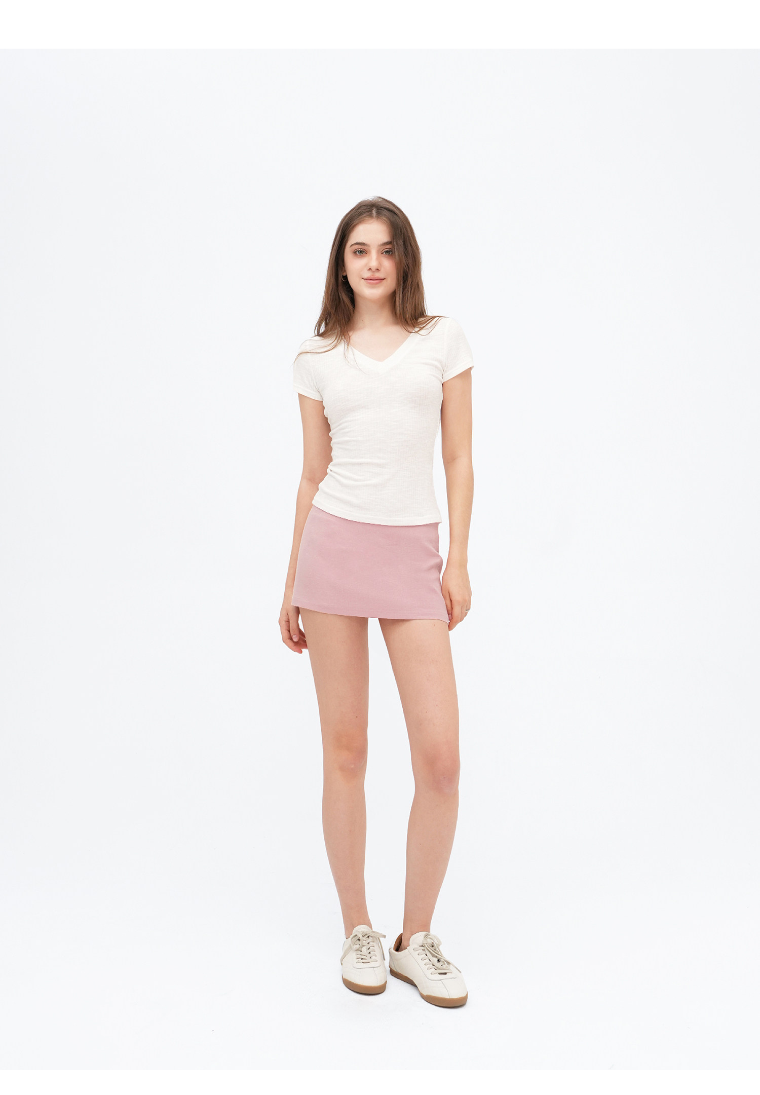 Jim Kennet Semi-Sheer Bamboo Ribbed V-Neck Slim-Fit Short-Sleeve Top