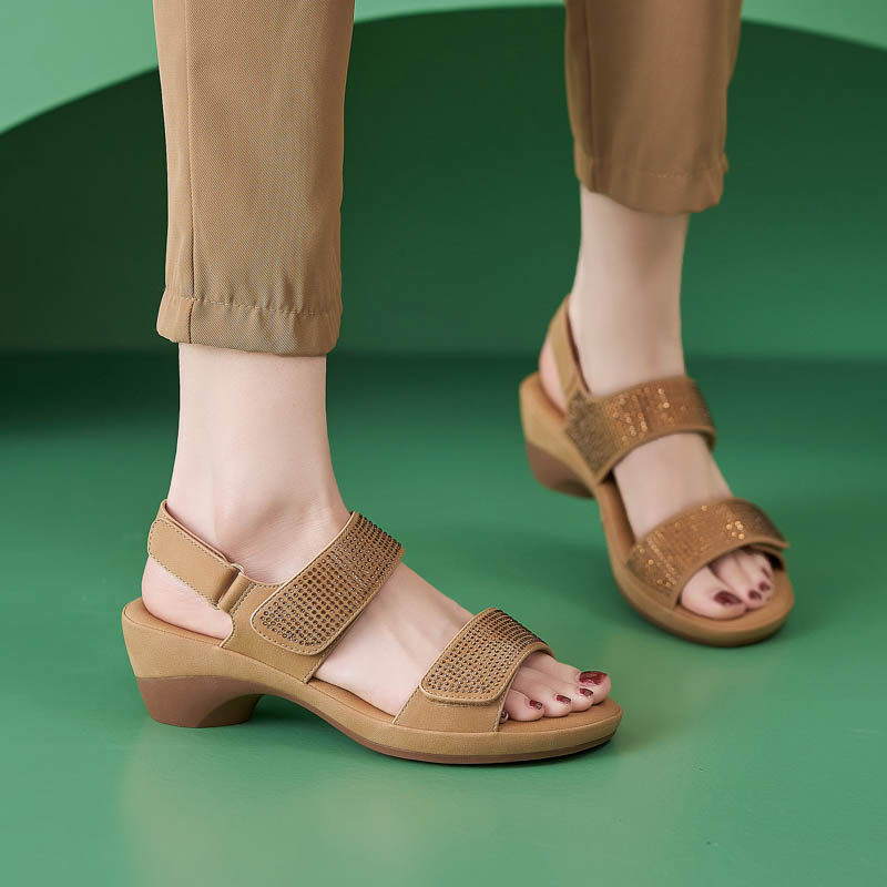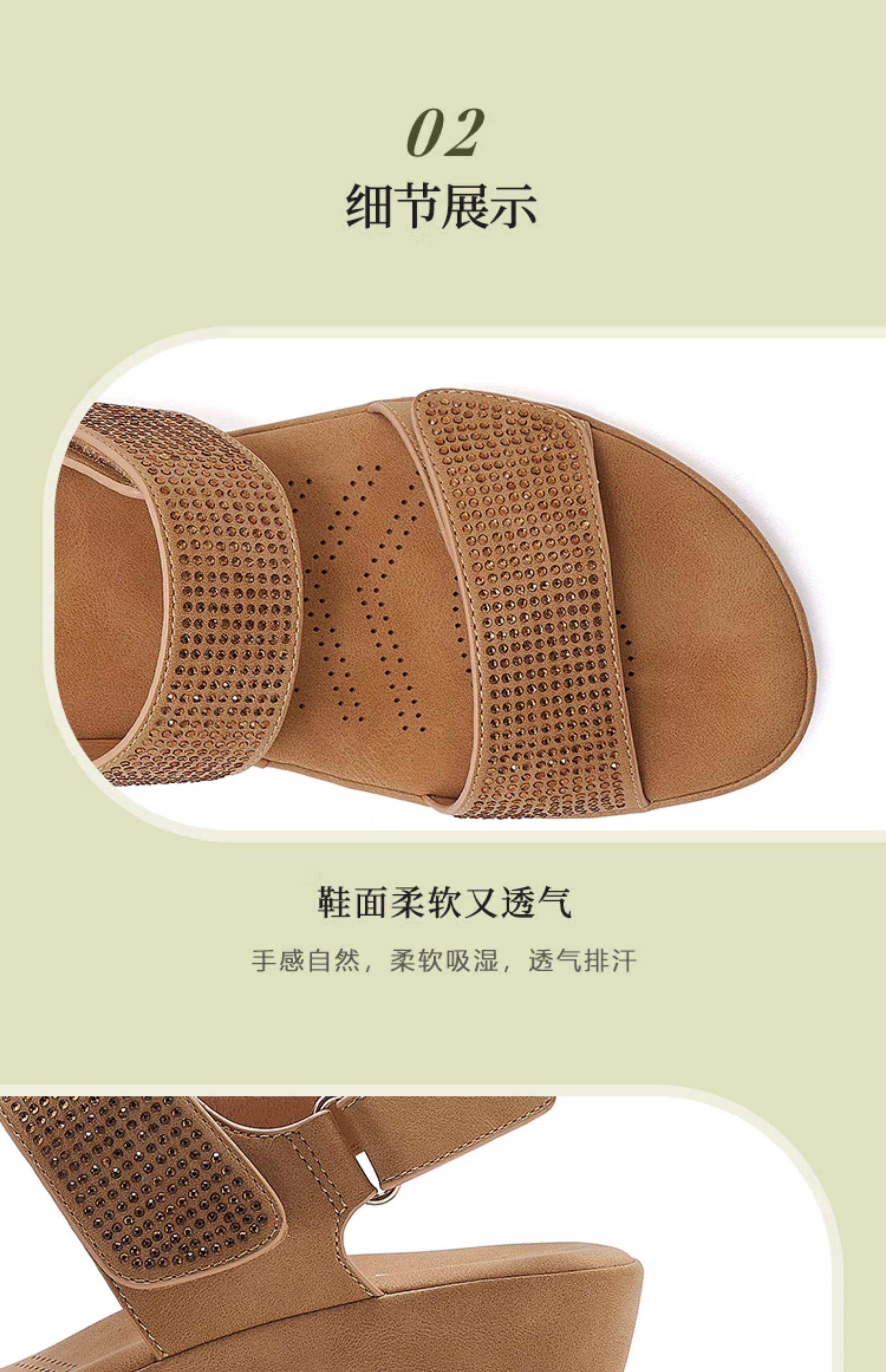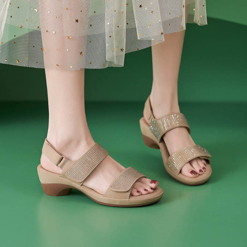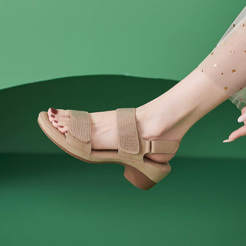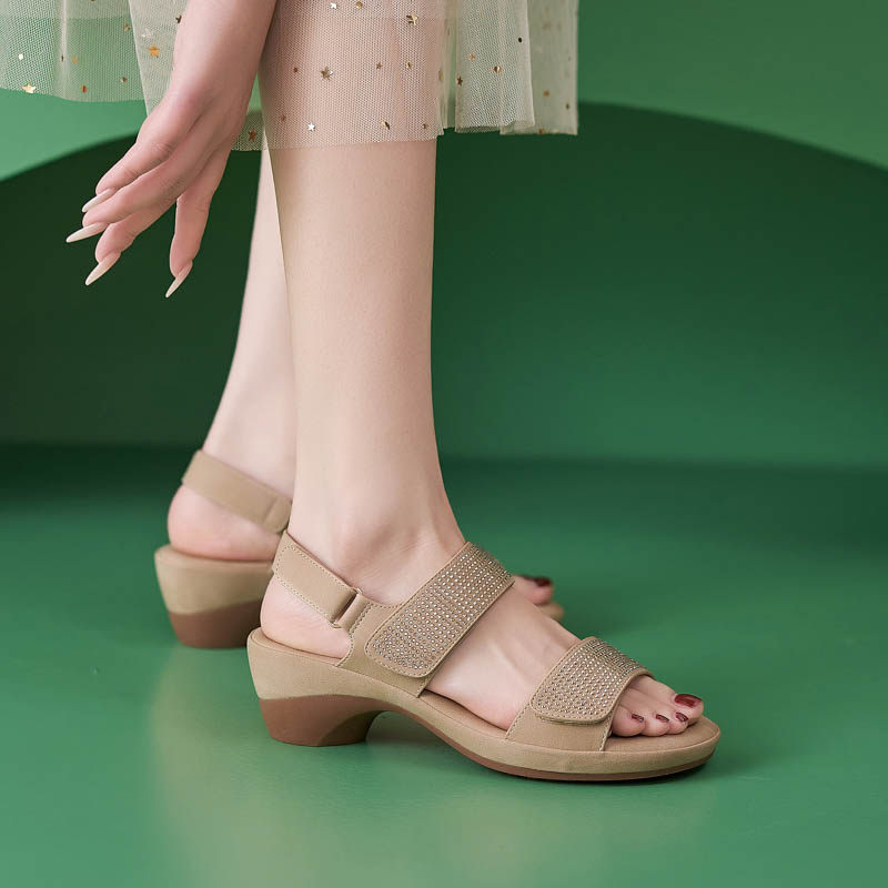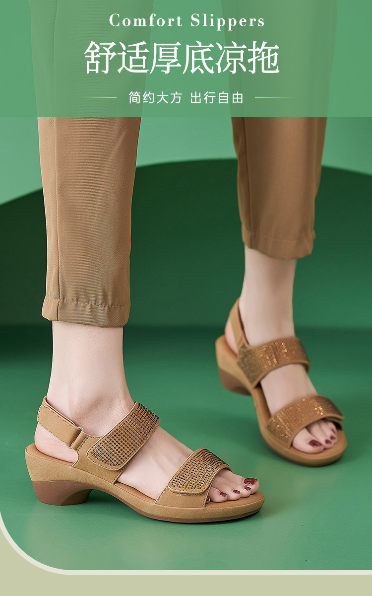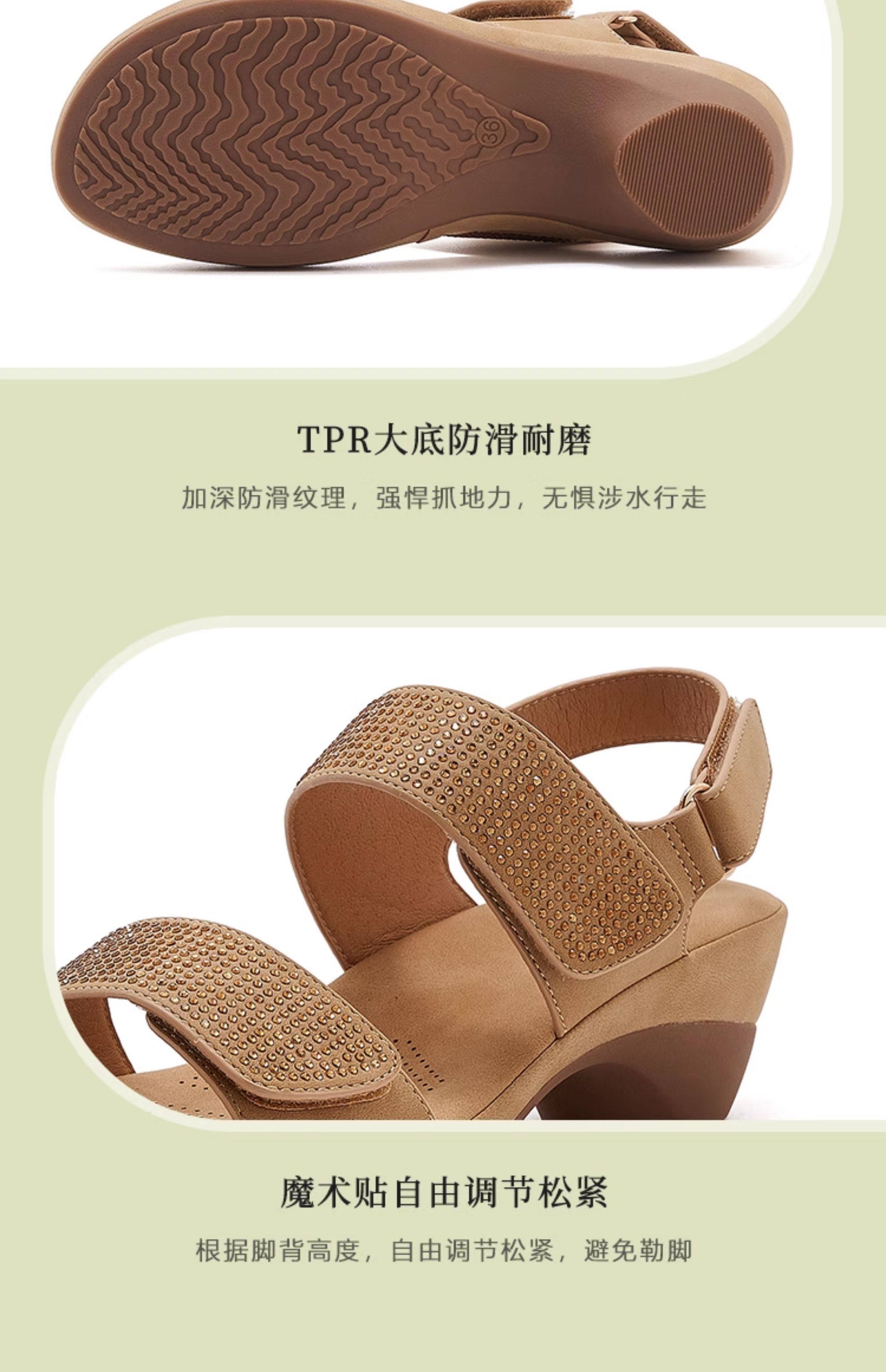 Doesn'T Tire Your Feet ● Velcro Adjustable Sandals for Women, Summer Outerwear, Rhinestone Tendon Soft Sole, Non-Slip, Comfortable Mother's Shoes