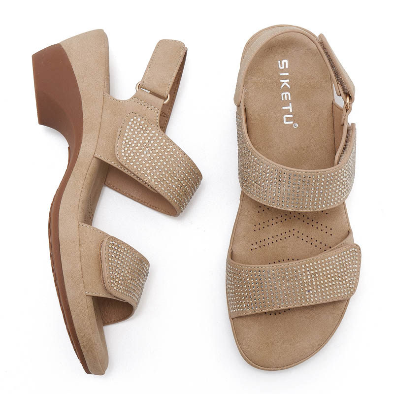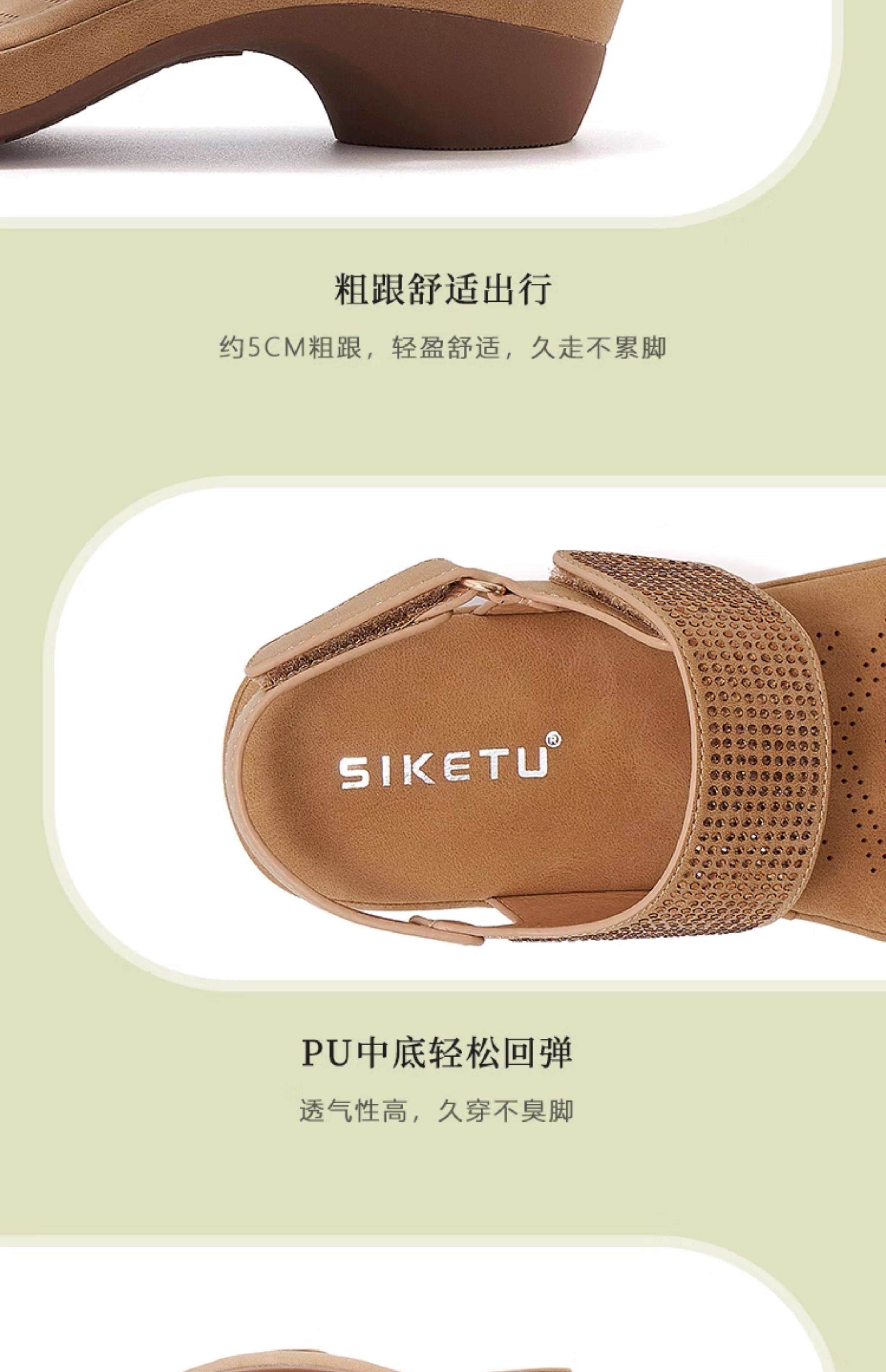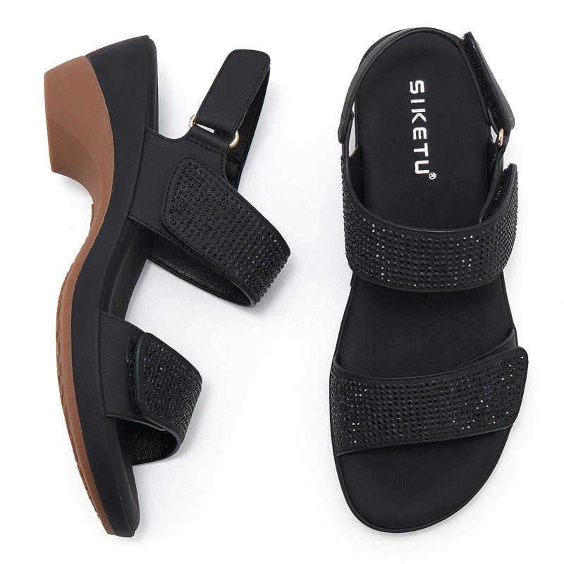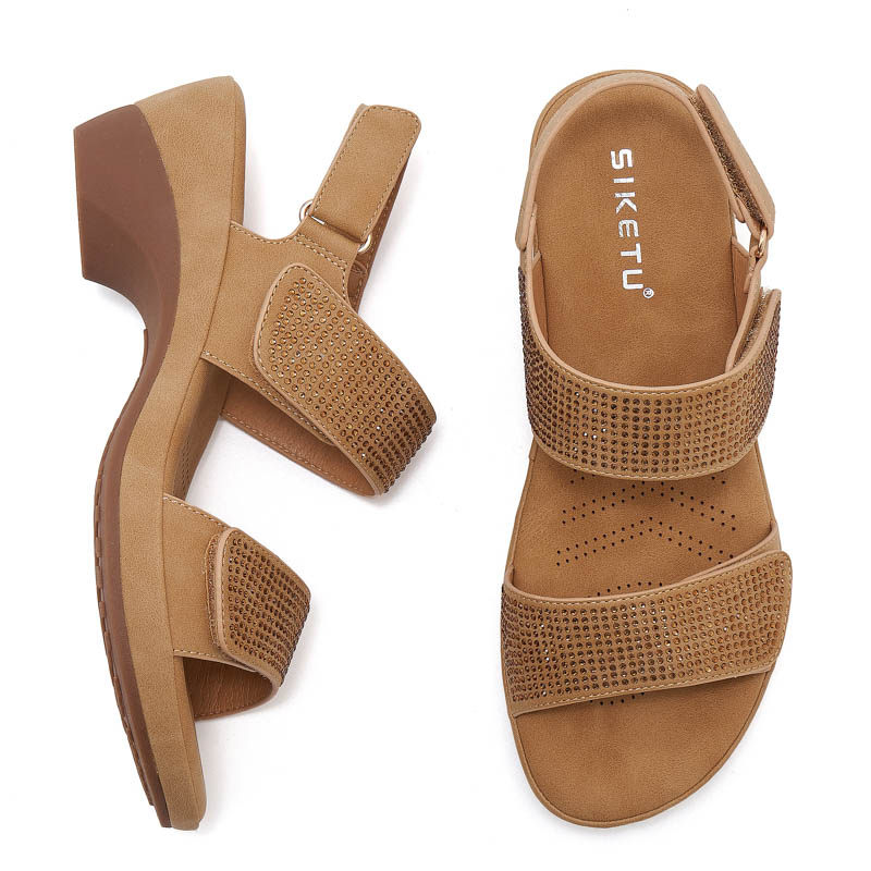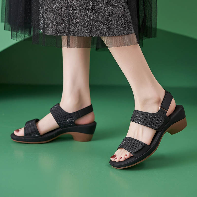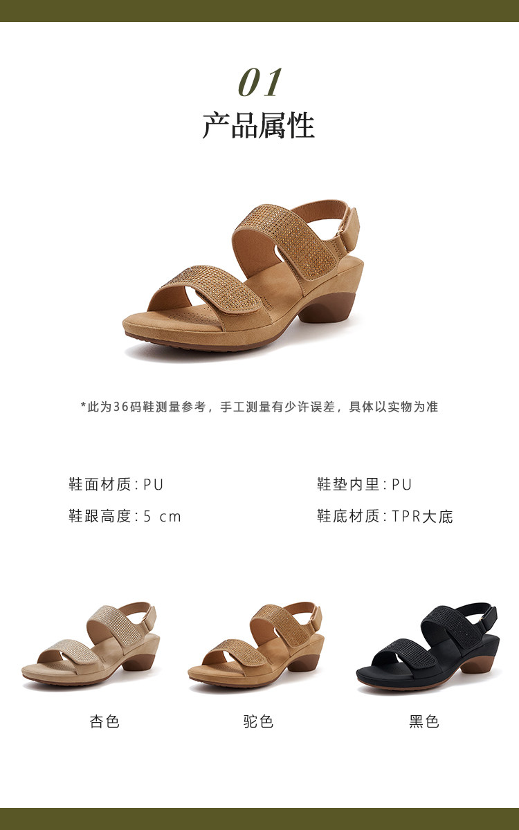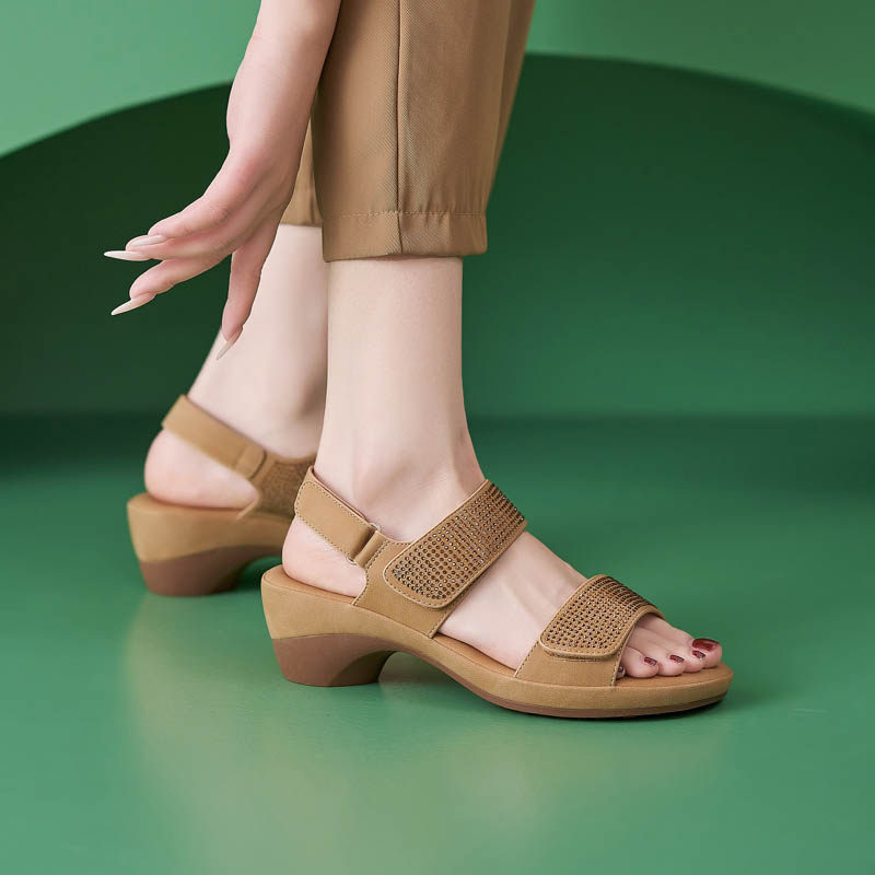 Doesn'T Tire Your Feet ● Velcro Adjustable Sandals for Women, Summer Outerwear, Rhinestone Tendon Soft Sole, Non-Slip, Comfortable Mother's Shoes